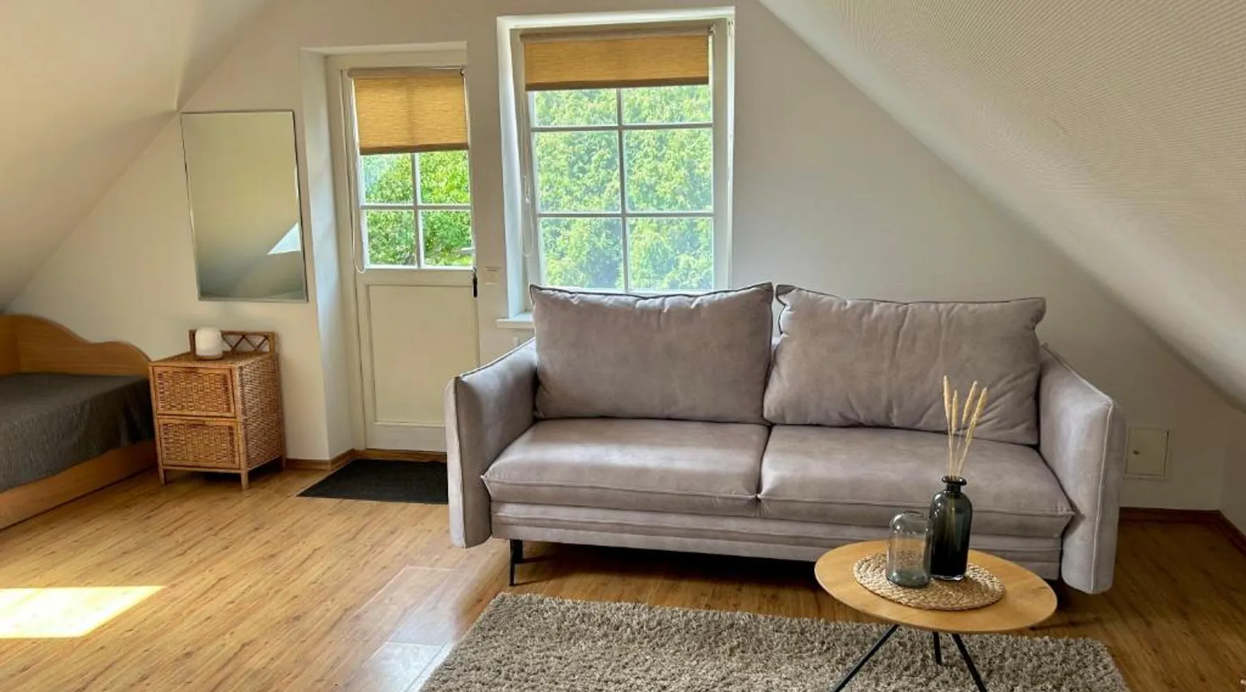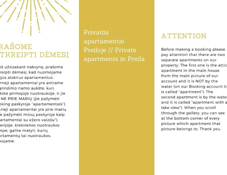 Comfortable Accommodations: Private apartments in Preila offer a terrace and free WiFi, ensuring a pleasant stay. Each apartment includes a kitchenette, private bathroom, and a dining area. Convenient Facilities: Guests can enjoy a barbecue, outdoor furniture, and a sofa bed. Additional amenities include a fireplace, walk-in shower, and a work desk. Prime Location: Located 1.7 mi from Preila Common Beach and 48 mi from Palanga International Airport, the property provides easy access to local attractions. The fireplace is the standout feature of this apartment. Boasting a private entrance, this apartment features 1 living room, 1 separate bedroom and 1 bathroom with a walk-in shower and a hairdryer. Guests will find a stovetop, a refrigerator and kitchenware in the kitchenette. The apartment also comes with a barbecue. This apartment has a tea and coffee maker, a seating area, a flat-screen TV with cable channels and a terrace. The unit has 2 beds.