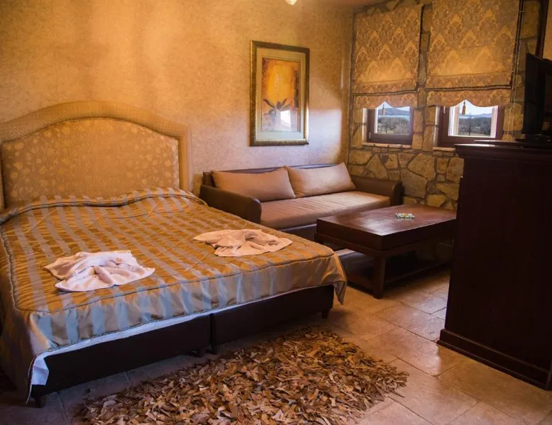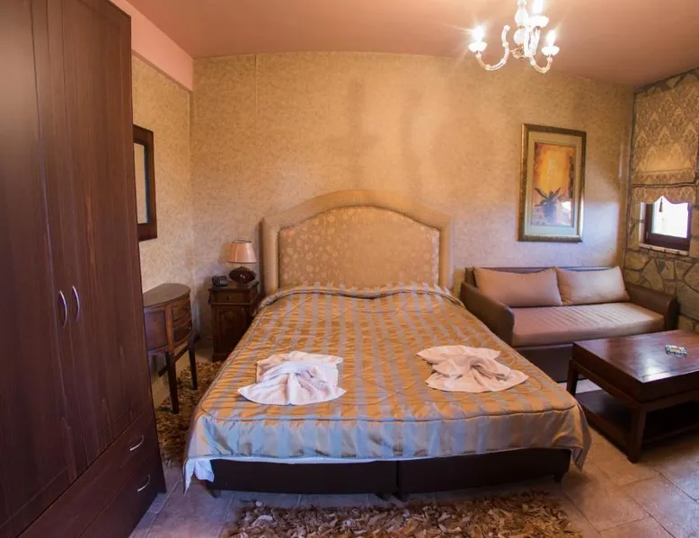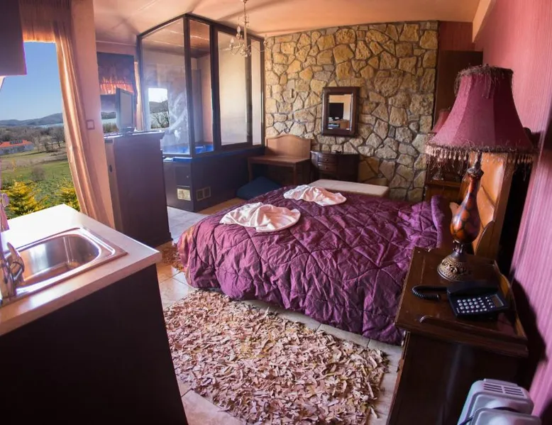 Comfortable Accommodations: Silva Suites in Kryonerion offers family rooms with private bathrooms, balconies, and garden or lake views. Each room includes air-conditioning, a work desk, and free WiFi. Leisure Facilities: Guests can relax on the sun terrace or in the hot tub. The aparthotel features a bar, lounge, and indoor play area. Additional amenities include a hammam, sauna, and outdoor seating area. Dining Options: A buffet breakfast with juice, fresh pastries, cheese, and fruits is served daily. The on-site coffee shop and picnic area provide additional dining options. Location and Activities: Located 95 mi from Nea Anchialos National Airport, Silva Suites is near attractions such as Trikala Municipal Folklore Museum and Archaeological Collection of Trikki, both 26 mi away. Activities include skiing, walking tours, and bike tours. This apartment's special feature is the fireplace. Featuring a private entrance, this air-conditioned apartment consists of 1 living room, 2 separate bedrooms and 1 bathroom with a shower and a hairdryer. The apartment's kitchen, which features a refrigerator, is available for cooking and storing food. Boasting a terrace with lake views, this apartment also provides soundproof walls and a flat-screen TV. The unit offers 3 beds.
