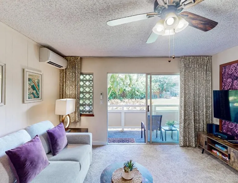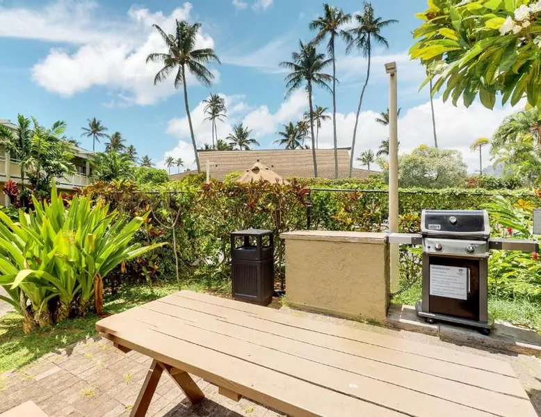 Comfortable Living: Hale Keleko at Plantation Hale A6 in Kapaa offers a one-bedroom apartment with a living room. The ground-floor unit features a private entrance, garden views, and a patio. Exceptional Facilities: Guests can enjoy a restaurant and an outdoor swimming pool. Additional amenities include a hot tub, concierge service, outdoor seating area, picnic area, and a children's playground. Convenient Location: Located 7.5 mi from Lihue Airport, the property is a 5-minute walk from Papaloa Beach. Nearby attractions include Lydgate Beach Park (1.9 mi) and Wailua Falls (9.9 mi). Boasting a private entrance, this air-conditioned apartment features 1 living room, 1 separate bedroom and 1 bathroom with a bath and a hairdryer. Guests will find a stovetop, a refrigerator, kitchenware and an oven in the fully equipped kitchen. The apartment also comes with a barbecue. The apartment features a TV with streaming services, a tea and coffee maker, a seating area, a dining area as well as garden views. The unit has 2 beds.