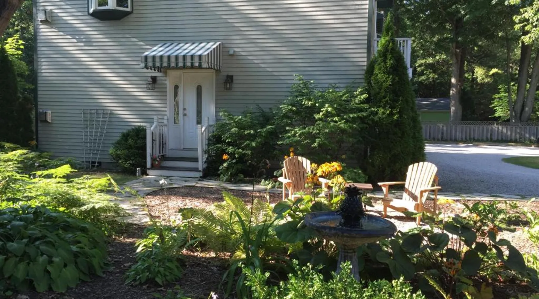 Comfortable Accommodations: Garden Grove Inn Bed and Breakfast in Union Pier offers air-conditioned rooms with private bathrooms, garden views, and free WiFi. Each room includes a TV, parquet floors, and a work desk. Exceptional Facilities: Guests can relax on the sun terrace, enjoy the garden, and use free bicycles. The property features an outdoor fireplace, casino, and outdoor seating area. Free on-site private parking is available. Delicious Breakfast: A variety of breakfast options are provided, including American, Ã la carte, vegetarian, vegan, gluten-free, and kosher. Local specialties, fresh pastries, and warm dishes are served. Convenient Location: Located 28 mi from South Bend Regional Airport, the bed and breakfast offers activities such as hiking, cycling, and film nights. Highly rated for its breakfast and attentive host. This room offers a Queen bed, sitting area with TV and a private bath with a charming clawfoot tub/shower. There is also a private balcony with sitting area that overlooks the gardens. This double room features a balcony, air conditioning and DVD player.