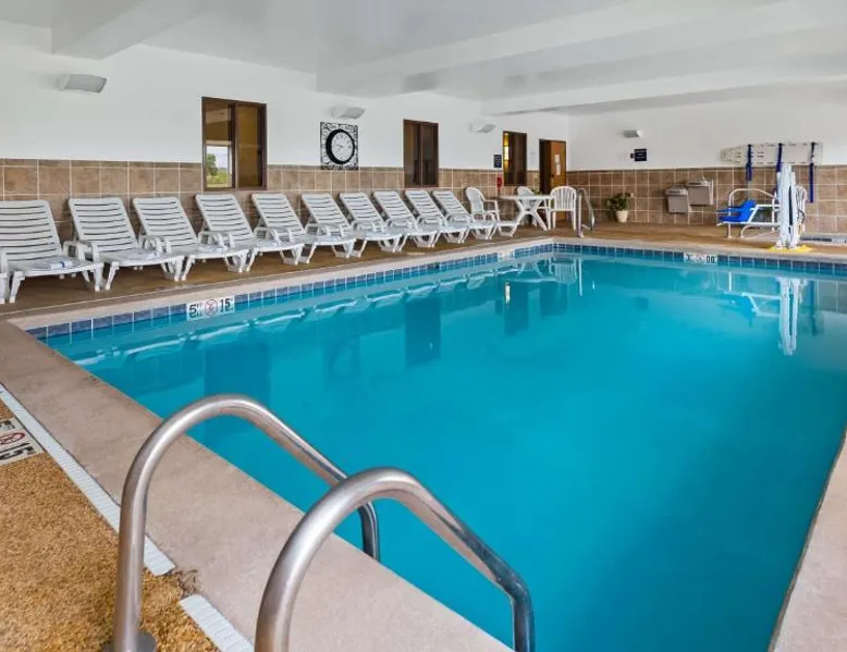 Comfortable Accommodations: Best Western Penn-Ohio Inn & Suites in Hubbard offers family rooms with interconnected options. Each room includes a work desk, mini-bar, and sofa bed. Guests enjoy amenities such as a tea and coffee maker, hairdryer, refrigerator, and microwave. Leisure Facilities: The hotel features a fitness center, indoor swimming pool, and hot tub. Free WiFi is available throughout the property. Additional facilities include a lounge, elevator, and 24-hour front desk. Convenient Location: Located 31 mi from The Links at Firestone Farms, the hotel provides easy access to local attractions. Free on-site parking is provided for guests. Guest Services: Services include daily housekeeping, express check-in and check-out, luggage storage, and a business area. A child-friendly buffet caters to families. The double room features a mini-bar and a tea and coffee maker. The unit has 1 bed.