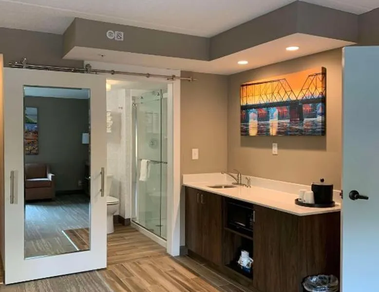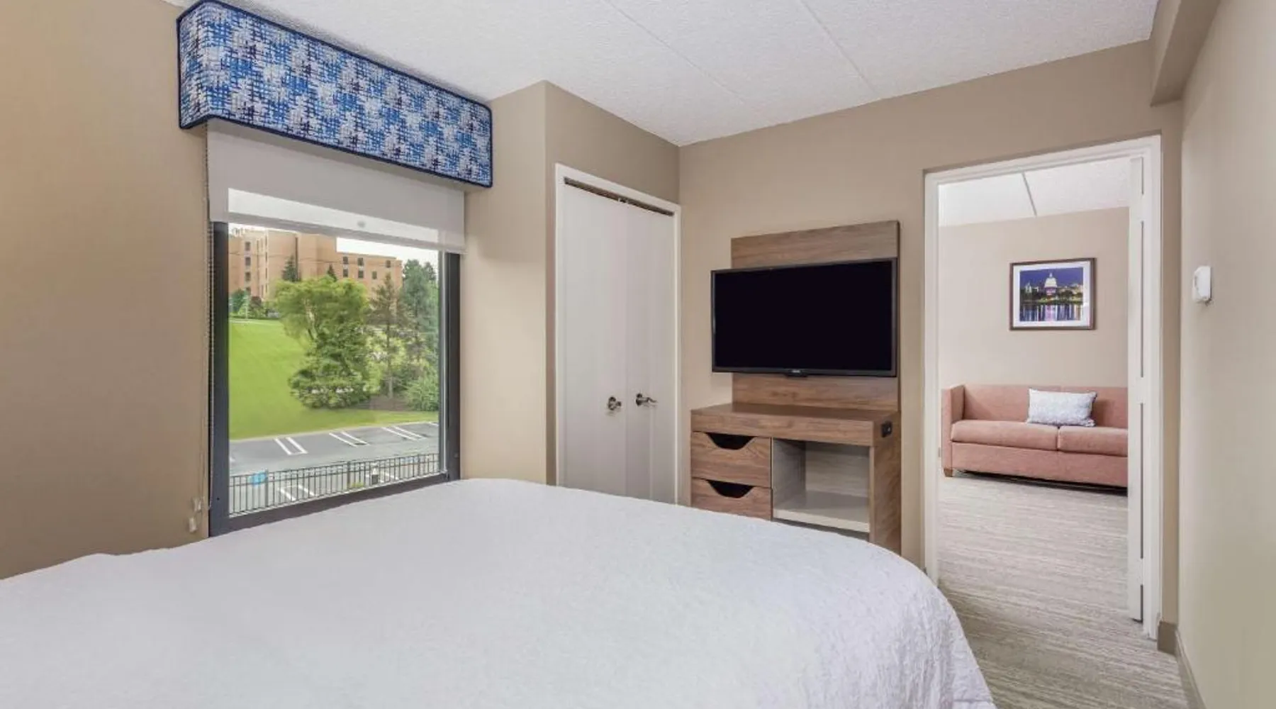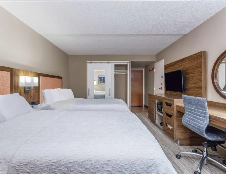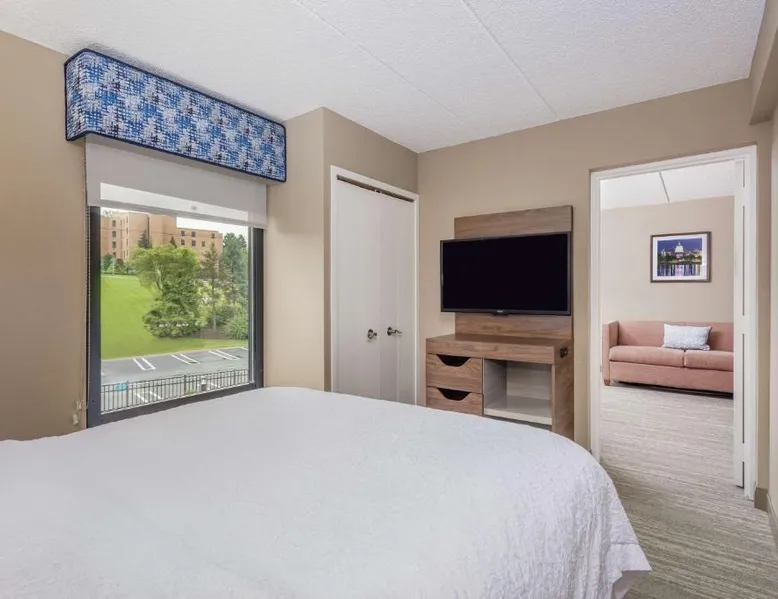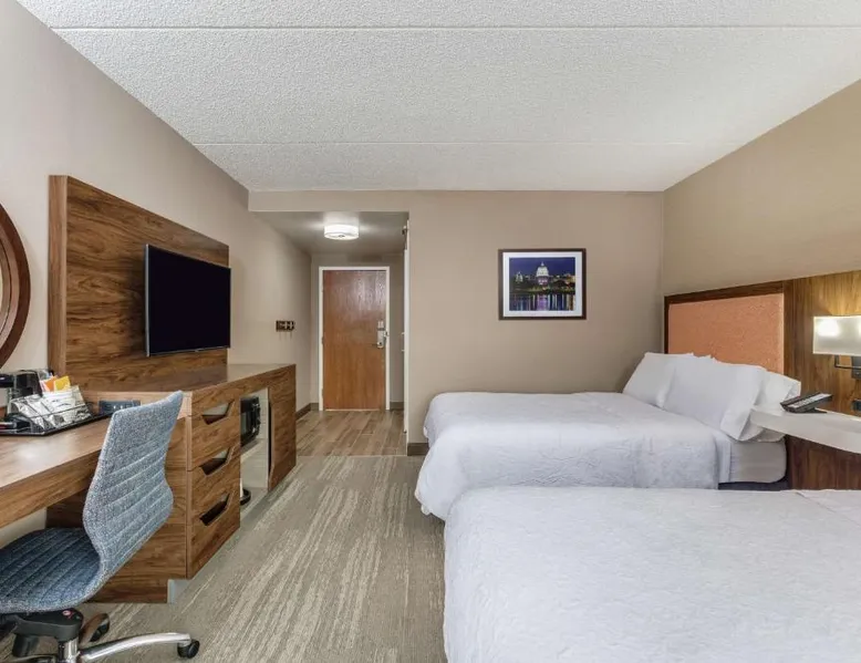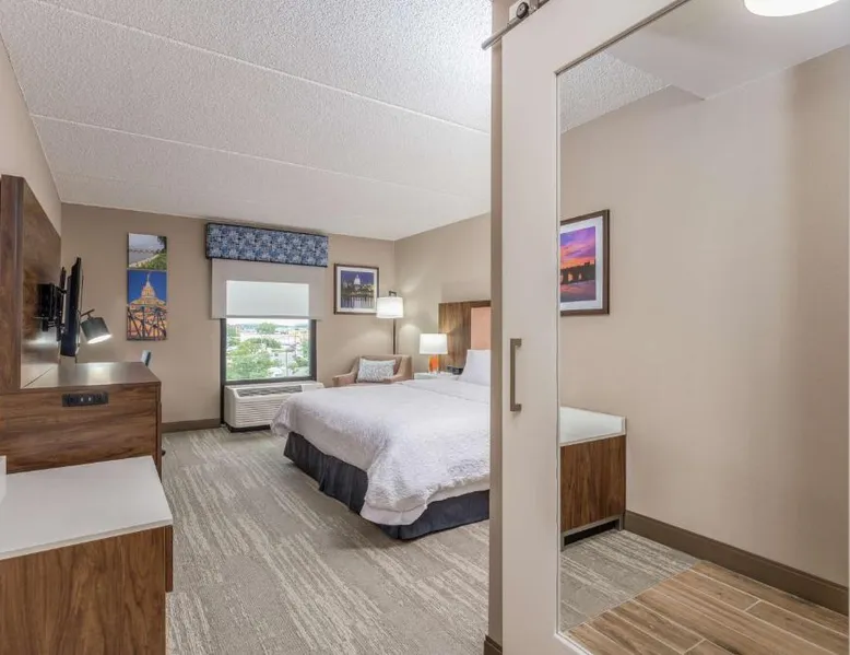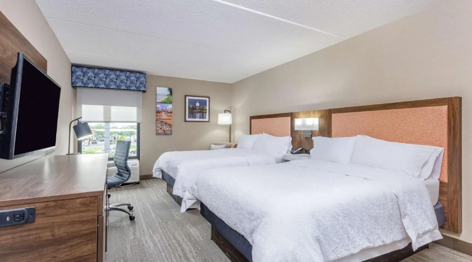 Comfortable Accommodations: Rooms feature air-conditioning, private bathrooms, and modern amenities such as free WiFi, flat-screen TVs, and work desks. Guests enjoy amenities like tea and coffee makers, refrigerators, and free toiletries. Leisure Facilities: The hotel offers a fitness center, tennis court, and a seasonal outdoor swimming pool. Additional facilities include a lounge, outdoor fireplace, and a child-friendly buffet. Free on-site private parking is available for guests. Dining Options: A continental and American buffet breakfast is served daily, including warm dishes, juice, and fruits. The property also provides a business area and outdoor seating for guests to relax. Prime Location: Located in Harrisburg, the hotel is 6.2 mi from Harrisburg International Airport. Nearby attractions include the National Civil War Museum (2.6 mi) and Hersheypark (11 mi). Guests appreciate the room cleanliness, breakfast provided by the property, and attentive staff. This quadruple room features a microwave, tile/marble floor and air conditioning. Please note that this is a nonsmoking room.