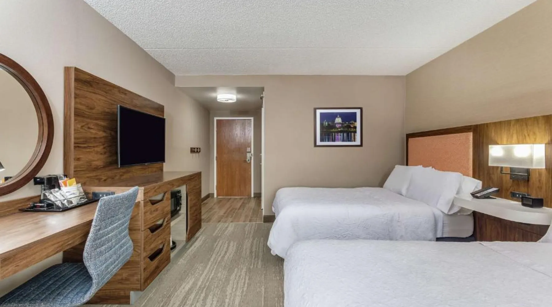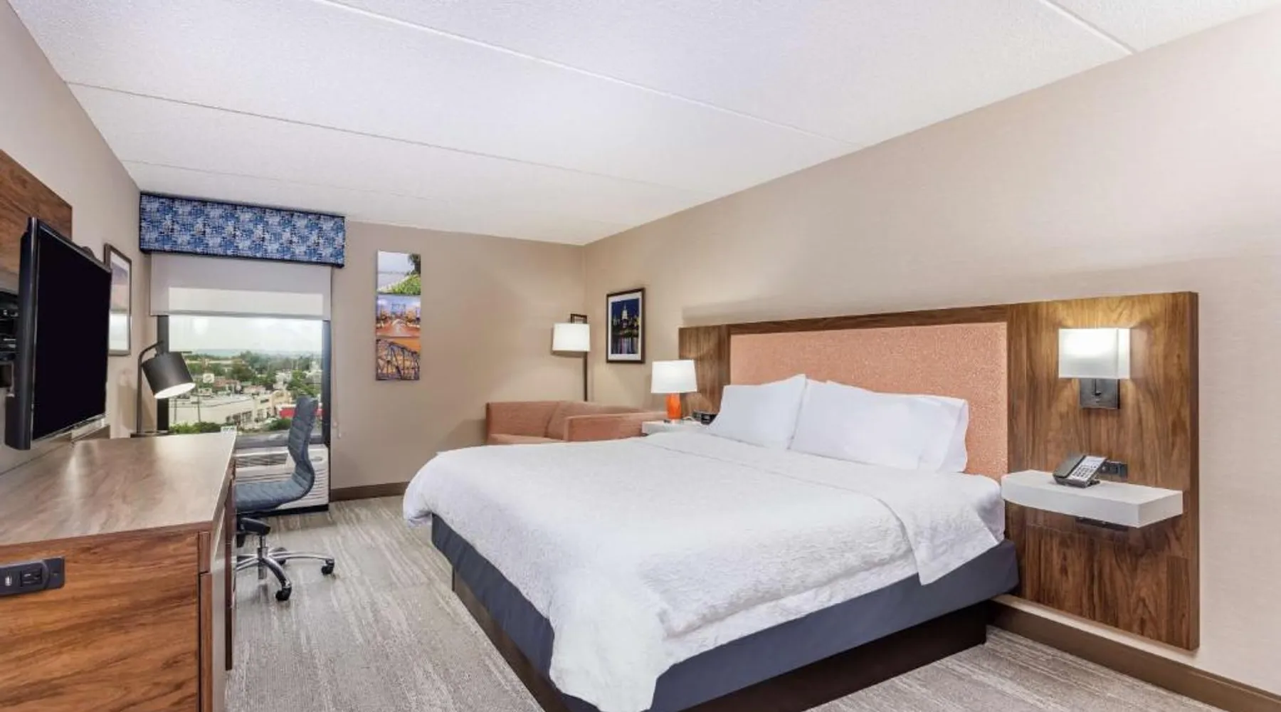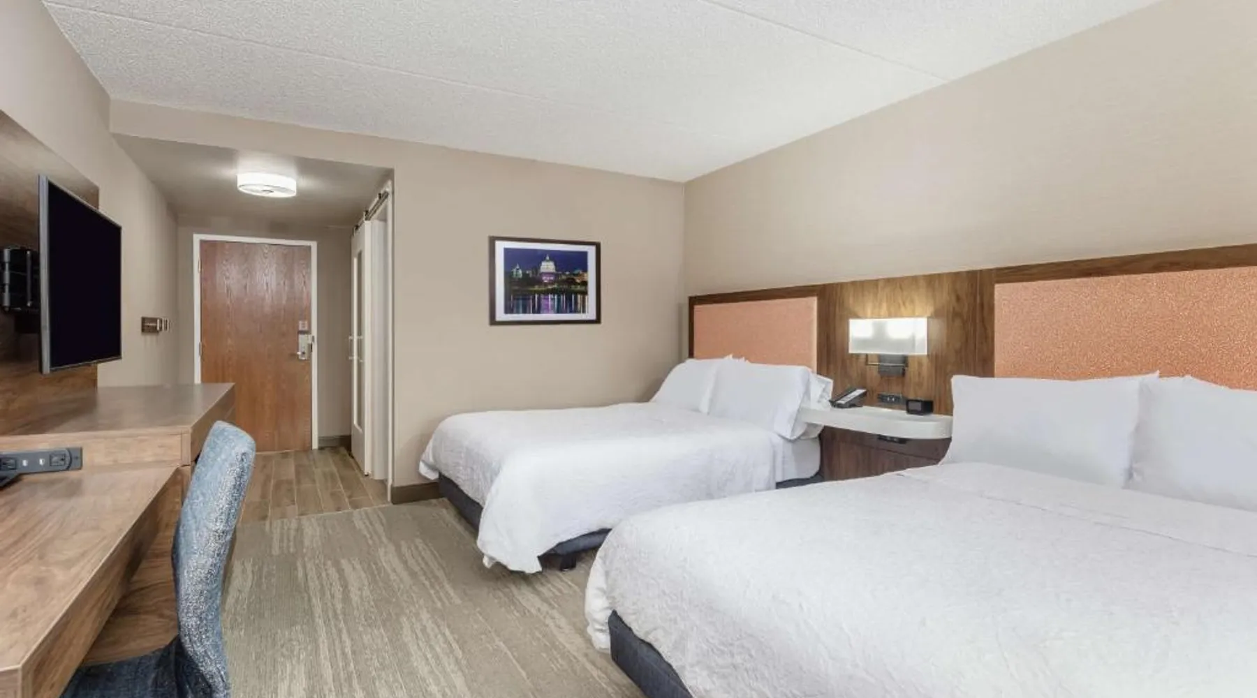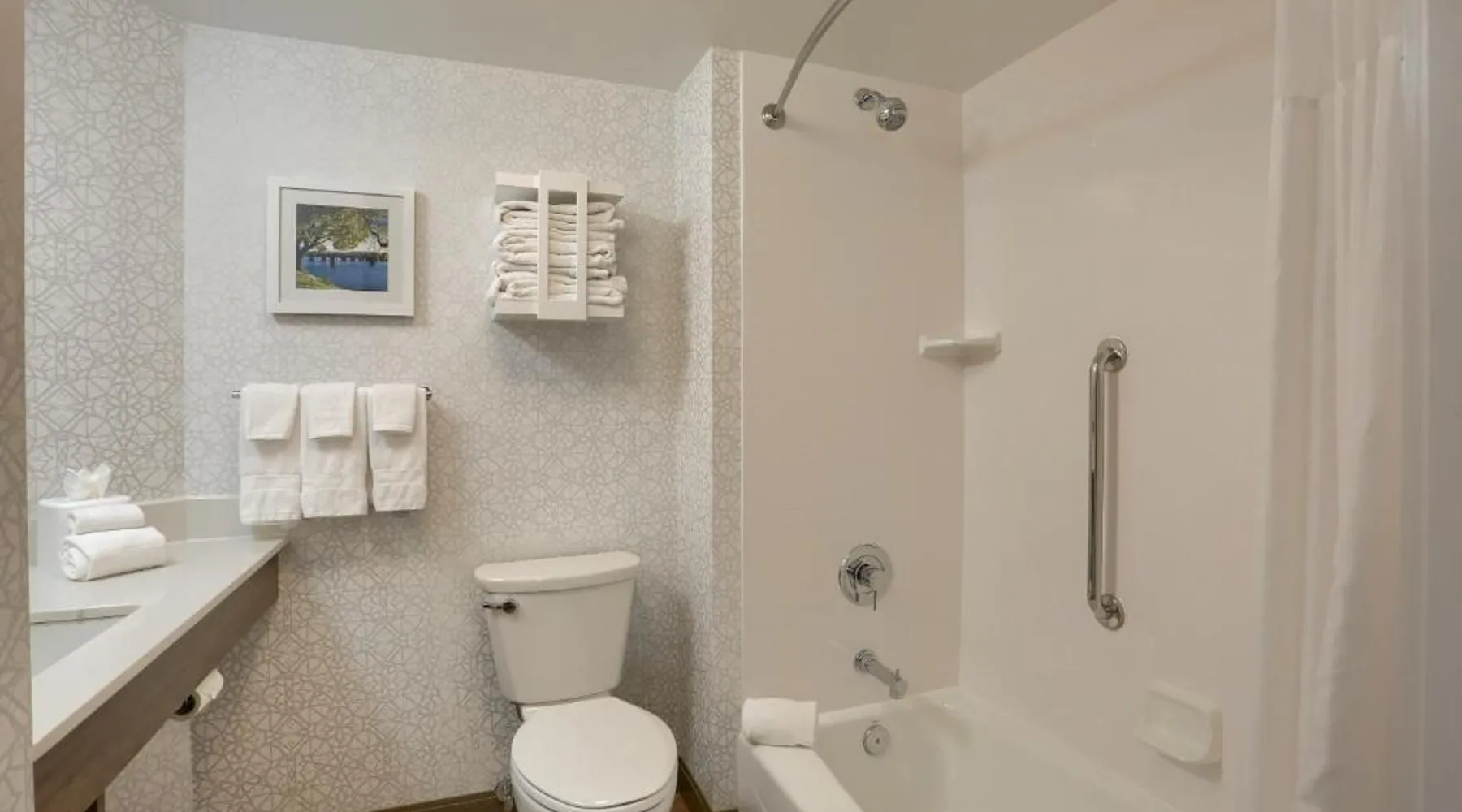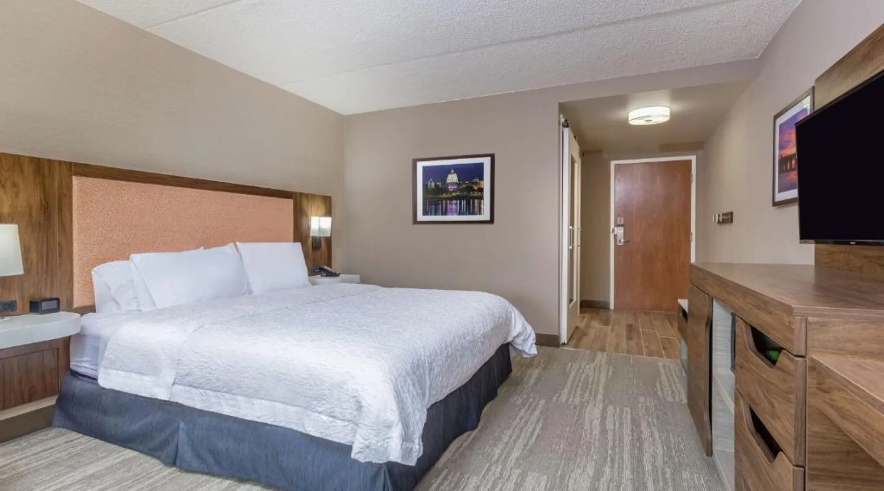 Comfortable Accommodations: Rooms feature air-conditioning, private bathrooms, and modern amenities such as free WiFi, flat-screen TVs, and work desks. Guests enjoy amenities like tea and coffee makers, refrigerators, and free toiletries. Leisure Facilities: The hotel offers a fitness center, tennis court, and a seasonal outdoor swimming pool. Additional facilities include a lounge, outdoor fireplace, and a child-friendly buffet. Free on-site private parking is available for guests. Dining Options: A continental and American buffet breakfast is served daily, including warm dishes, juice, and fruits. The property also provides a business area and outdoor seating for guests to relax. Prime Location: Located in Harrisburg, the hotel is 6.2 mi from Harrisburg International Airport. Nearby attractions include the National Civil War Museum (2.6 mi) and Hersheypark (11 mi). Guests appreciate the room cleanliness, breakfast provided by the property, and attentive staff. This quadruple room features a microwave, tile/marble floor and air conditioning. Please note that this is a nonsmoking room.