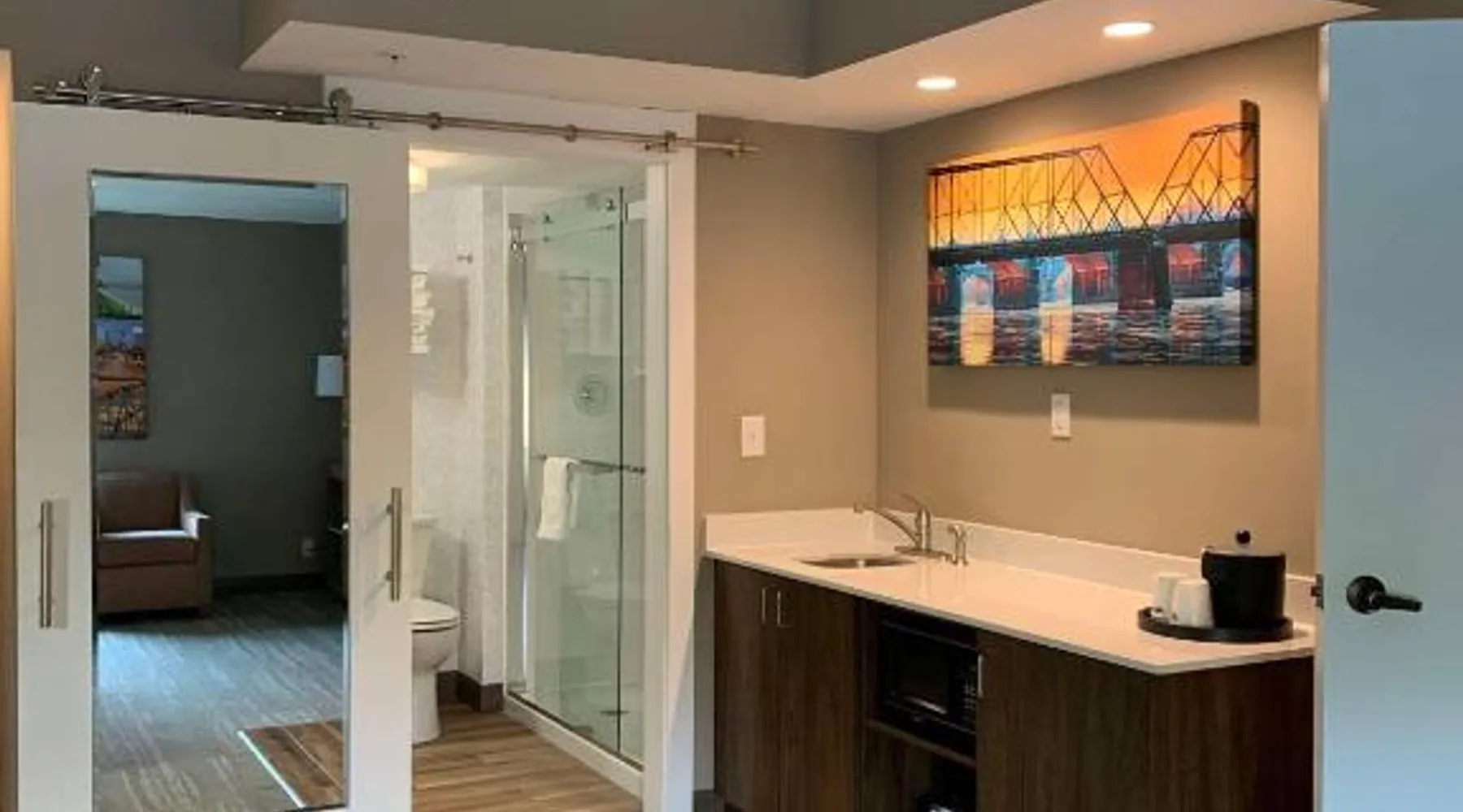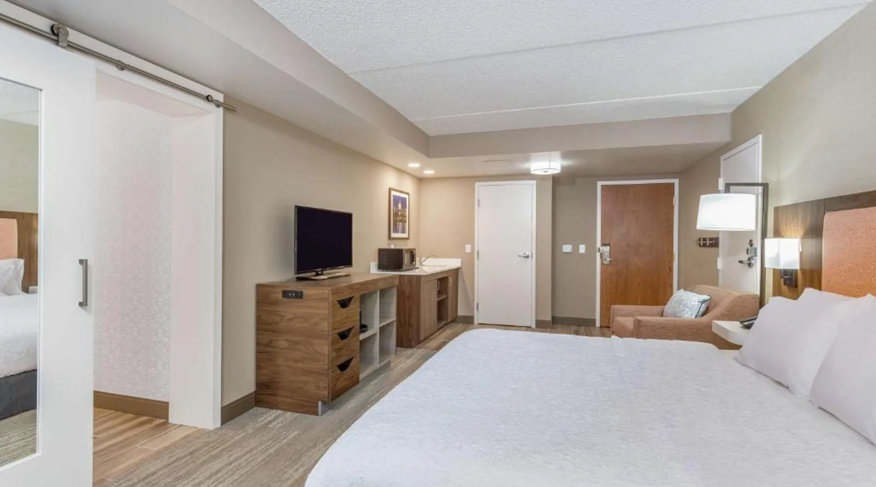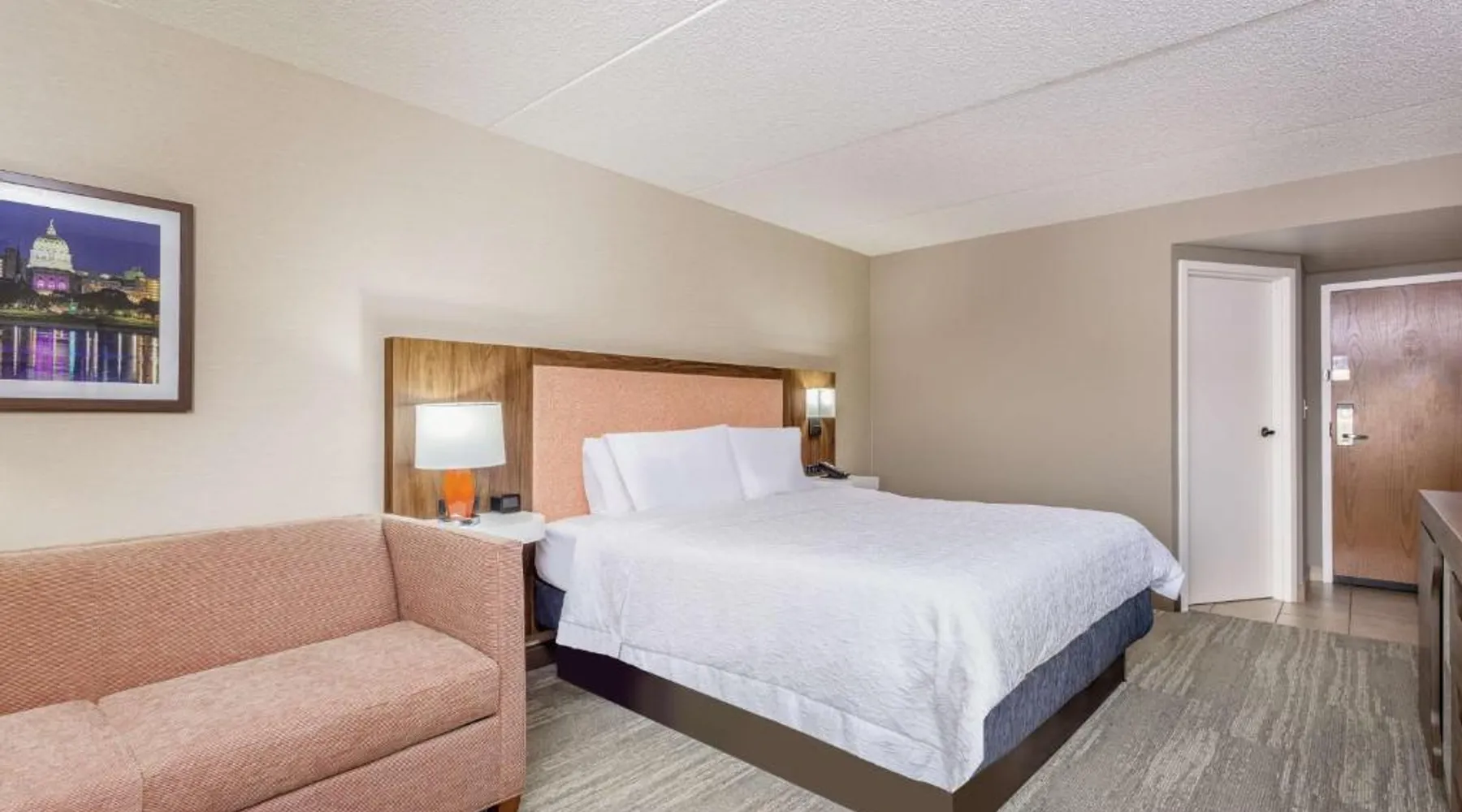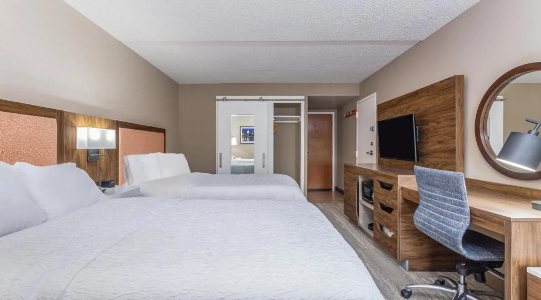 Comfortable Accommodations: Rooms feature air-conditioning, private bathrooms, and modern amenities such as free WiFi, flat-screen TVs, and work desks. Guests enjoy amenities like tea and coffee makers, refrigerators, and free toiletries. Leisure Facilities: The hotel offers a fitness center, tennis court, and a seasonal outdoor swimming pool. Additional facilities include a lounge, outdoor fireplace, and a child-friendly buffet. Free on-site private parking is available for guests. Dining Options: A continental and American buffet breakfast is served daily, including warm dishes, juice, and fruits. The property also provides a business area and outdoor seating for guests to relax. Prime Location: Located in Harrisburg, the hotel is 6.2 mi from Harrisburg International Airport. Nearby attractions include the National Civil War Museum (2.6 mi) and Hersheypark (11 mi). Guests appreciate the room cleanliness, breakfast provided by the property, and attentive staff. This quadruple room features a microwave, tile/marble floor and air conditioning. Please note that this is a nonsmoking room.