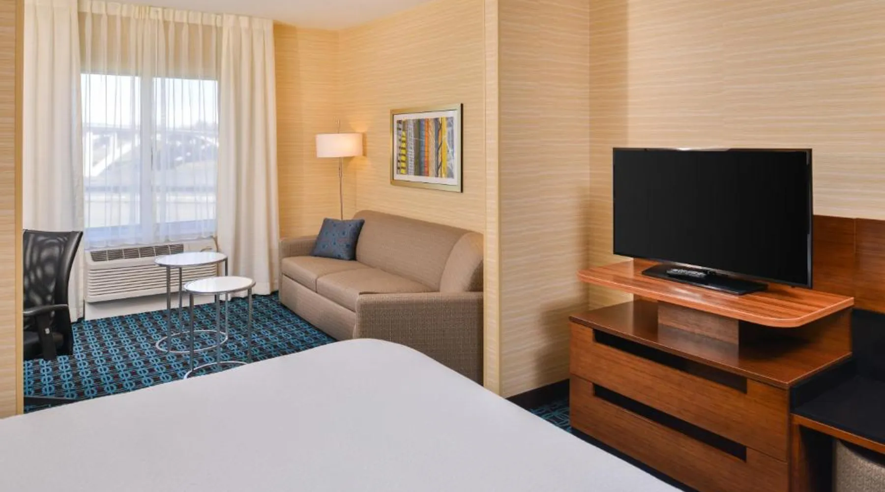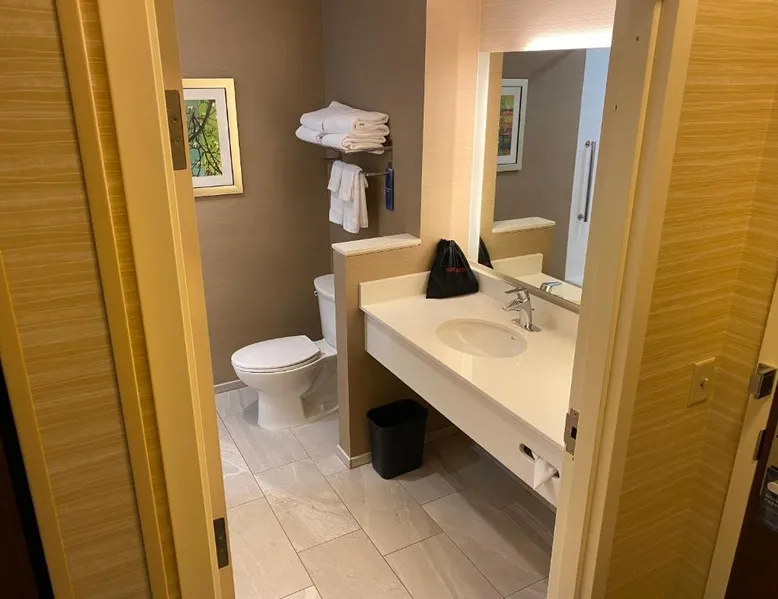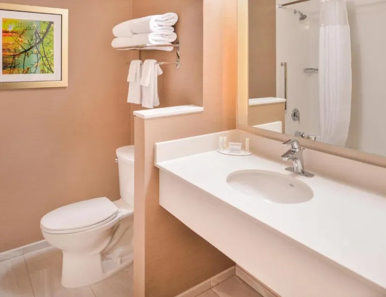 Comfortable Accommodations: Fairfield Inn & Suites by Marriott Eugene East/Springfield in Eugene offers family rooms with private bathrooms, air-conditioning, and free WiFi. Each room includes a work desk, sofa bed, and modern amenities. Exceptional Facilities: Guests can enjoy a sun terrace, garden, and outdoor seating area. The hotel provides free bicycles, a minimarket, and a business area. Additional services include a 24-hour front desk, concierge, and free on-site parking. Prime Location: Located 11 mi from Eugene Airport, the hotel is near Matthew Knight Arena (1.2 mi), Maude Kerns Art Center (1.1 mi), and the University of Oregon (2.1 mi). Nearby attractions include Springfield Museum and Autzen Stadium. Guest Satisfaction: Highly rated by guests for its excellent service and comfortable accommodations. Boasting views of the Willamette River, this room features a flat-screen TV and is air-conditioned. Additional amenities include a mini-refrigerator, microwave, and hairdryer.