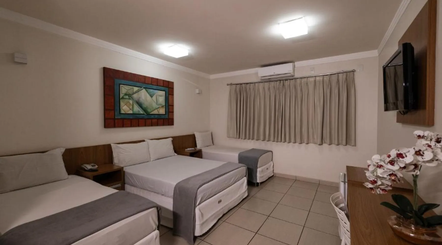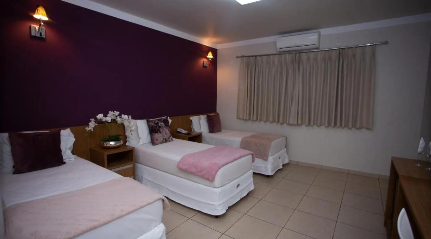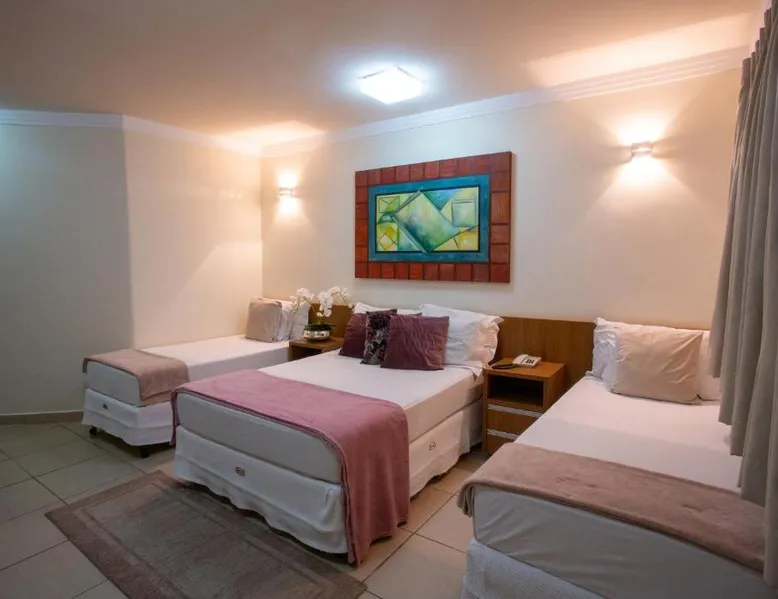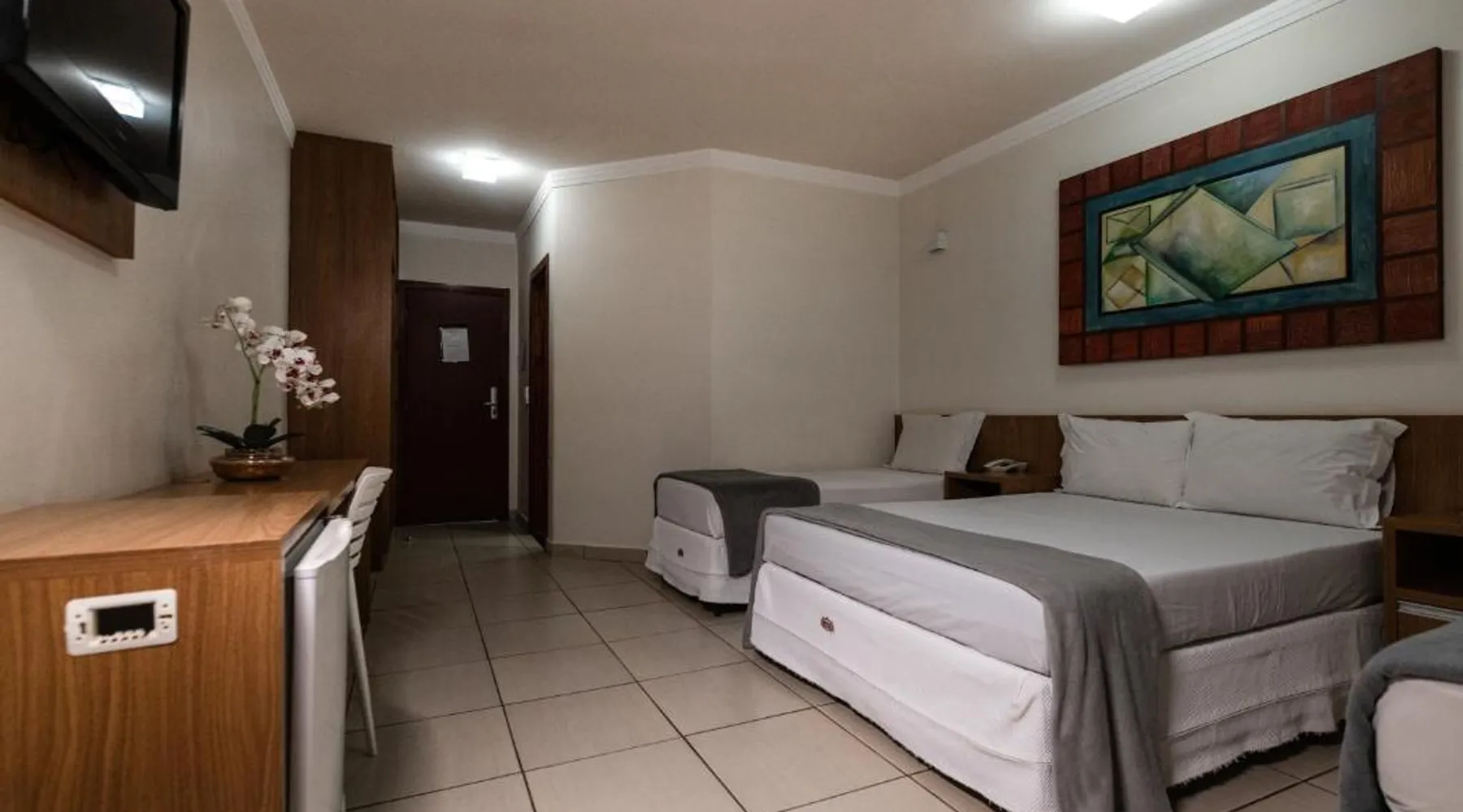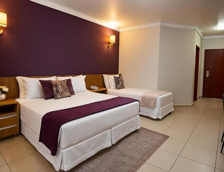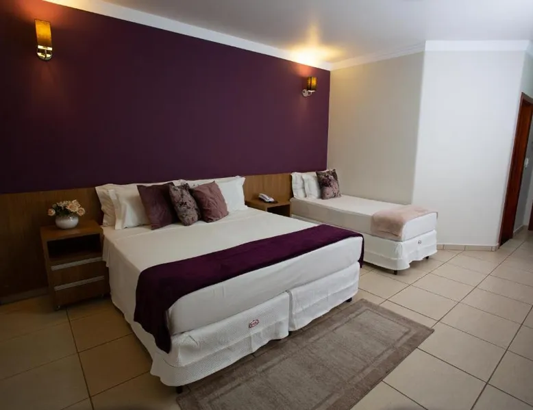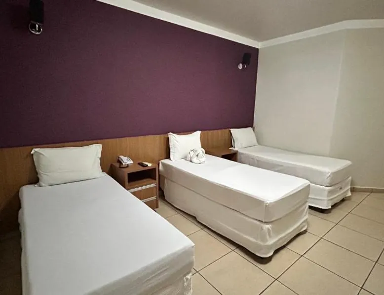 Comfortable Accommodations: Havana Express in Uberaba offers air-conditioned rooms with private bathrooms, free WiFi, and modern amenities. Each room includes a mini-bar, TV, and wardrobe, ensuring a pleasant stay. Dining Experience: Guests enjoy a continental buffet breakfast with local specialties, warm dishes, fresh pastries, cheese, fruits, and juice. The breakfast is highly praised by visitors for its quality and variety. Convenient Location: Located 1.9 mi from Mário de Almeida Franco Airport, the hotel provides easy access to local attractions. The property is located on Avenida das Toldas, offering proximity to key areas. Exceptional Service: Havana Express features a 24-hour front desk with English, Spanish, and Portuguese-speaking staff. Paid on-site private parking is available for guests' convenience. Offering free toiletries, this quadruple room includes a private bathroom with a shower. The spacious air-conditioned quadruple room offers a flat-screen TV with cable channels, a mini-bar, a wardrobe and a tiled floor. The unit has 3 beds.