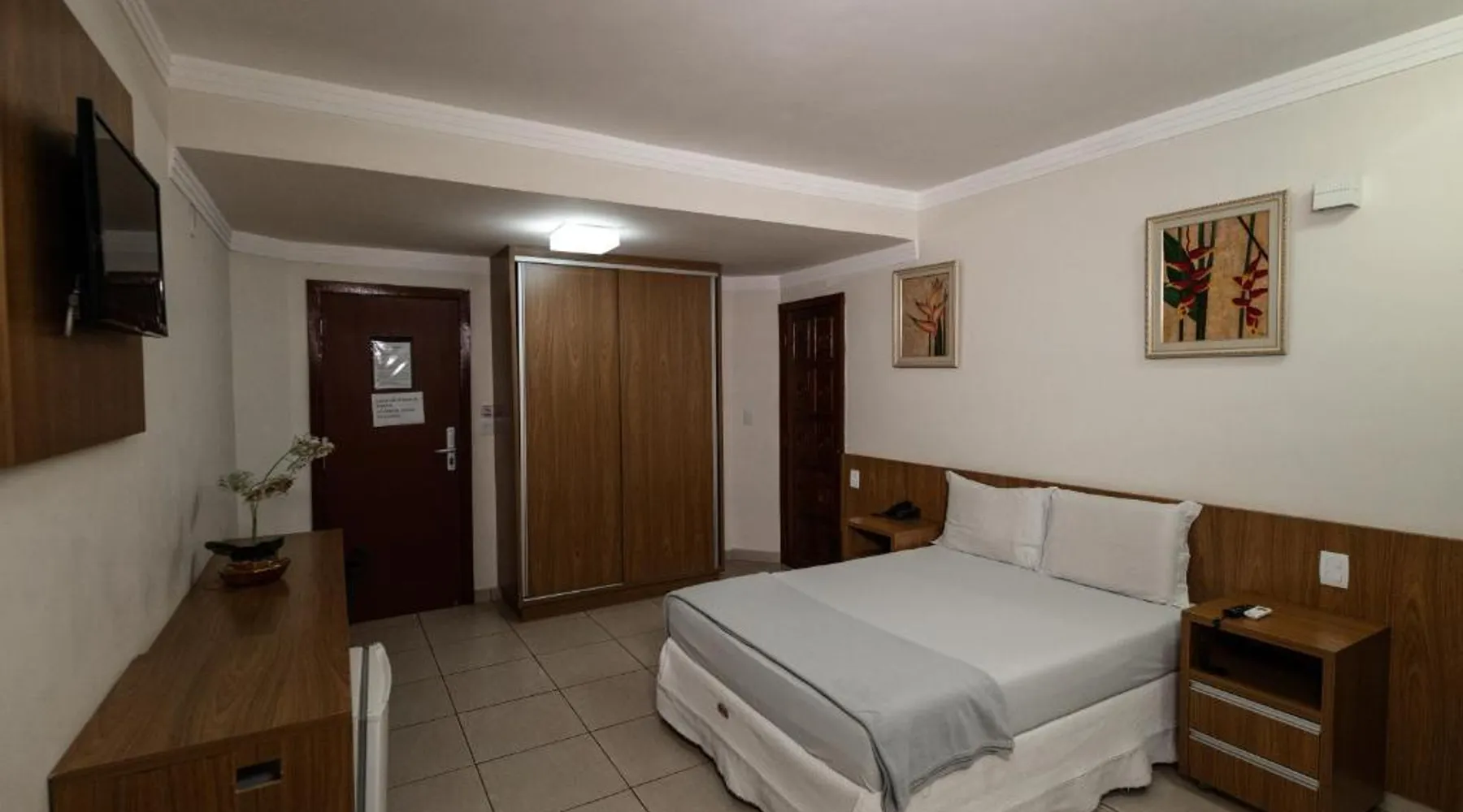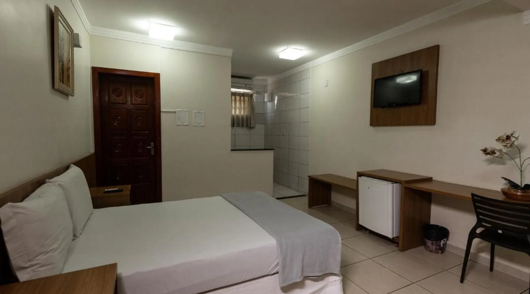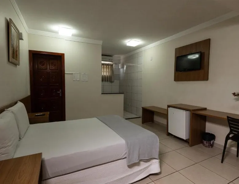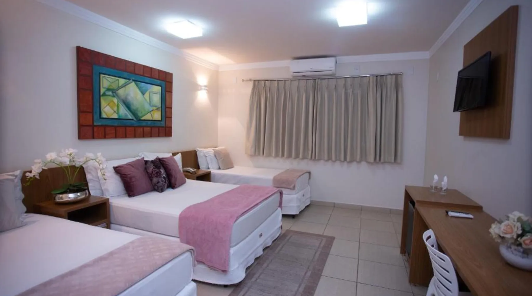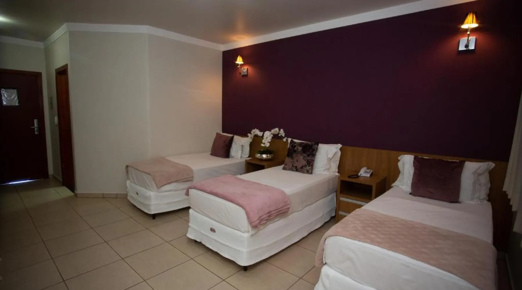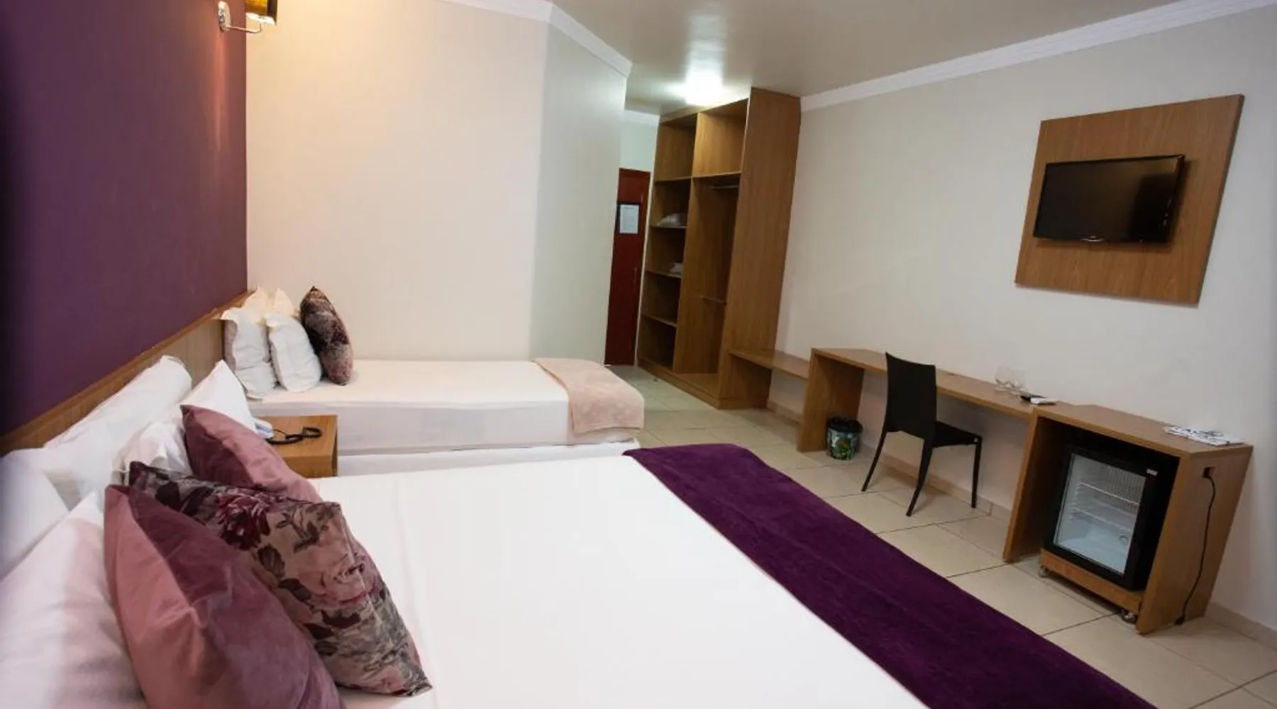 Comfortable Accommodations: Havana Express in Uberaba offers air-conditioned rooms with private bathrooms, free WiFi, and modern amenities. Each room includes a mini-bar, TV, and wardrobe, ensuring a pleasant stay. Dining Experience: Guests enjoy a continental buffet breakfast with local specialties, warm dishes, fresh pastries, cheese, fruits, and juice. The breakfast is highly praised by visitors for its quality and variety. Convenient Location: Located 1.9 mi from Mário de Almeida Franco Airport, the hotel provides easy access to local attractions. The property is located on Avenida das Toldas, offering proximity to key areas. Exceptional Service: Havana Express features a 24-hour front desk with English, Spanish, and Portuguese-speaking staff. Paid on-site private parking is available for guests' convenience. Offering free toiletries, this quadruple room includes a private bathroom with a shower. The spacious air-conditioned quadruple room offers a flat-screen TV with cable channels, a mini-bar, a wardrobe and a tiled floor. The unit has 3 beds.
