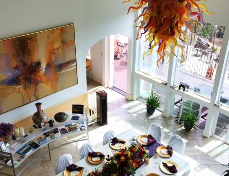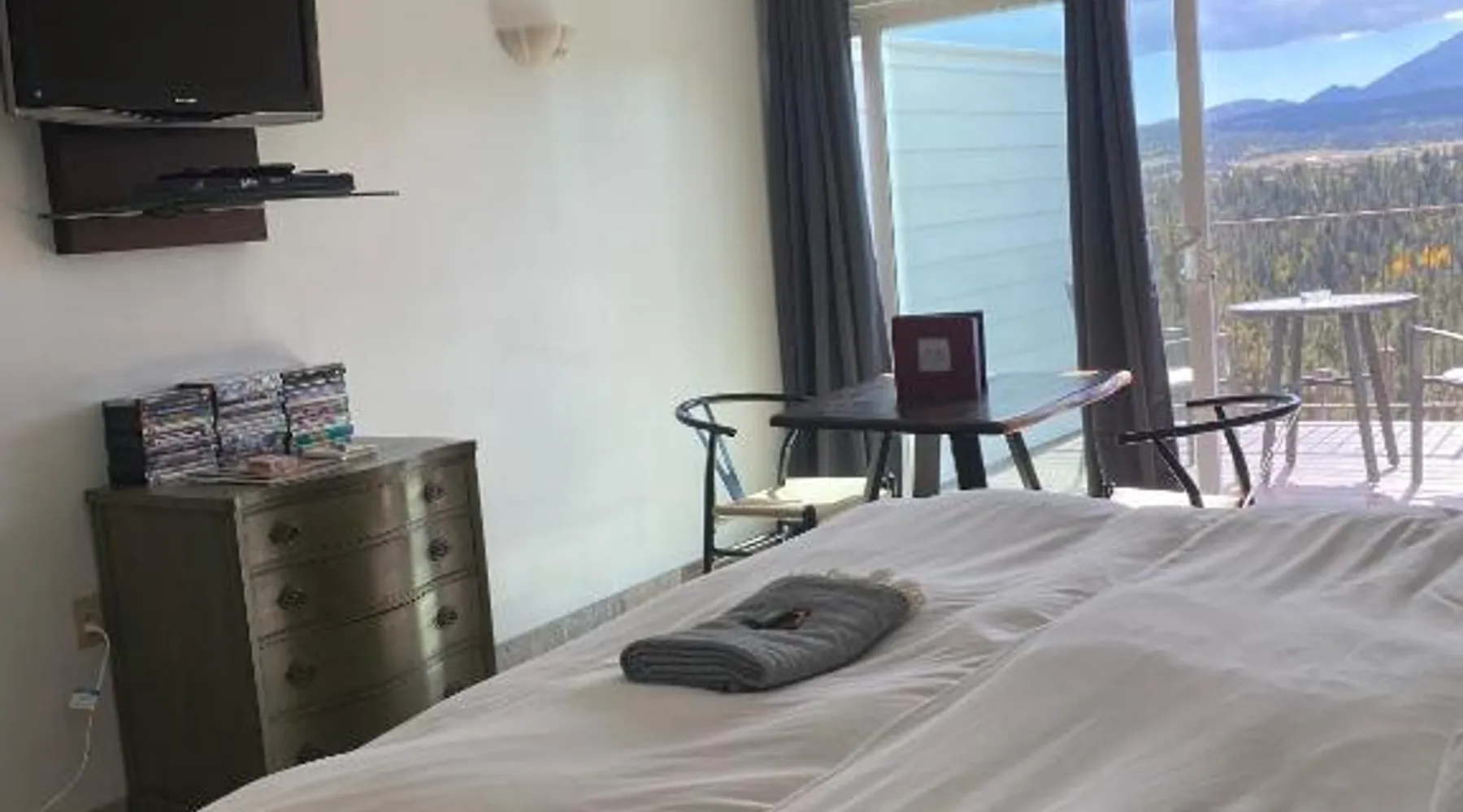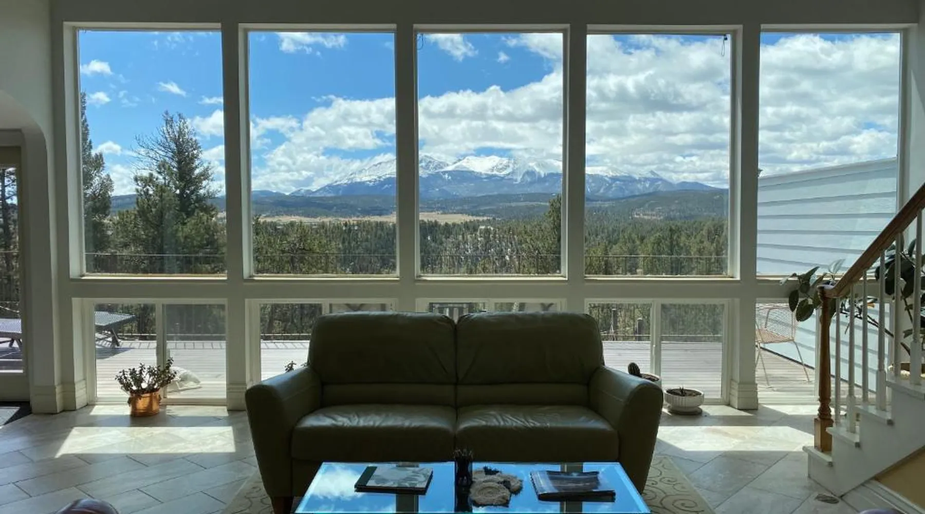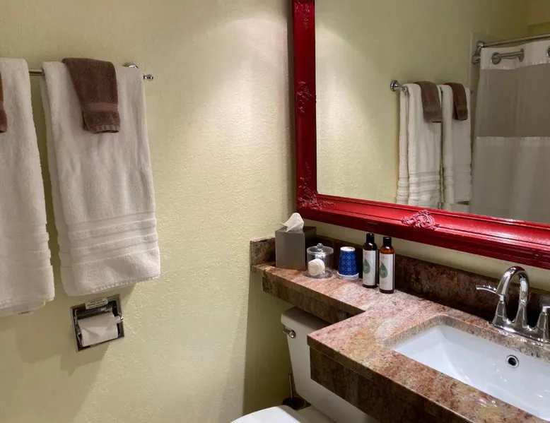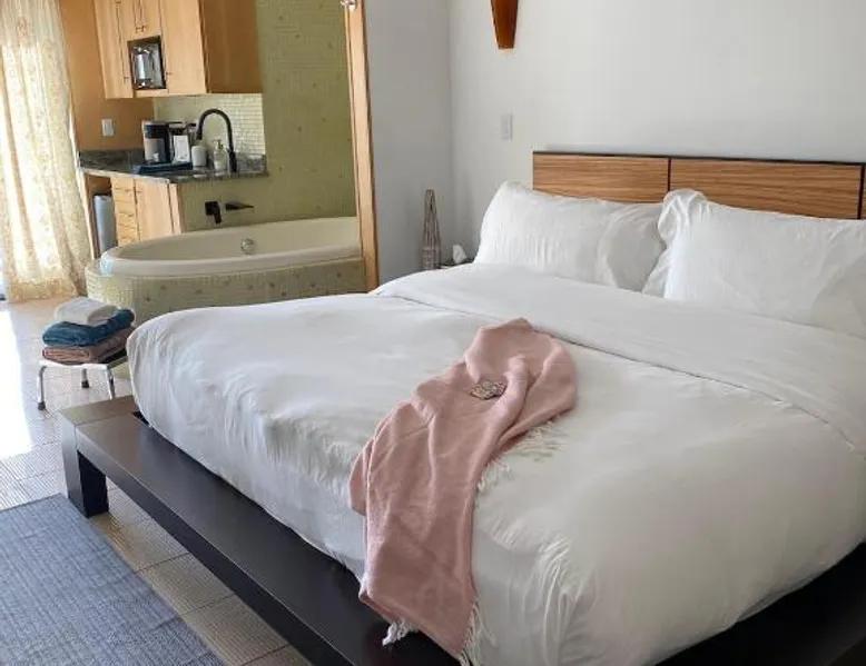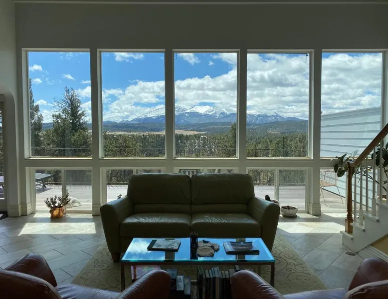 Comfortable Accommodations: Pikes Peak Paradise Bed and Breakfast in Woodland Park offers comfortable rooms with private bathrooms, balconies, and mountain views. Each room includes a tea and coffee maker, refrigerator, and free toiletries. Exceptional Facilities: Guests can relax on the sun terrace or stay connected with free WiFi. The property features a lounge, outdoor fireplace, and outdoor seating area. Additional amenities include a kitchenette, sauna, and spa bath. Delicious Breakfast: A variety of breakfast options are available, including American, vegetarian, vegan, and gluten-free. Breakfast includes warm dishes, juice, pancakes, and fruits. Room service and breakfast in the room enhance the stay. Local Attractions: Located 31 mi from Colorado Springs Airport, the bed and breakfast is near Garden of the Gods (22 mi) and Rock Ledge Ranch Historic Site (22 mi). Activities such as yoga, fitness, hiking, and cycling are available. This suite features a private balcony, a 2-person sauna and heated porcelain tile floors. A flat-screen TV with a DVD player is also included.