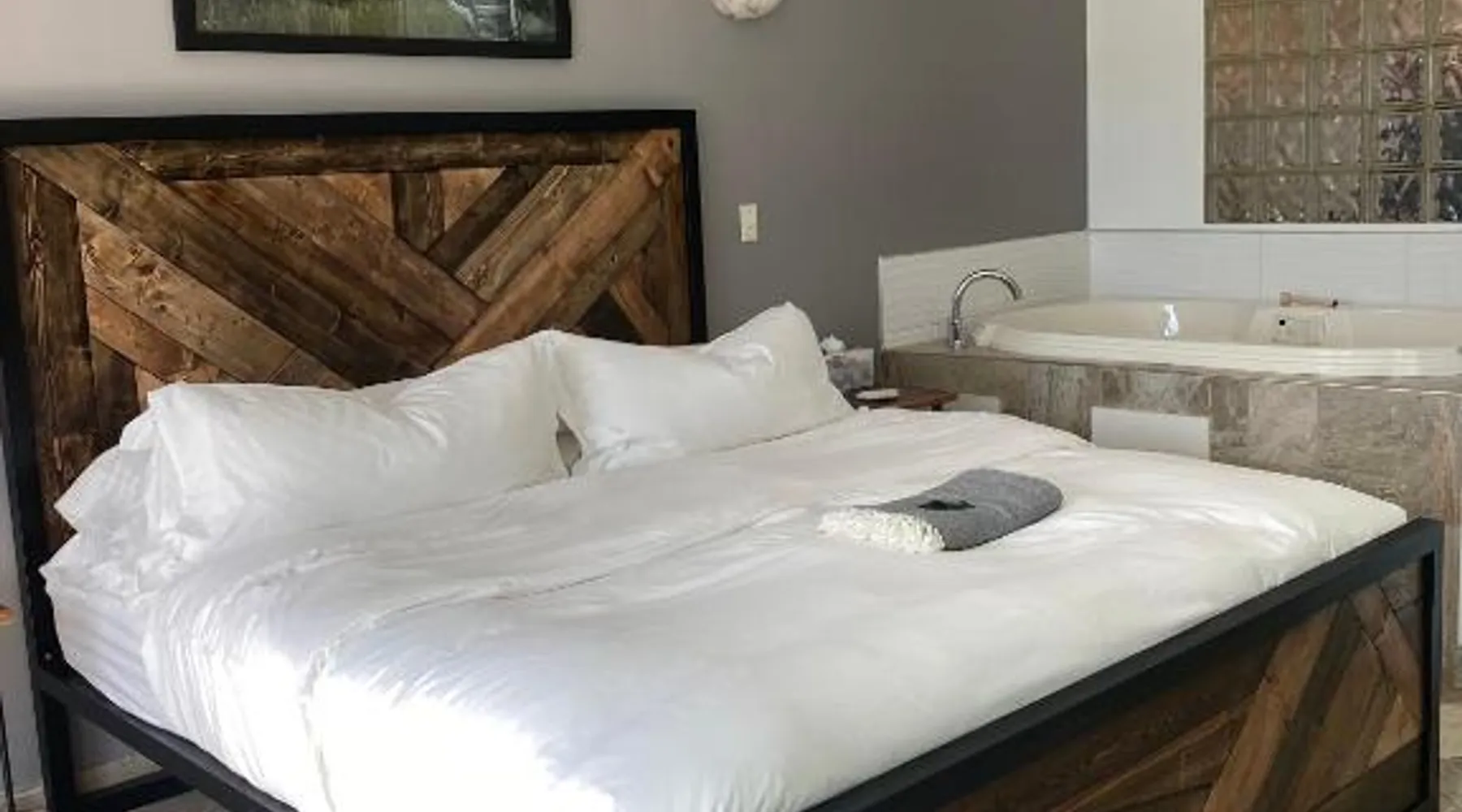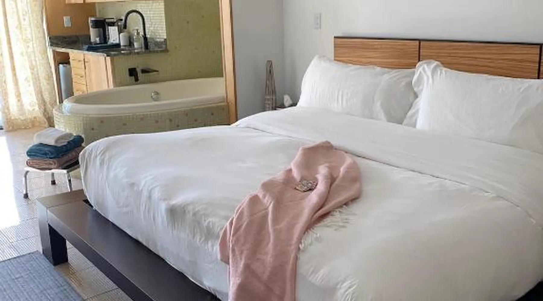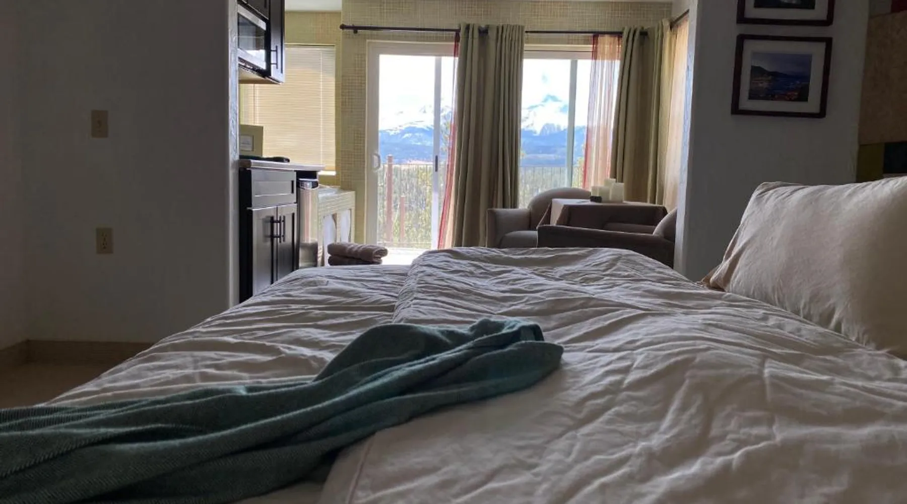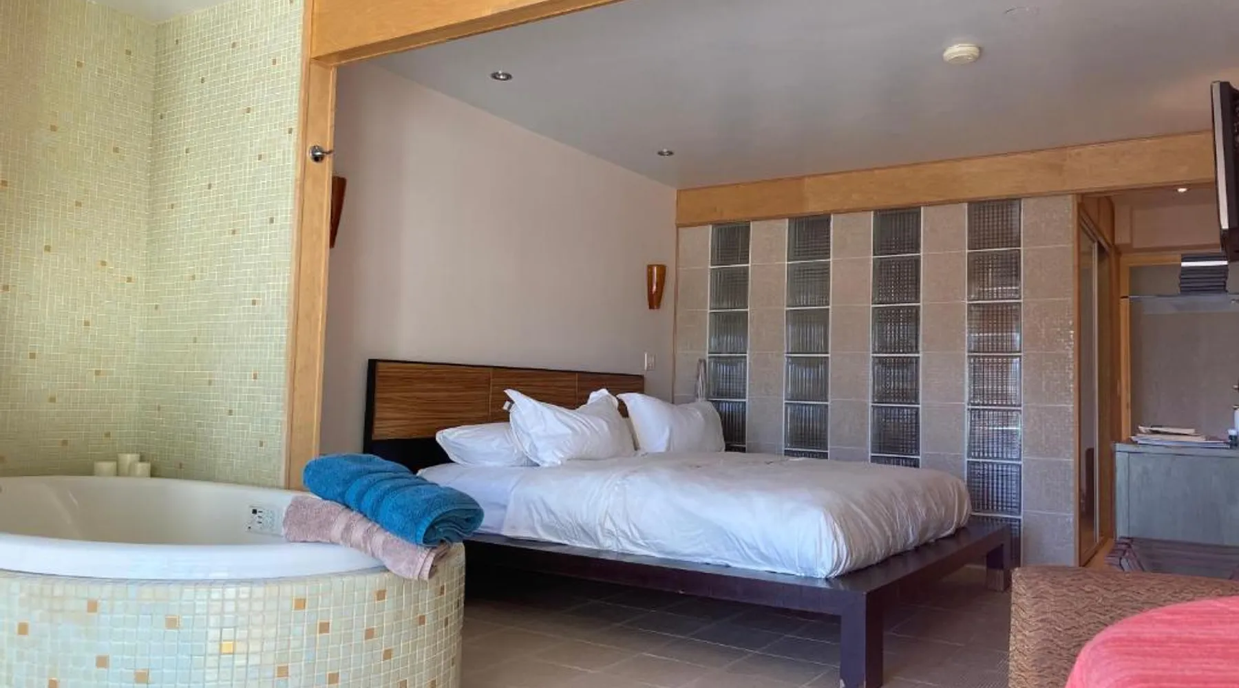 Comfortable Accommodations: Pikes Peak Paradise Bed and Breakfast in Woodland Park offers comfortable rooms with private bathrooms, balconies, and mountain views. Each room includes a tea and coffee maker, refrigerator, and free toiletries. Exceptional Facilities: Guests can relax on the sun terrace or stay connected with free WiFi. The property features a lounge, outdoor fireplace, and outdoor seating area. Additional amenities include a kitchenette, sauna, and spa bath. Delicious Breakfast: A variety of breakfast options are available, including American, vegetarian, vegan, and gluten-free. Breakfast includes warm dishes, juice, pancakes, and fruits. Room service and breakfast in the room enhance the stay. Local Attractions: Located 31 mi from Colorado Springs Airport, the bed and breakfast is near Garden of the Gods (22 mi) and Rock Ledge Ranch Historic Site (22 mi). Activities such as yoga, fitness, hiking, and cycling are available. This suite features a private balcony, a 2-person sauna and heated porcelain tile floors. A flat-screen TV with a DVD player is also included.