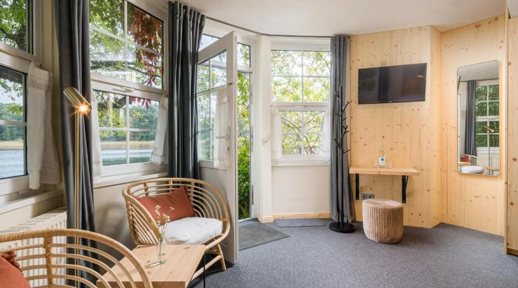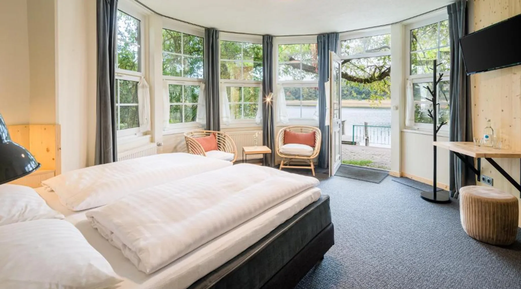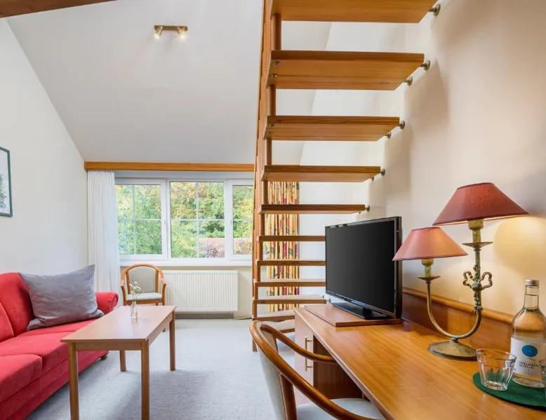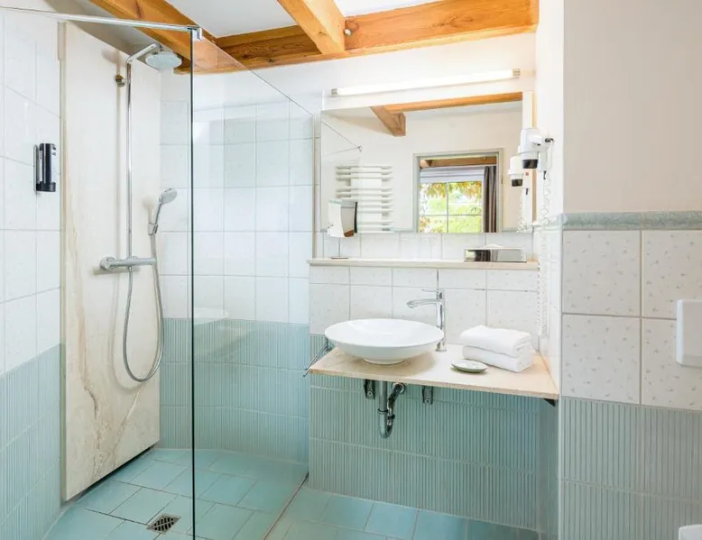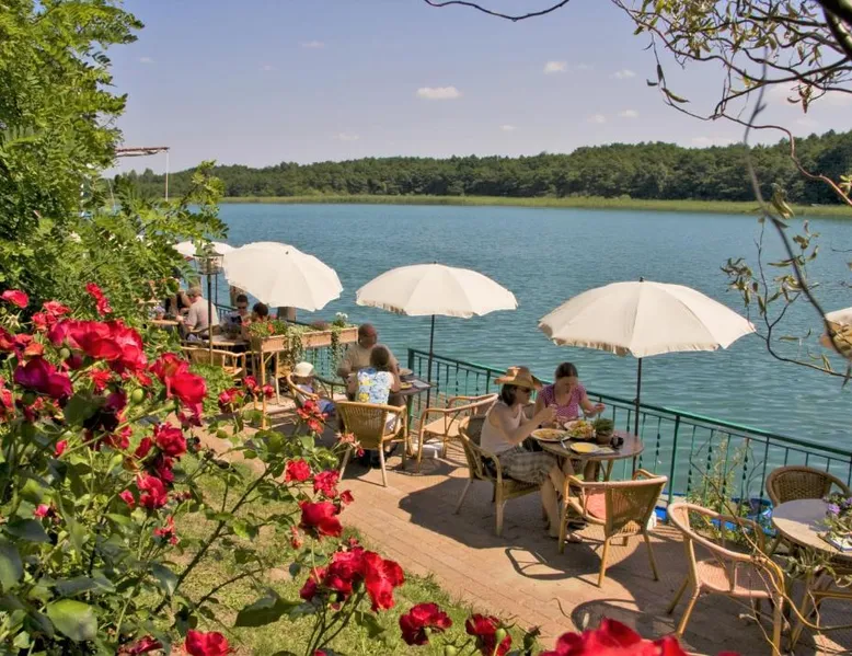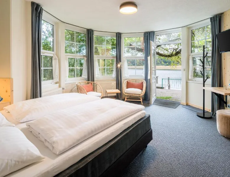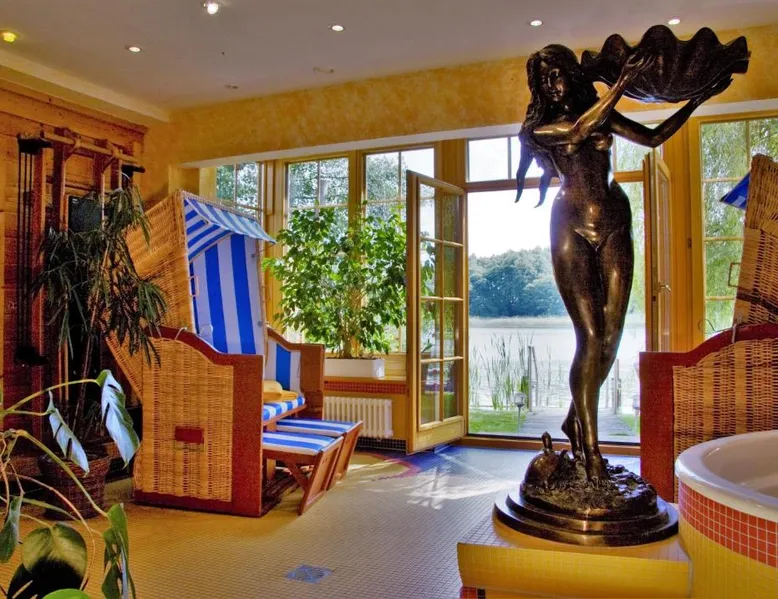 The hotel and its guesthouse can be found in the middle of the beautiful landscape of Feldberg, surrounded by woodland areas and lakes. There are 7 conservation areas nearby, and the hotel sits right on the banks of the lakes of Luzin. For a relaxing and unforgettable vacation, we have a beautiful and sunny terrace right on the lake and also a cozy sauna and bath house offering direct access to the lake. Room features satellite TV, a desk, and a private bathroom. Located 328 feet from the main building this room includes a breakfast buffet and a flat-screen TV.
