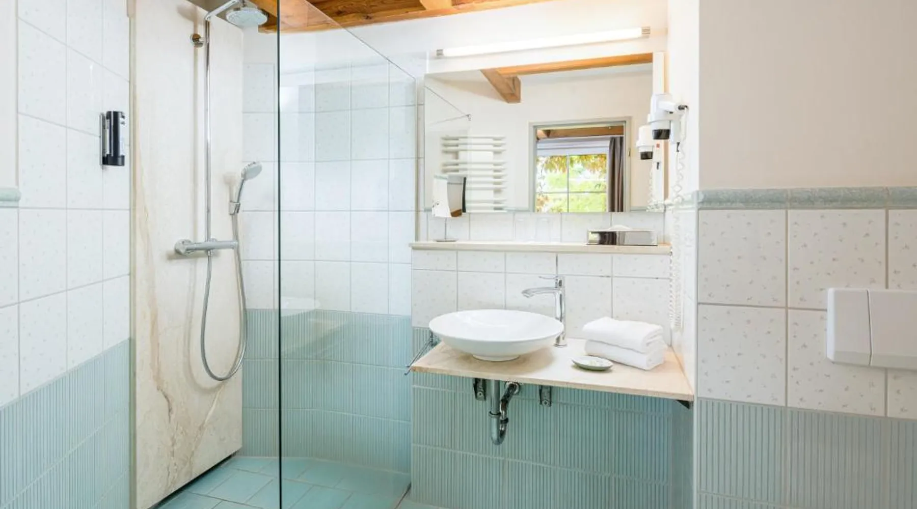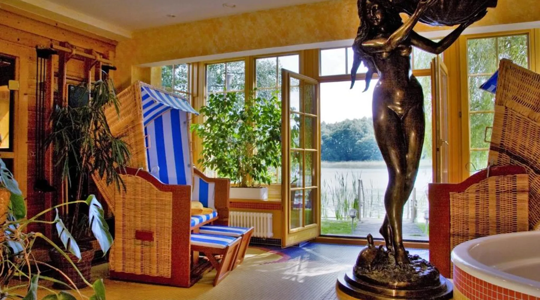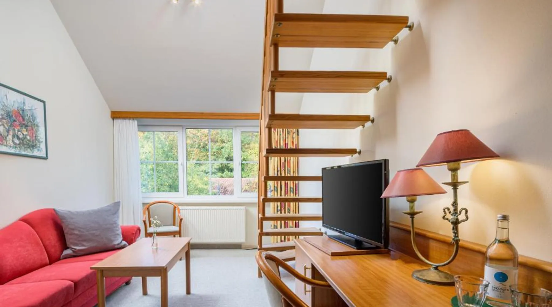 The hotel and its guesthouse can be found in the middle of the beautiful landscape of Feldberg, surrounded by woodland areas and lakes. There are 7 conservation areas nearby, and the hotel sits right on the banks of the lakes of Luzin. For a relaxing and unforgettable vacation, we have a beautiful and sunny terrace right on the lake and also a cozy sauna and bath house offering direct access to the lake. Room features satellite TV, a desk, and a private bathroom. Located 328 feet from the main building this room includes a breakfast buffet and a flat-screen TV.