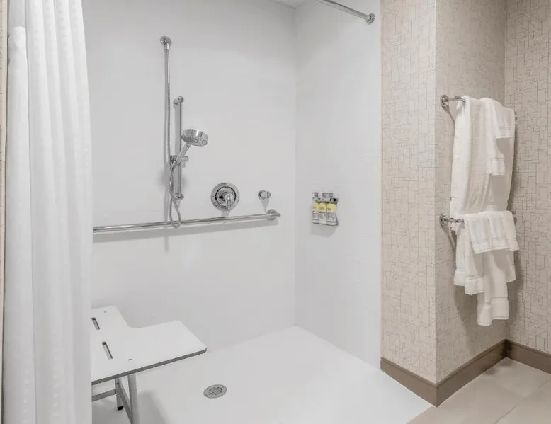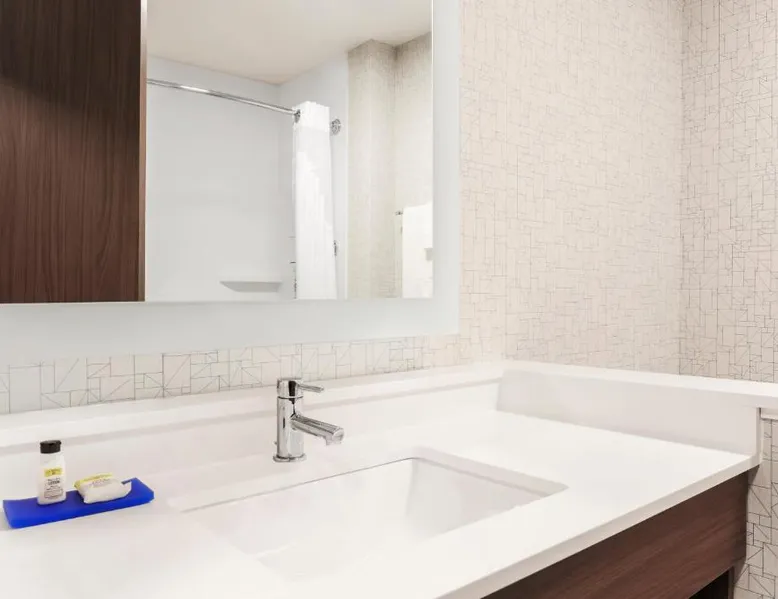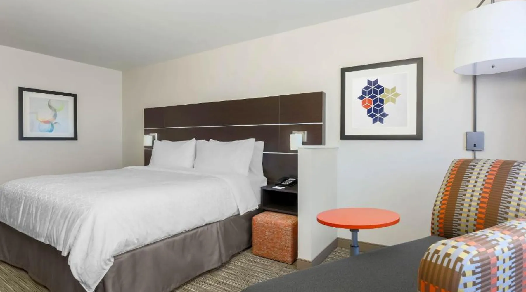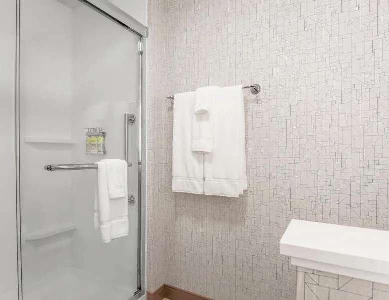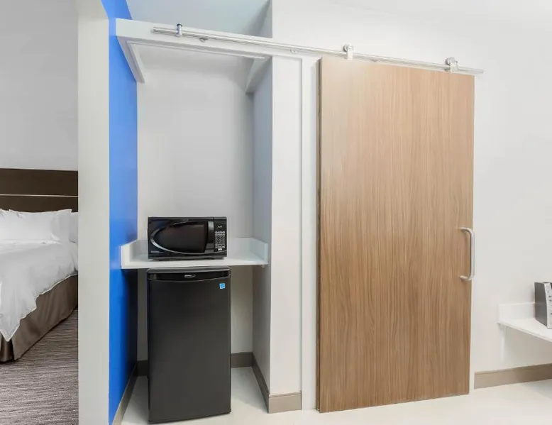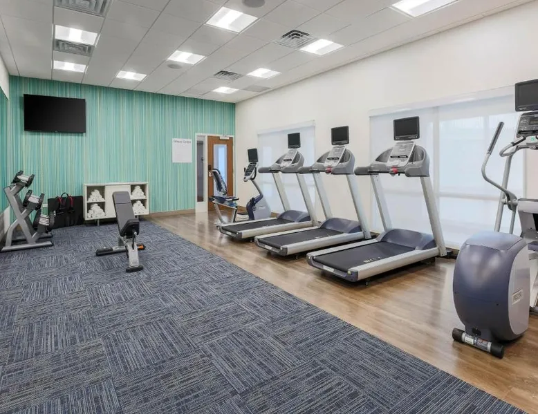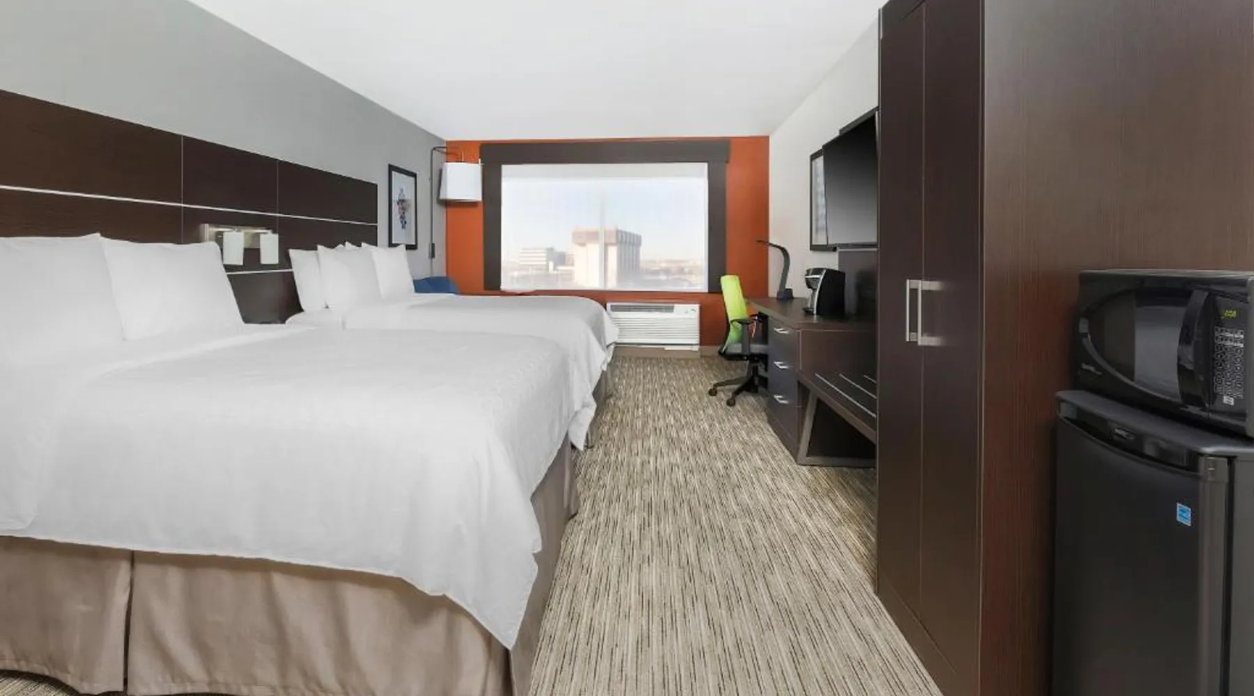 Comfortable Accommodations: Holiday Inn Express & Suites Chicago O'Hare Airport by IHG in Des Plaines offers air-conditioned rooms with private bathrooms, free WiFi, and modern amenities. Each room includes a work desk, TV, and complimentary toiletries. Leisure Facilities: Guests can enjoy a fitness center, indoor swimming pool, and a lounge. Additional facilities include a minimarket, business area, and 24-hour front desk. Dining Options: A continental buffet breakfast is served daily, featuring fresh pastries, cheese, fruits, and juice. Convenient Location: Located a few steps from Chicago O'Hare International Airport, the hotel is near attractions such as Loyola University Chicago (12 mi) and Wrigley Field (14 mi). Guests appreciate the connectivity and room cleanliness. The spacious double room provides air conditioning, a wardrobe, as well as a private bathroom featuring a shower and a hairdryer. The double room offers a safe deposit box, a tiled floor, a carpeted floor, heating and a flat-screen TV with cable channels. The unit offers 1 bed.