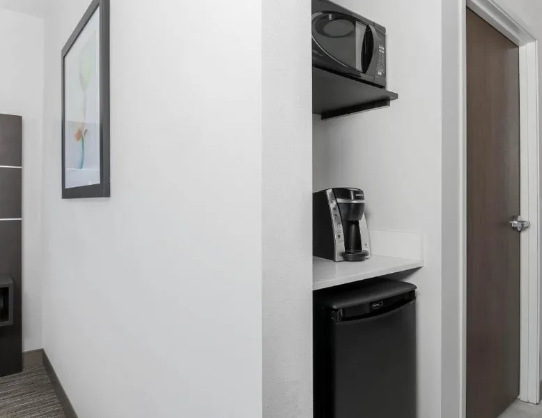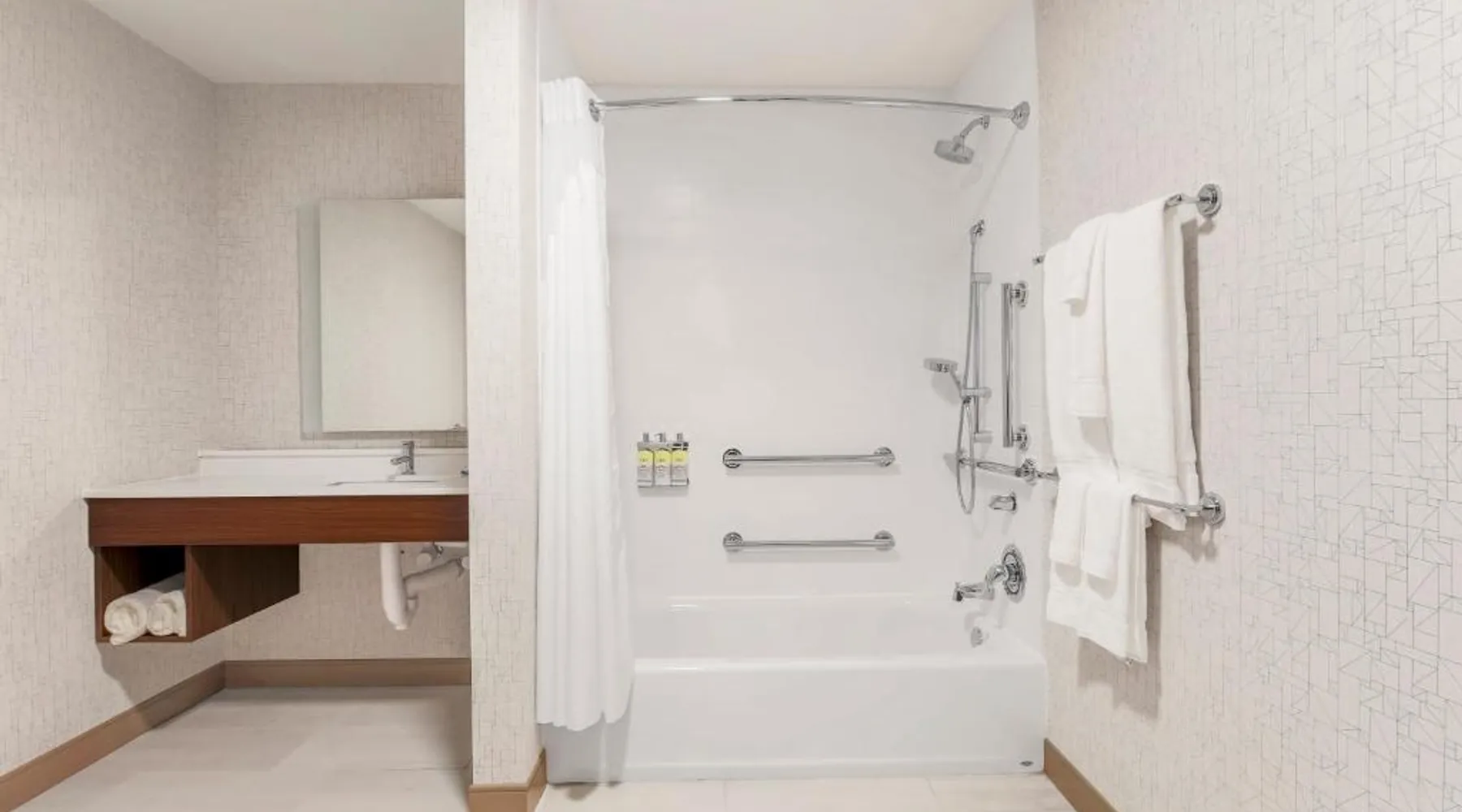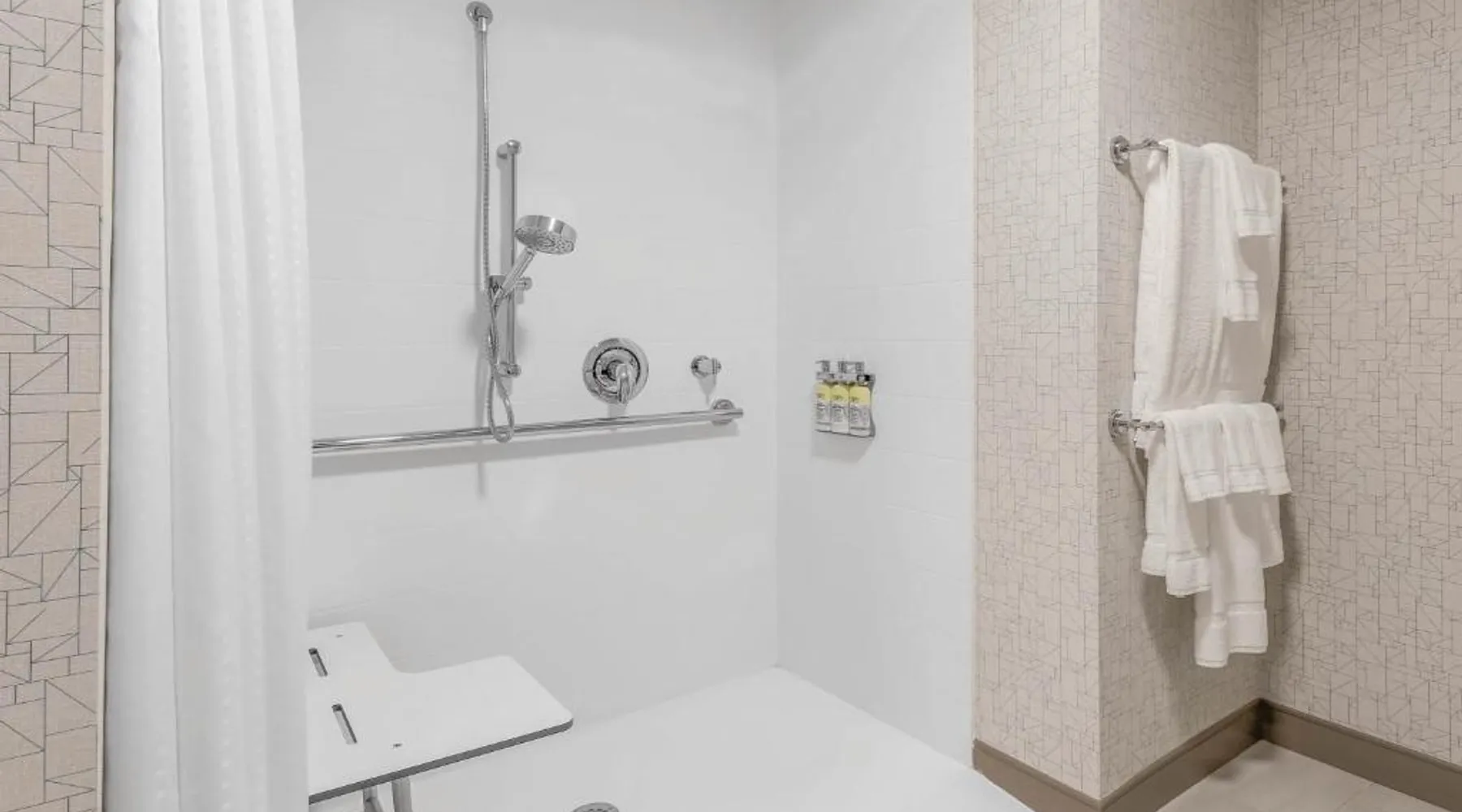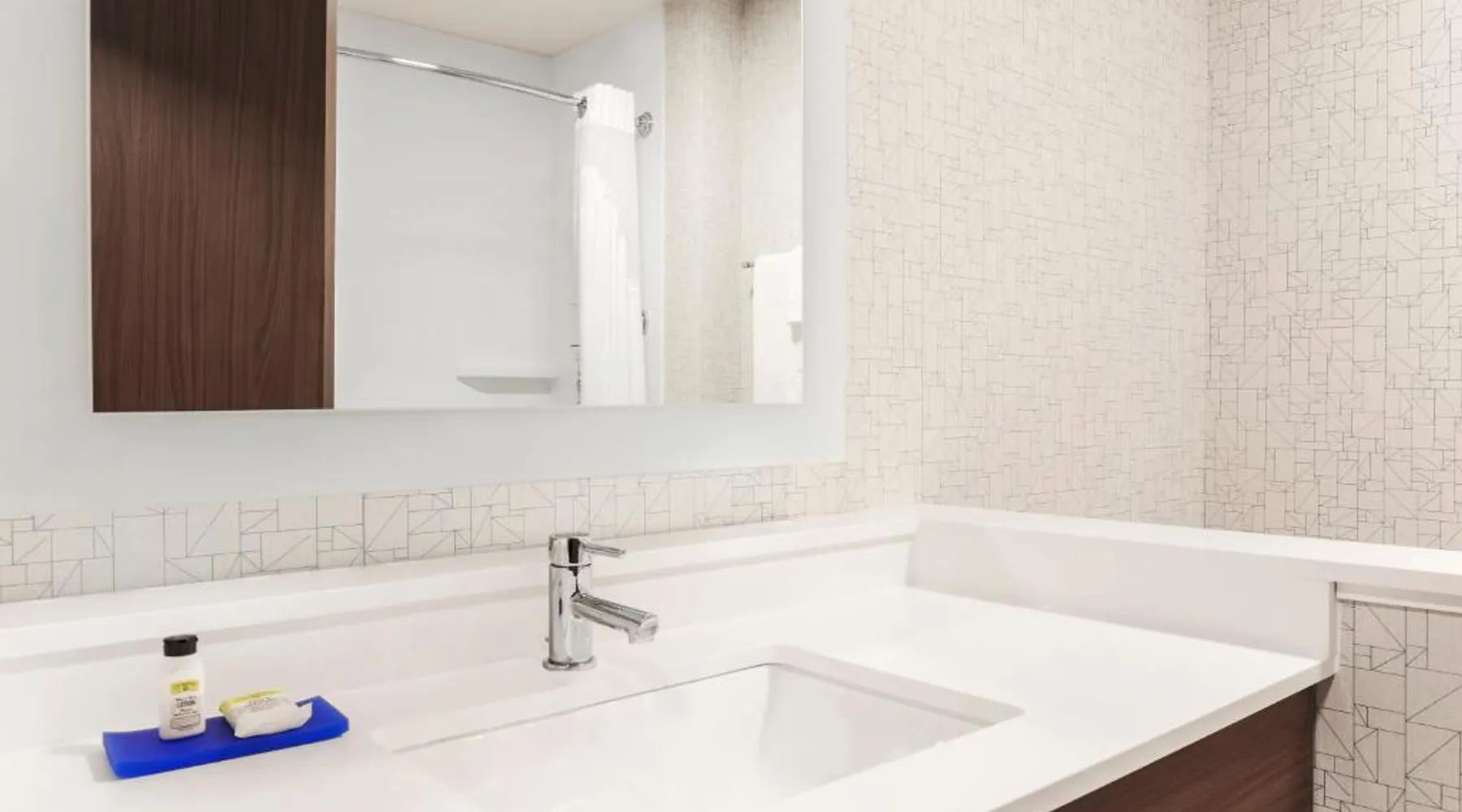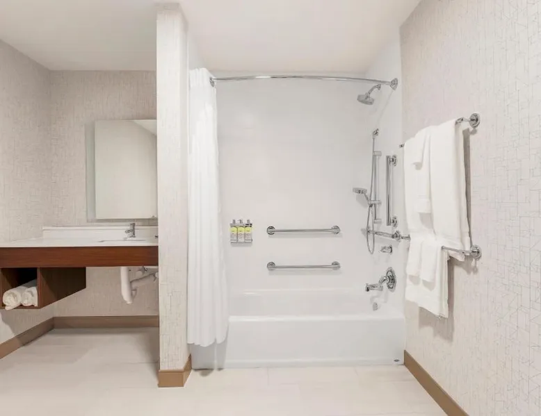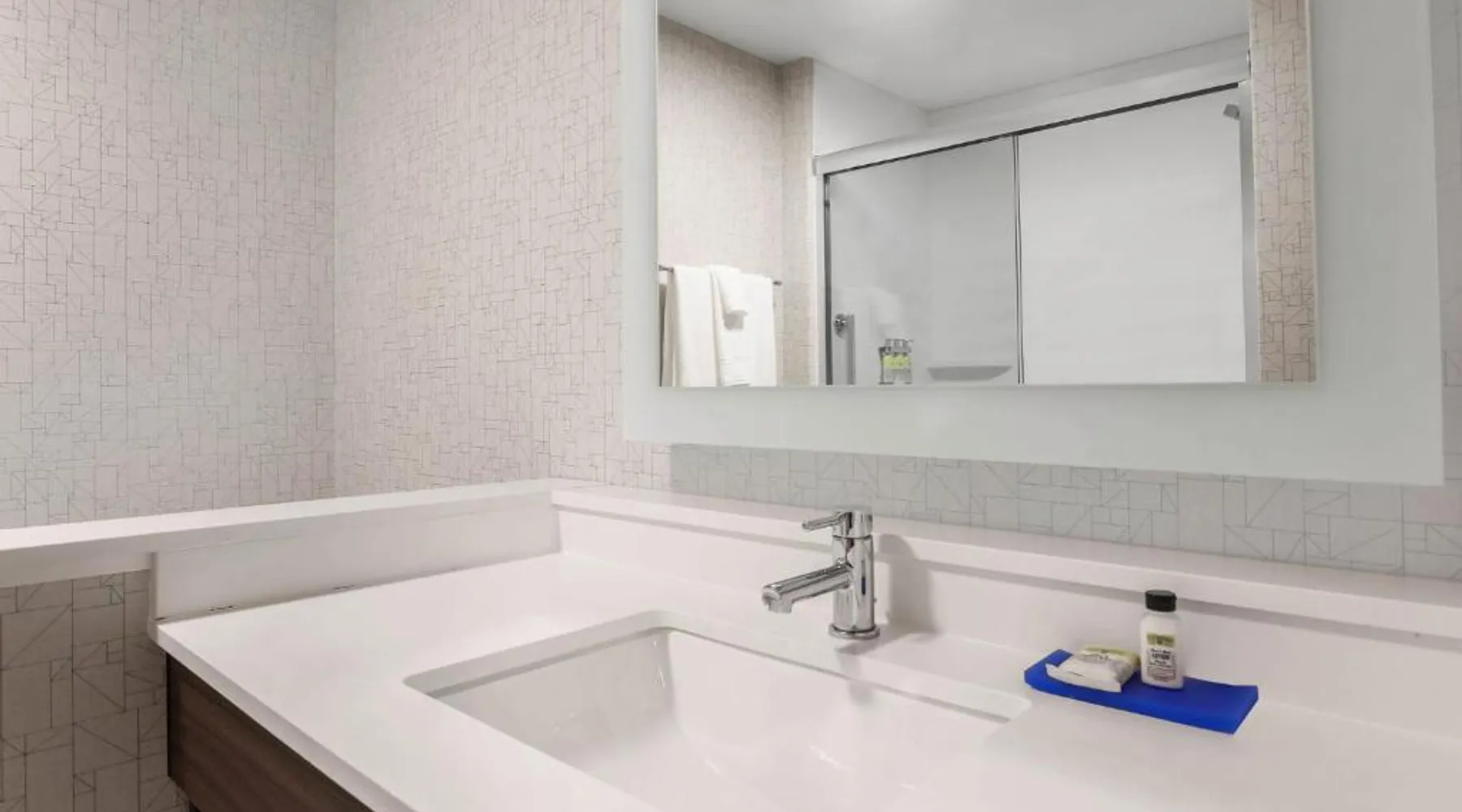 Comfortable Accommodations: Holiday Inn Express & Suites Chicago O'Hare Airport by IHG in Des Plaines offers air-conditioned rooms with private bathrooms, free WiFi, and modern amenities. Each room includes a work desk, TV, and complimentary toiletries. Leisure Facilities: Guests can enjoy a fitness center, indoor swimming pool, and a lounge. Additional facilities include a minimarket, business area, and 24-hour front desk. Dining Options: A continental buffet breakfast is served daily, featuring fresh pastries, cheese, fruits, and juice. Convenient Location: Located a few steps from Chicago O'Hare International Airport, the hotel is near attractions such as Loyola University Chicago (12 mi) and Wrigley Field (14 mi). Guests appreciate the connectivity and room cleanliness. The spacious double room provides air conditioning, a wardrobe, as well as a private bathroom featuring a shower and a hairdryer. The double room offers a safe deposit box, a tiled floor, a carpeted floor, heating and a flat-screen TV with cable channels. The unit offers 1 bed.