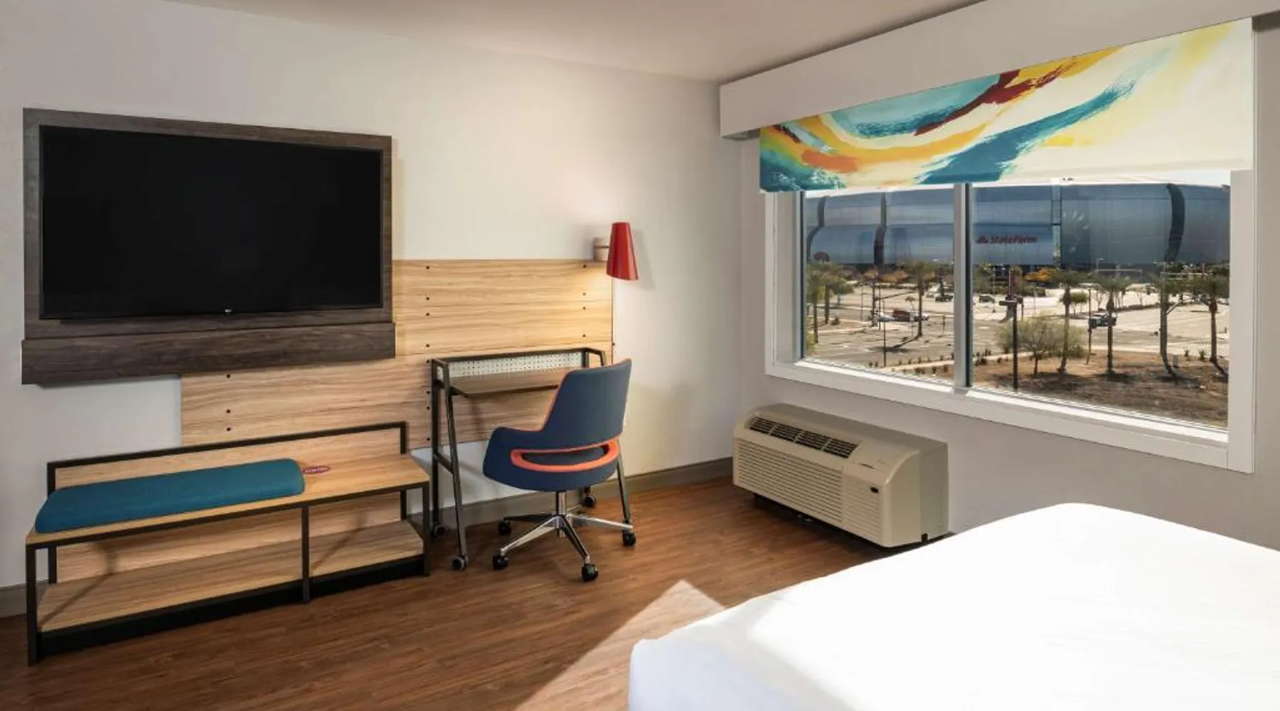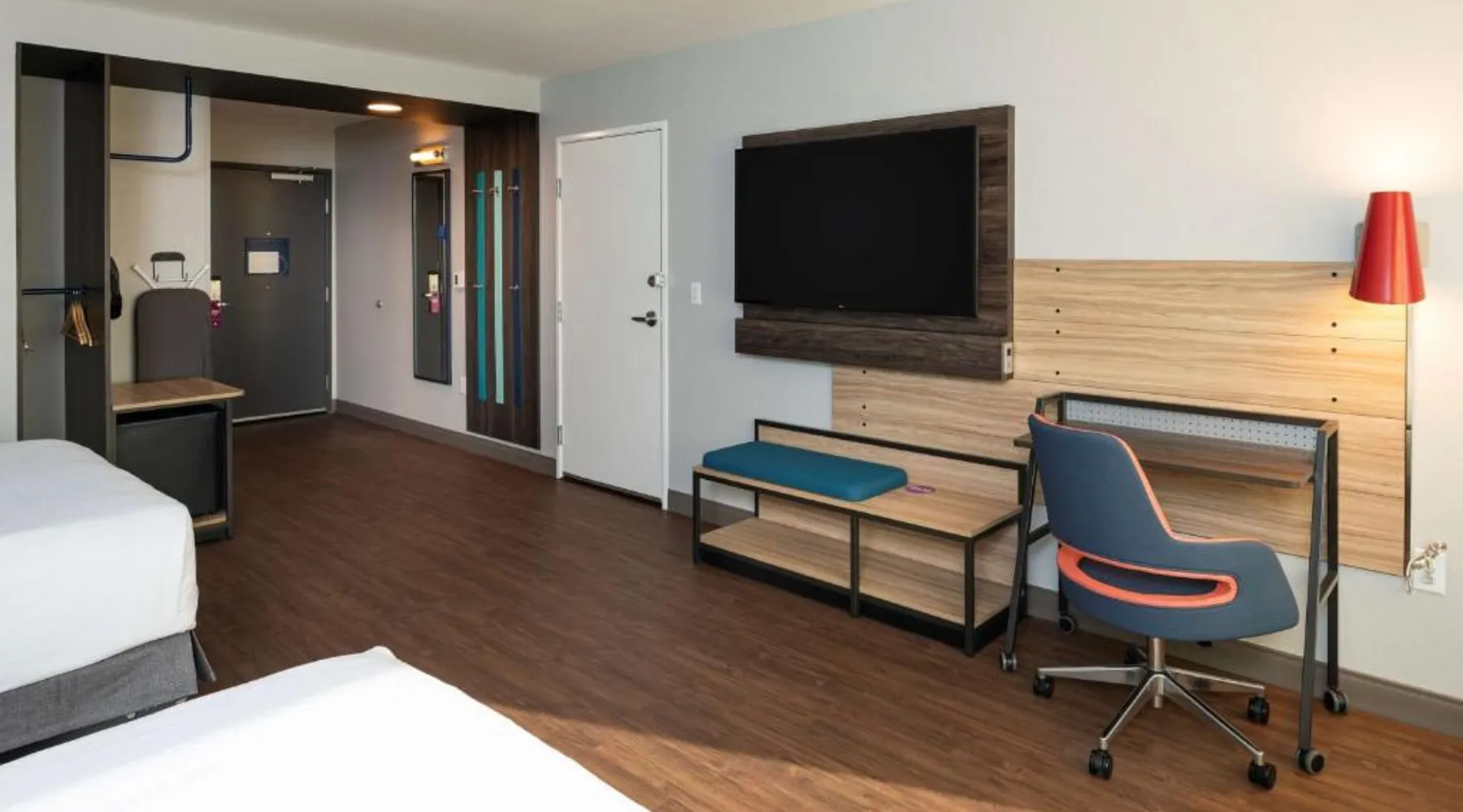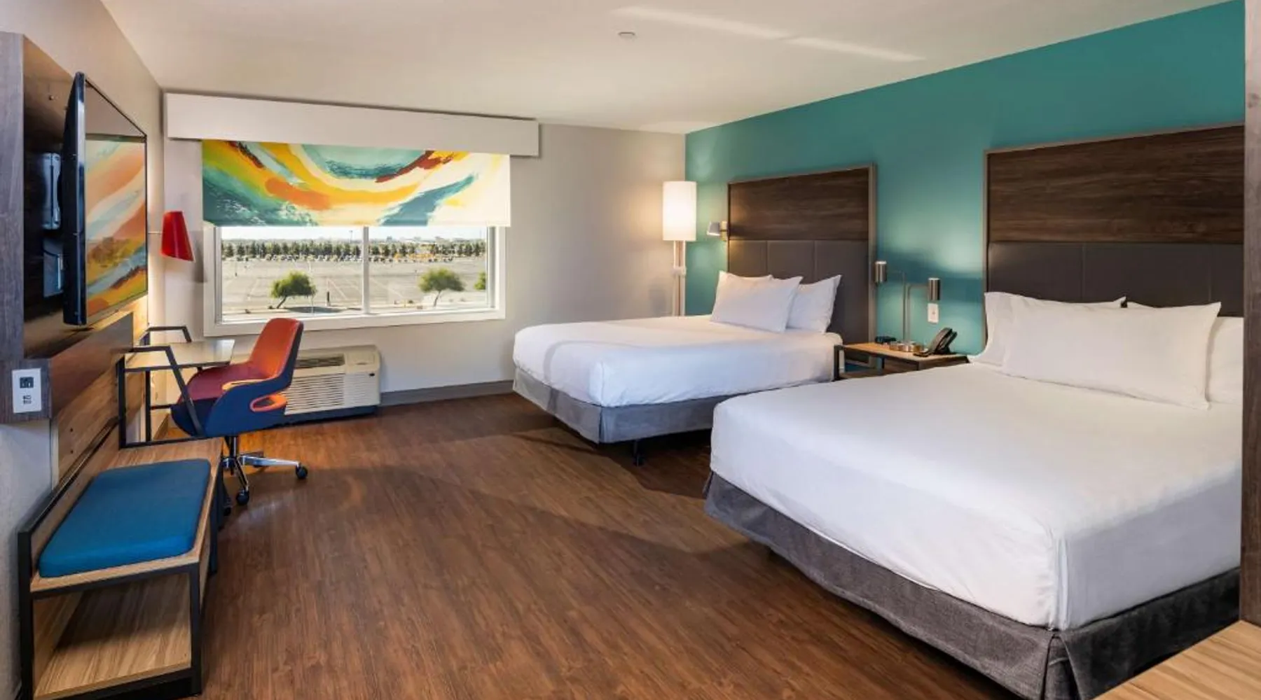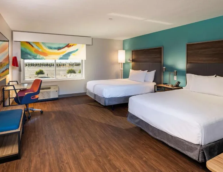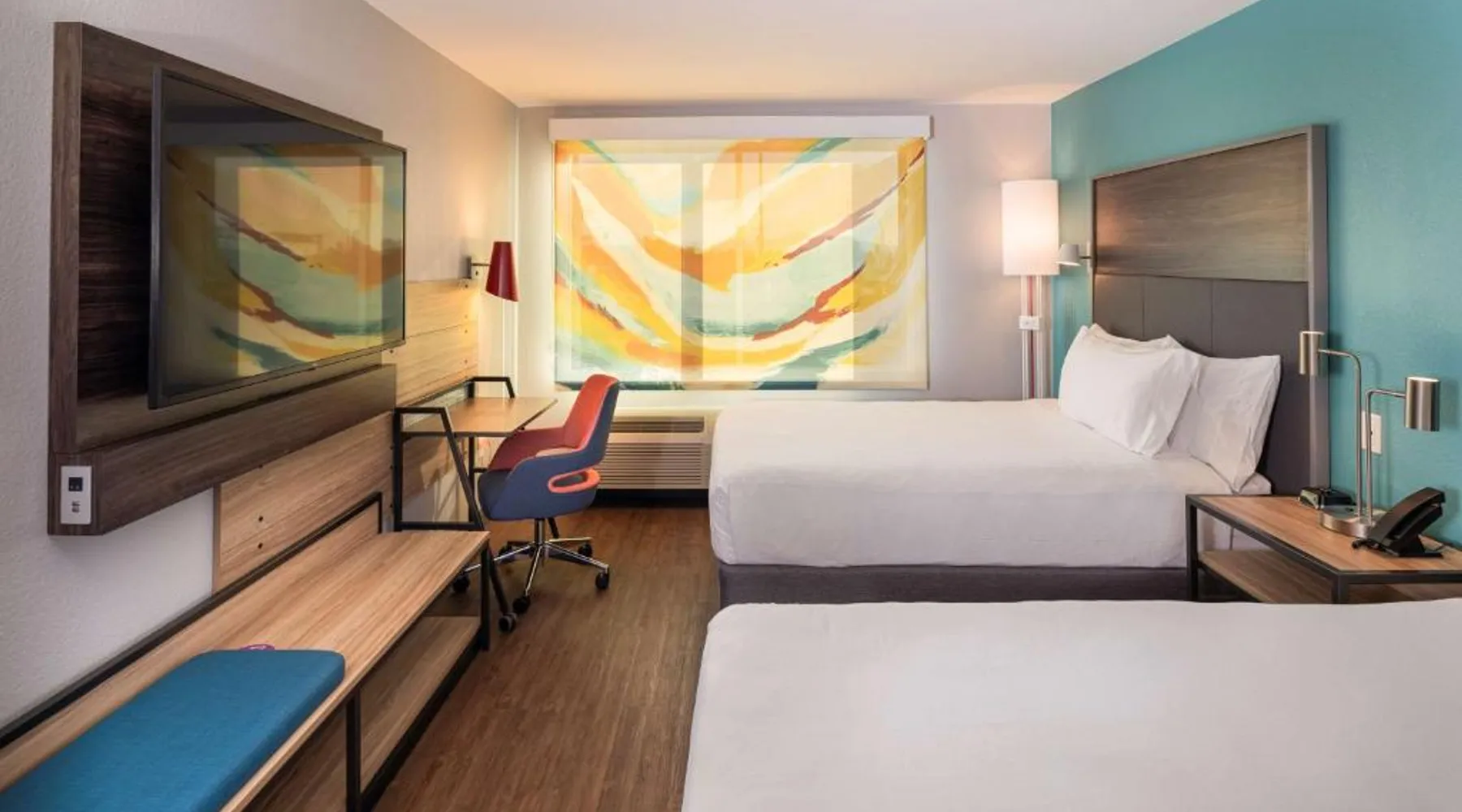 Comfortable Accommodations: Tru By Hilton Phenix Glendale Westgate in Glendale offers family rooms with air-conditioning, private bathrooms, and free WiFi. Each room includes a refrigerator, TV, and free toiletries. Leisure Facilities: Guests can enjoy a fitness center, year-round outdoor swimming pool, and outdoor seating area. Additional amenities include a lounge, games room, and child-friendly buffet. Convenient Location: Located 20 mi from Phenix Sky Harbor International Airport, the hotel is a 9-minute walk from State Farm Stadium. Nearby attractions include Castles and Coasters (11 mi) and Phenix Art Museum (17 mi). Guest Services: The hotel provides a 24-hour front desk, daily housekeeping, laundry service, and paid on-site private parking. Guests appreciate the convenient location, room cleanliness, and attentive staff. This air-conditioned quadruple room is consisted of of a flat-screen TV with cable channels and a private bathroom. The unit has 2 beds.
