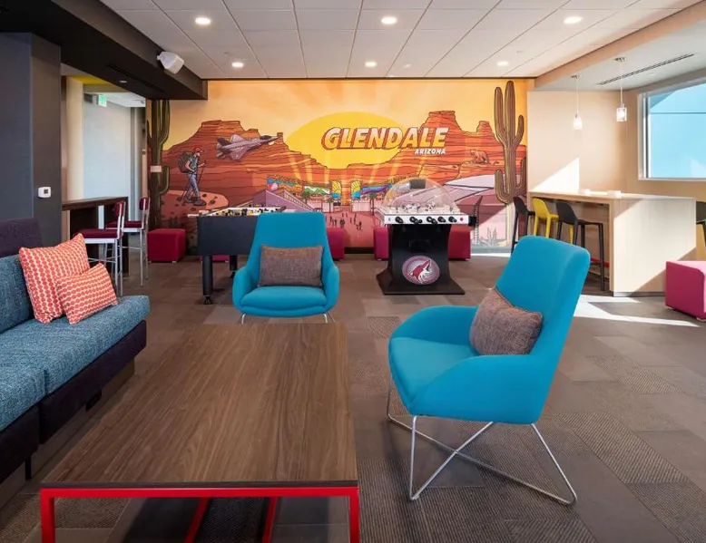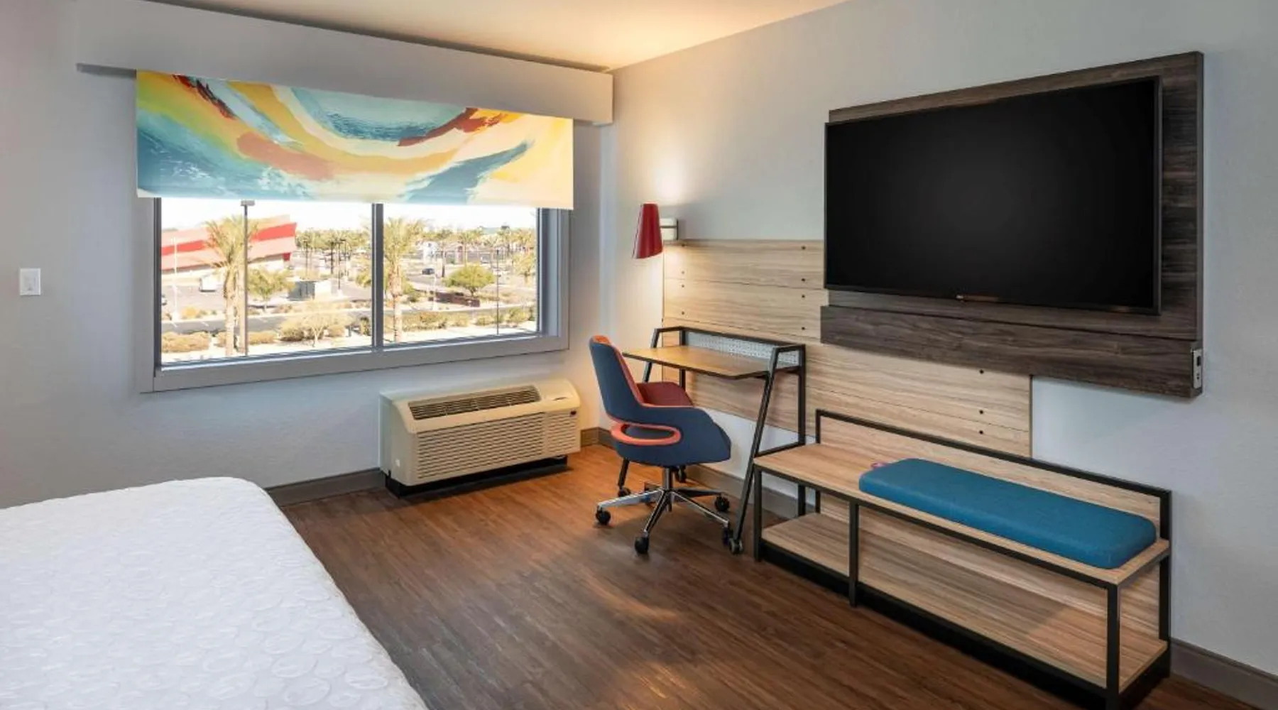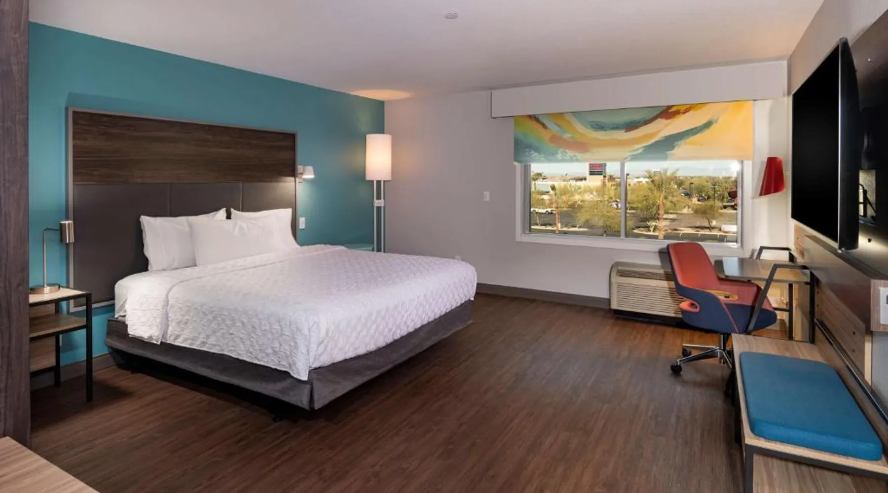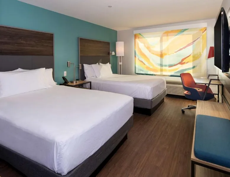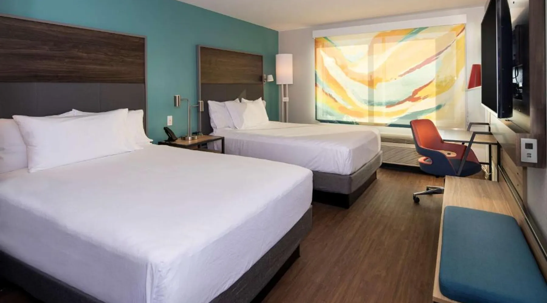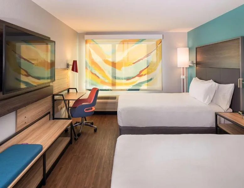 Comfortable Accommodations: Tru By Hilton Phenix Glendale Westgate in Glendale offers family rooms with air-conditioning, private bathrooms, and free WiFi. Each room includes a refrigerator, TV, and free toiletries. Leisure Facilities: Guests can enjoy a fitness center, year-round outdoor swimming pool, and outdoor seating area. Additional amenities include a lounge, games room, and child-friendly buffet. Convenient Location: Located 20 mi from Phenix Sky Harbor International Airport, the hotel is a 9-minute walk from State Farm Stadium. Nearby attractions include Castles and Coasters (11 mi) and Phenix Art Museum (17 mi). Guest Services: The hotel provides a 24-hour front desk, daily housekeeping, laundry service, and paid on-site private parking. Guests appreciate the convenient location, room cleanliness, and attentive staff. This air-conditioned quadruple room is consisted of of a flat-screen TV with cable channels and a private bathroom. The unit has 2 beds.