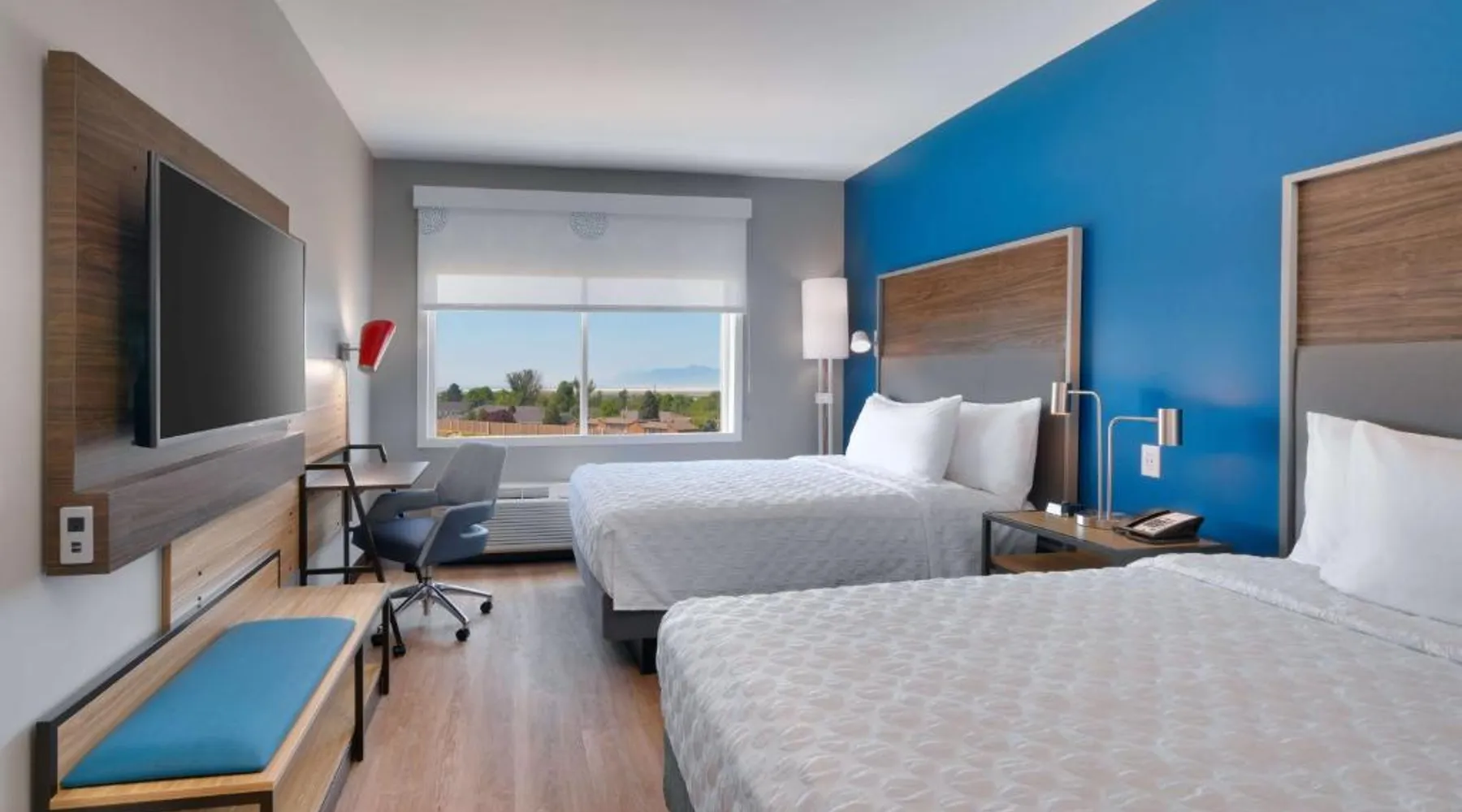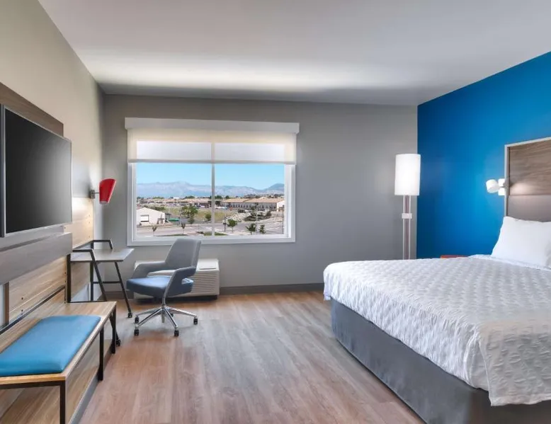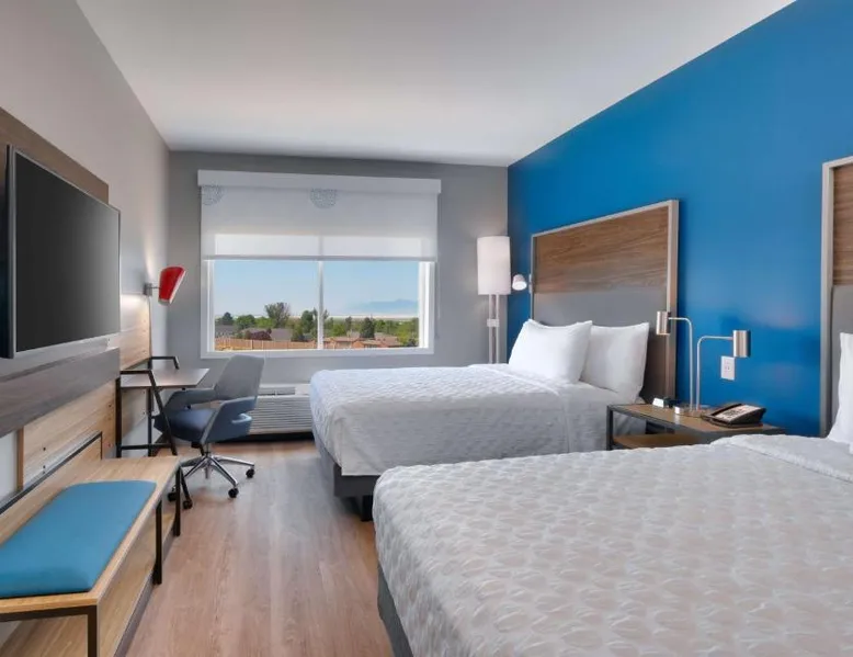 Comfortable Accommodations: Tru By Hilton Clearfield Hill Air Force Base in Clearfield offers air-conditioned rooms with private bathrooms, free WiFi, and modern amenities. Each room includes a work desk, TV, and free toiletries. Facilities and Services: Guests can enjoy a fitness center, elevator, 24-hour front desk, minimarket, child-friendly buffet, electric vehicle charging station, business area, outdoor seating area, games room, and luggage storage. Free on-site private parking is available. Dining and Breakfast: The hotel provides an American buffet breakfast, highly praised by guests for its quality and variety. Additional amenities include streaming services and outdoor furniture. Location and Attractions: Located 5 mi from Ogden-Hinckley Airport, the property is near attractions such as Davis Conference Center (4.3 mi) and Temple Square (29 mi). Highly rated for its breakfast, room cleanliness, and attentive staff. This air-conditioned quadruple room is consisted of of a flat-screen TV with streaming services, a private bathroom as well as outdoor furniture. The unit has 2 beds.