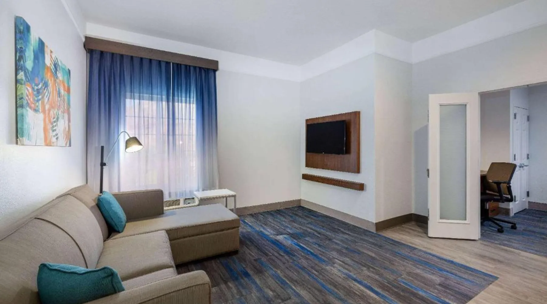 Offering a year-round outdoor pool and hot tub, La Quinta Inn & Suites Saint George is located in St. George, 5.6 mi from Dixie State University. Every room at this hotel is air conditioned and is equipped with a flat-screen TV with cable channels. Certain rooms feature a seating area where you can relax. The rooms come with a private bathroom. For your comfort, you will find free toiletries and a hairdryer. La Quinta Saint George features free WiFi throughout the property. There is a 24-hour front desk at the property. Snow Canyon State Park is 20 minutes's drive from La Quinta Inn and Suites Saint George. The Saint George Dinosaur Discovery Site at Johnson Farm is 15 minutes' drive from the hotel. This spacious suite comes with 1 living room, 1 separate bedroom and 1 bathroom with a bath and free toiletries. The suite's kitchenette is available for cooking and storing food. This suite is air-conditioned and has a flat-screen TV with cable channels, a tea and coffee maker, a seating area and heating. The unit has 2 beds.