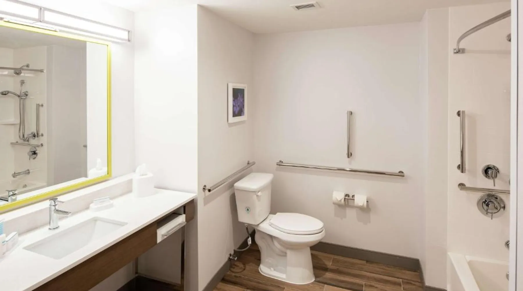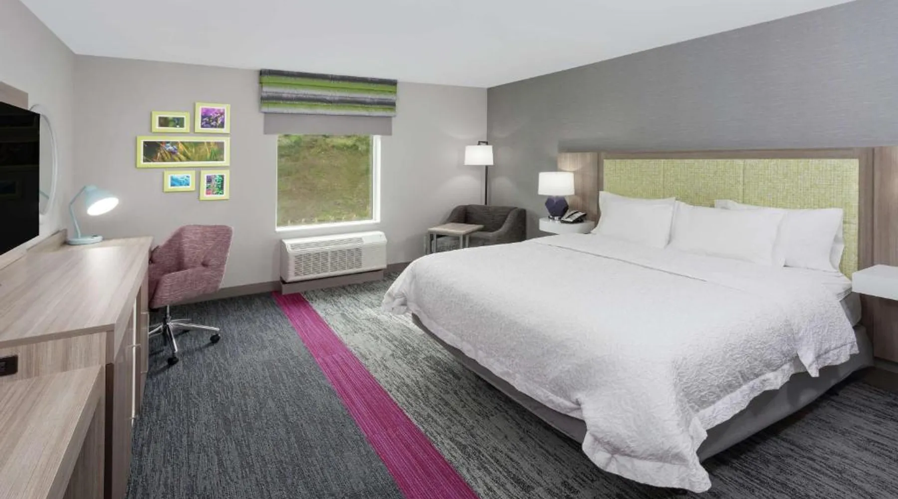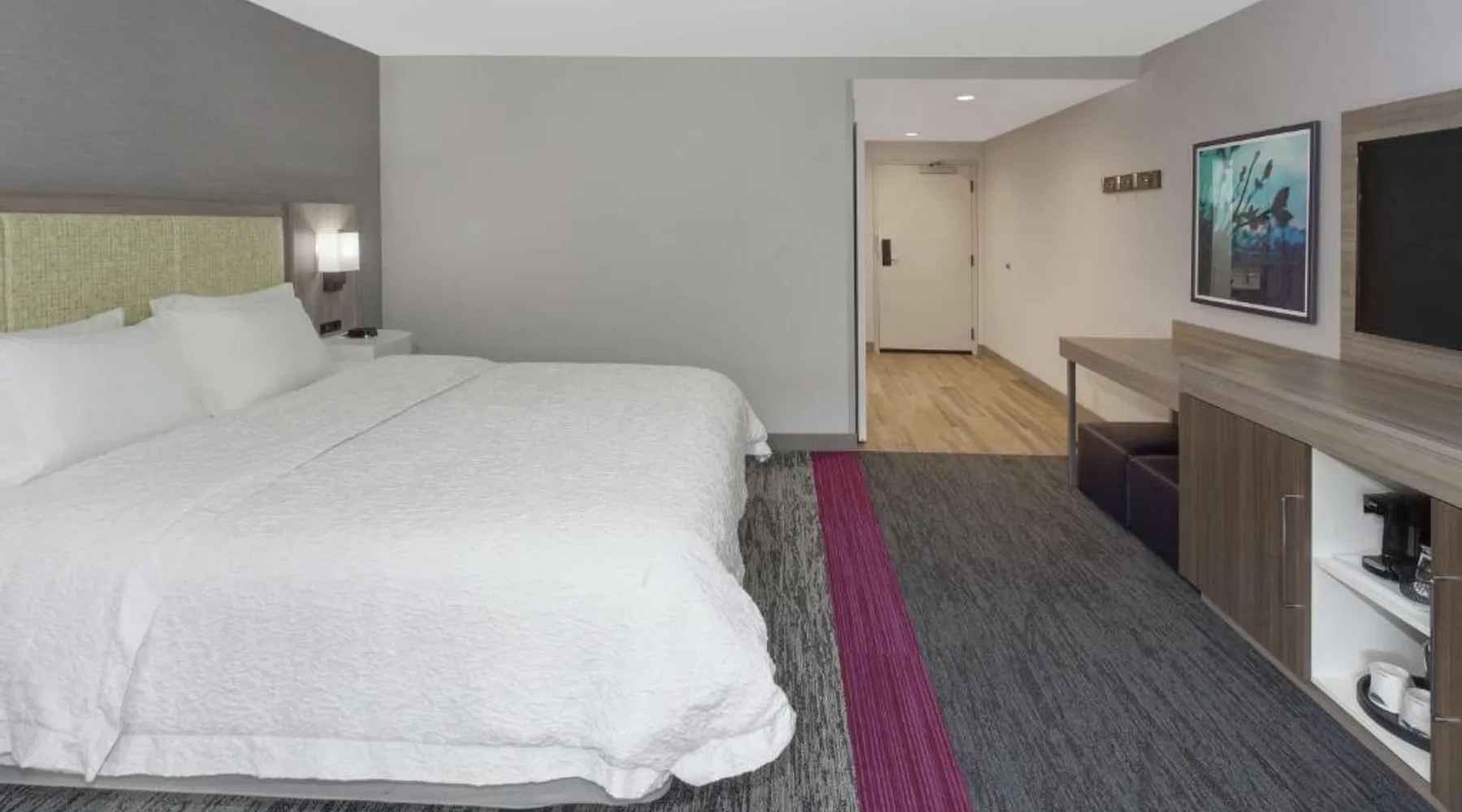 Comfortable Accommodations: Hampton Inn & Suites Rocky Hill - Hartford South in Rocky Hill offers rooms with free WiFi, air-conditioning, and modern amenities. Guests appreciate the room cleanliness and bathroom comfort. Leisure Facilities: The hotel features a saltwater swimming pool, indoor pool, sun terrace, and fitness center. Additional amenities include a lounge, outdoor fireplace, and electric vehicle charging station. Dining Options: A continental buffet breakfast is served daily, including warm dishes, fresh pastries, fruits, and juices. The on-site minimarket provides convenience for guests. Location and Attractions: Located 23 mi from Bradley International Airport, the hotel is near Old Wethersfield (5 mi) and Wilcox Park (5.6 mi). Other attractions include Enoch Kelsey House and Connecticut Audubon Society. This double room offers a tea and coffee maker and a flat-screen TV. The unit offers 1 bed.