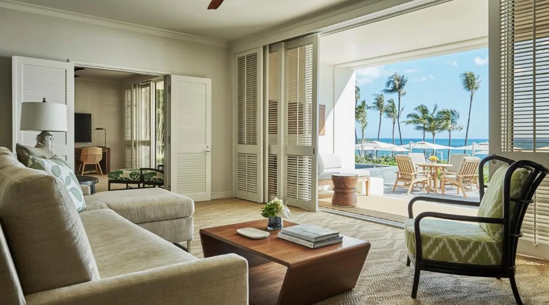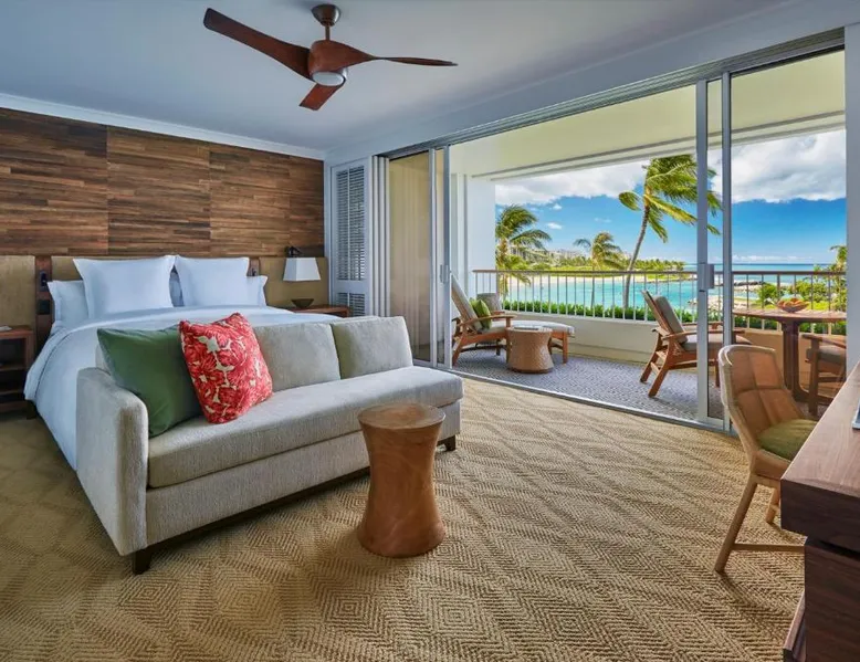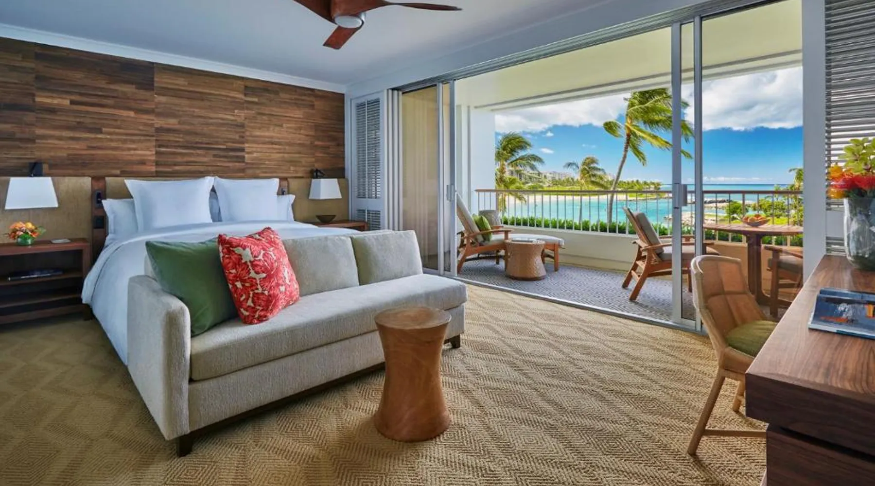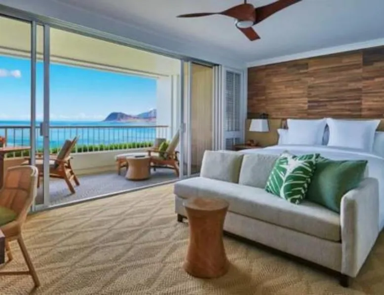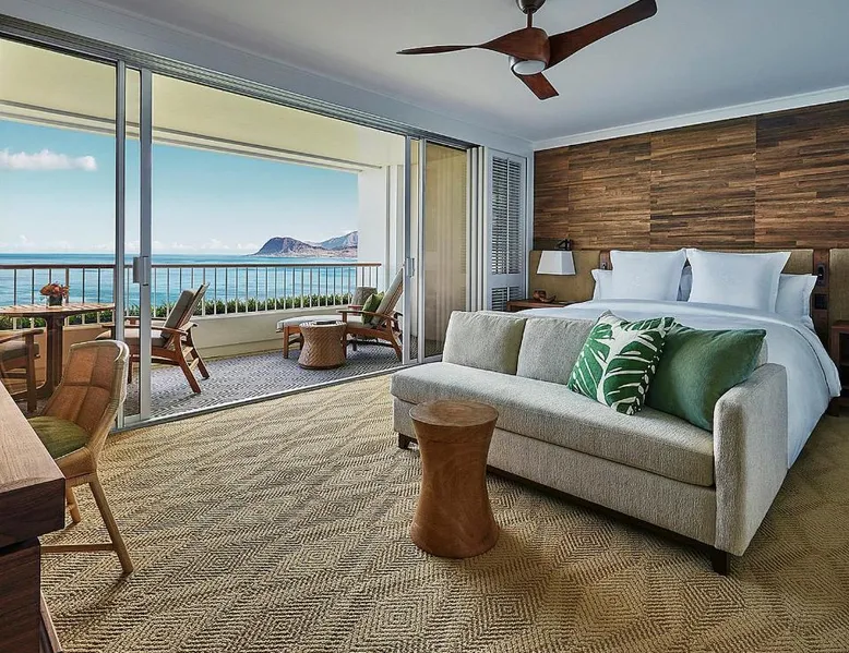 Located on Oahu’s sunny west coast, this Hawaiian luxury beach resort includes restaurants, bars, swimming pools and lagoons with water sports. Guests can enjoy a game of tennis or golf then relax in the on-site spa. Honolulu International Airport is less than 30 minutes’ drive away. Offering free WiFi, Four Seasons Resort Oahu at Ko Olina features guest rooms with a 65-inch flat-screen HDTV. All rooms include a Four Seasons Bed with your choice of plush, signature or firm mattress topper, twice daily housekeeping, a private balcony, a deep soaking tub and a walk-in glass shower. Guests can enjoy 24-hour in-room dining at Four Seasons Resort Oahu at Ko Olina. A fitness center is also available. Ko Olina Marina and Ko Olina Golf Club are just 5 minutes’ drive from Four Seasons Resort Oahu at Ko Olina. The Arizona and Battleship Missouri Memorial at Pearl Harbor are 27 minutes’ drive away from this resort. Featuring a balcony with oceanfront views and outdoor seating for two, this spacious suite offers a coffee machine, a mini-bar, an in-room safety deposit box, a flat-screen TV with cable channels, an alarm clock radio, bedside outlets, and an en suite marble bathroom with bathrobes, a hairdryer, a scale, and toiletries.