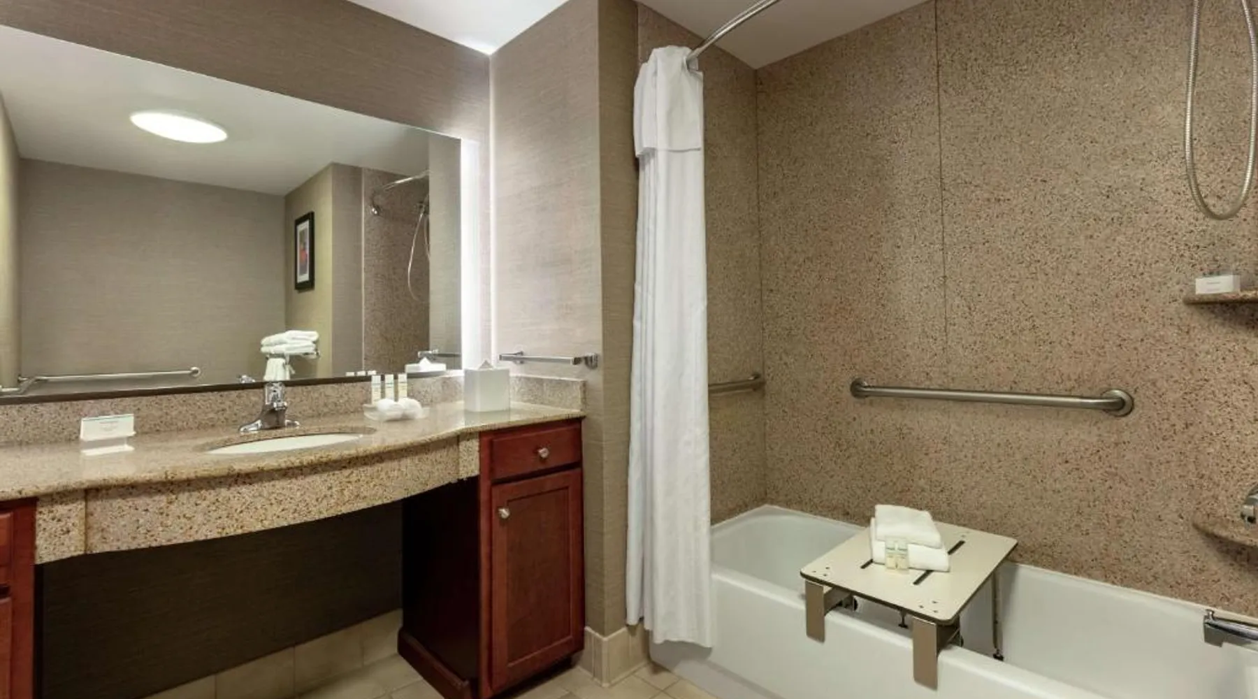 Comfortable Accommodations: Homewood Suites by Hilton Harrisburg East-Hershey Area in Harrisburg offers family rooms with air-conditioning, kitchen facilities, and free WiFi. Each room includes a sofa bed, work desk, and free toiletries. Exceptional Facilities: Guests can enjoy a fitness center, indoor swimming pool, and outdoor seating area. Additional amenities include a minimarket, daily housekeeping, and luggage storage. Free on-site parking is available. Delicious Breakfast: A complimentary American buffet breakfast is served each morning, featuring fresh pastries, fruits, and juices. The property staff provide excellent service and maintain high standards of room cleanliness. Prime Location: Located 4.3 mi from Harrisburg International Airport, the hotel is near attractions such as the National Civil War Museum (3.1 mi) and Pennsylvania State Capitol (4.3 mi). Free on-site parking and a 24-hour front desk enhance the stay. Features a separate bedroom.