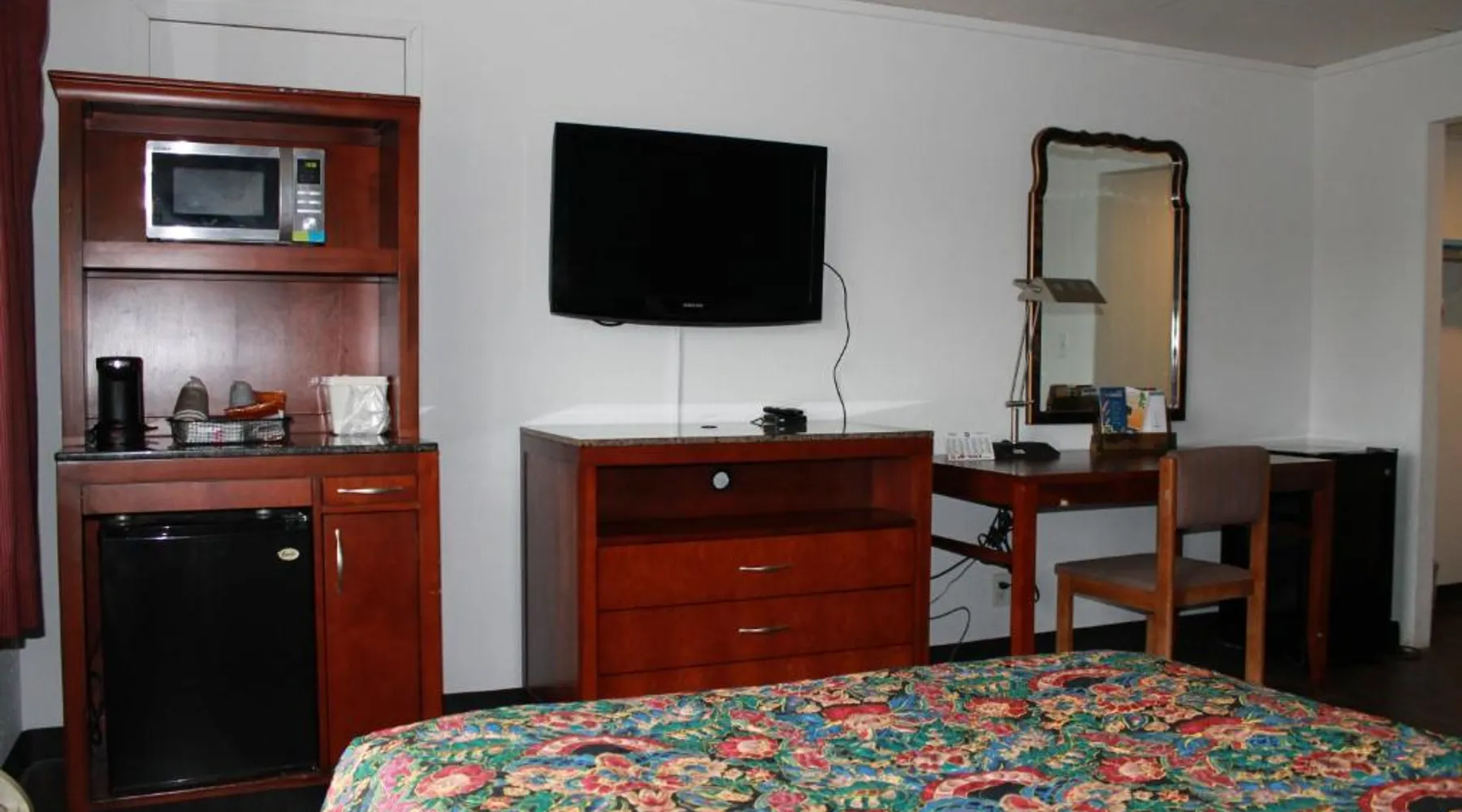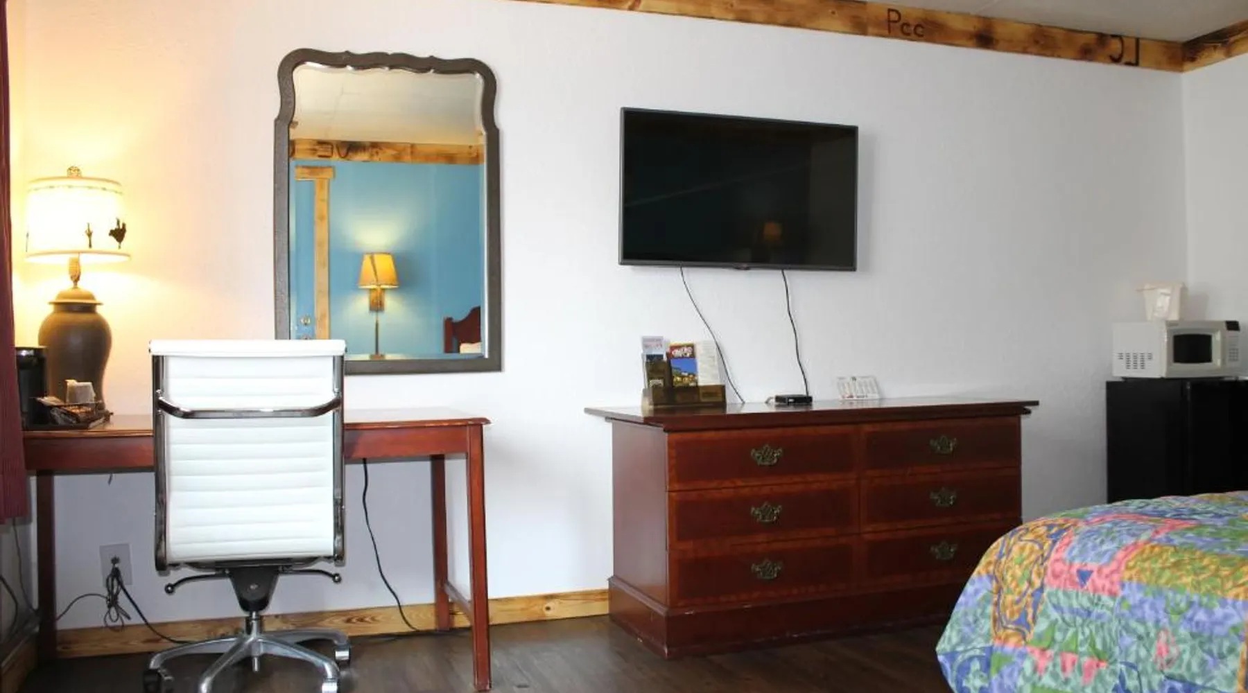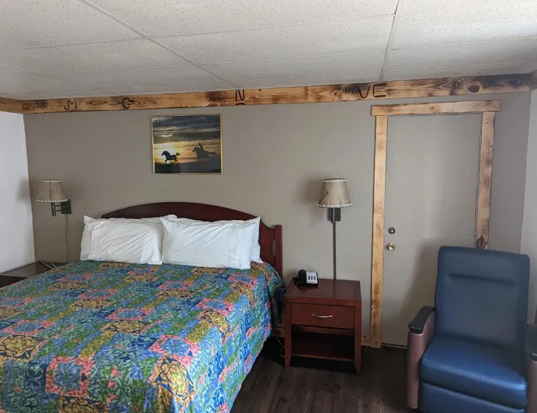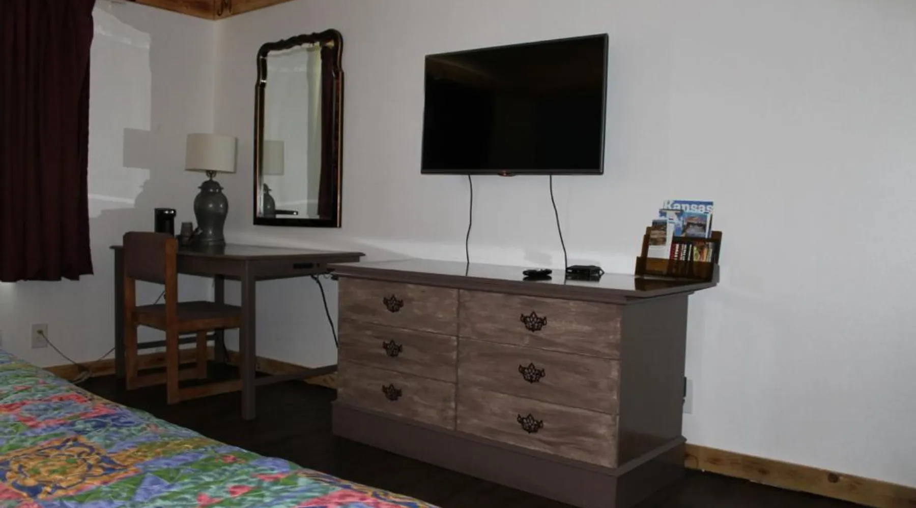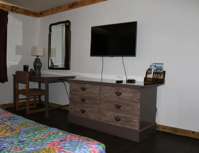 Comfortable Accommodations: Wyatt Earp Hotel in Dodge City offers air-conditioned rooms with private bathrooms, baths, hairdryers, refrigerators, work desks, free toiletries, microwaves, showers, and TVs. Essential Facilities: Guests enjoy free WiFi, a 24-hour front desk, housekeeping service, and free on-site private parking. Additional amenities include tea and coffee makers, coffee machines, carpeted floors, and interconnected rooms. Convenient Location: Located 5 mi from Dodge City Regional Airport, the hotel provides easy access to local attractions. Featuring free toiletries, this double room includes a private bathroom with a bath, a shower and a hairdryer. The double room features air conditioning, a carpeted floor, heating and a flat-screen TV with cable channels. The unit has 2 beds.