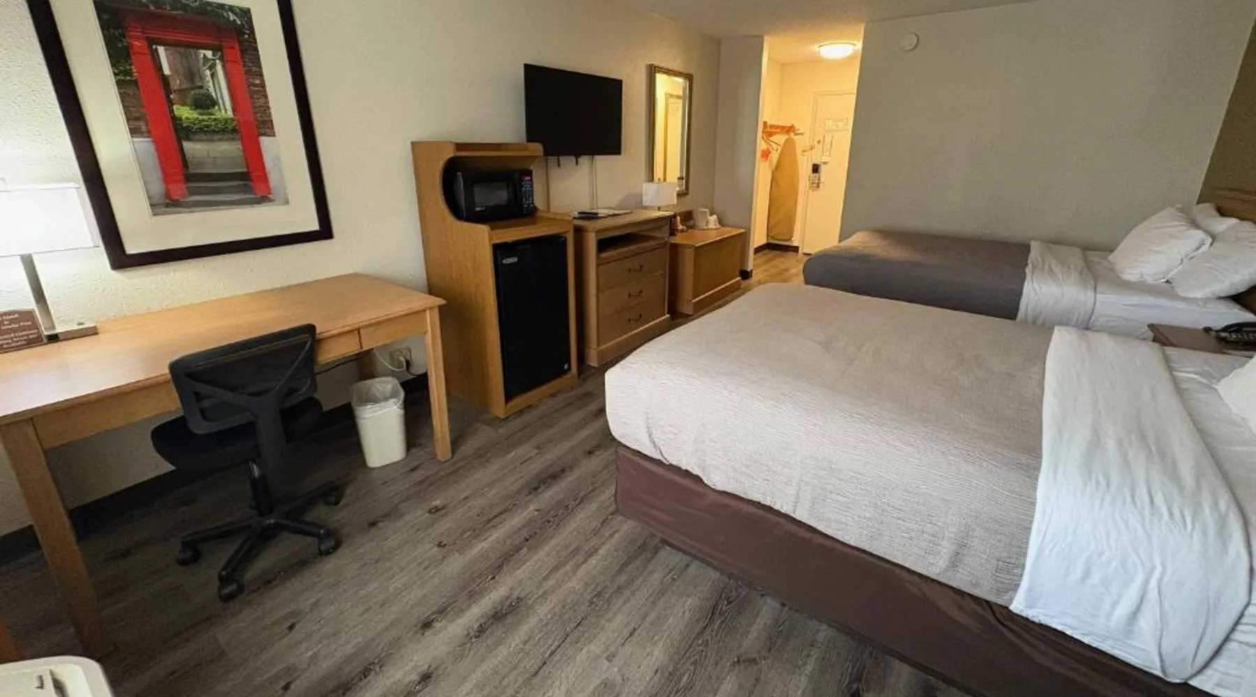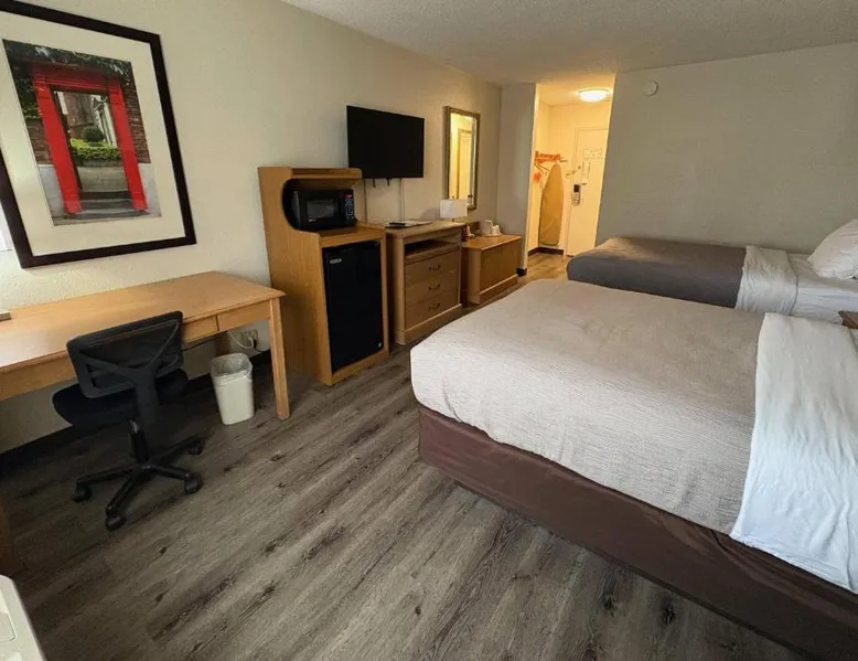 Comfortable Accommodations: Quality Inn Perrysburg - Toledo South in Perrysburg offers comfortable rooms with amenities such as tea and coffee makers, hairdryers, refrigerators, work desks, seating areas, and microwaves. Each room includes a bath for added convenience. Leisure Facilities: Guests can enjoy an indoor swimming pool, bar, and free WiFi. The property also features an outdoor seating area and picnic area, providing ample space for relaxation and socializing. Dining Options: A complimentary American buffet breakfast is served daily, catering to diverse preferences. The on-site bar offers a selection of beverages for guests to unwind. Convenient Location: Located 16 mi from Toledo Express Airport, the inn is near attractions like South Toledo Golf Club (7.5 mi), Fifth Third Field (9.3 mi), and Toledo Museum of Art (9.9 mi). Free on-site parking is available for guests. The family room is furnished with a desk and a seating area. The unit has 2 beds.