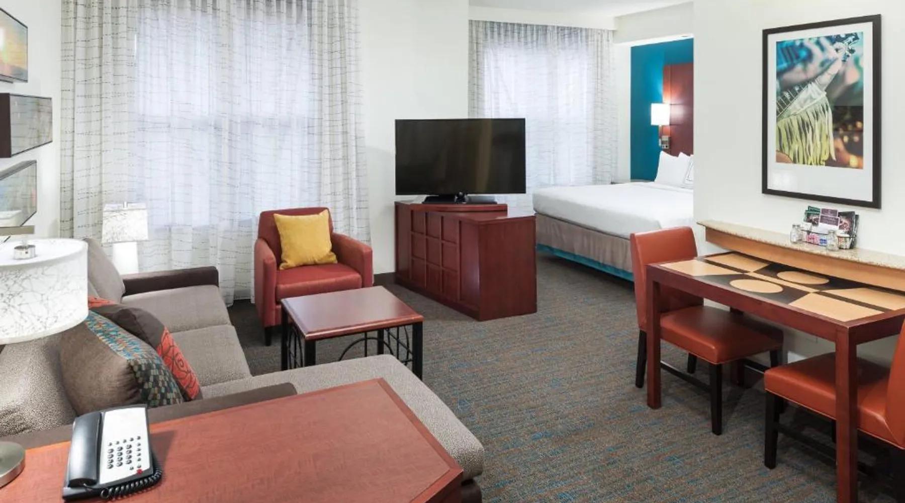Comfortable Accommodations: Residence Inn by Marriott Franklin Cool Springs in Franklin offers air-conditioned rooms with kitchenettes, private bathrooms, and free WiFi. Each room includes a work desk, sofa bed, and dining area. Exceptional Facilities: Guests can enjoy a fitness center, indoor swimming pool, terrace, and free bicycles. Additional amenities include a hot tub, lounge, and outdoor seating area. Convenient Location: Located 16 mi from Nashville International Airport, the hotel is close to attractions such as Bridgestone Arena (17 mi) and The Hermitage (28 mi). Free on-site parking is available. Guest Satisfaction: Highly rated by guests, the hotel provides an American buffet breakfast, 24-hour front desk, and express check-in and check-out services. Features a separate living room.