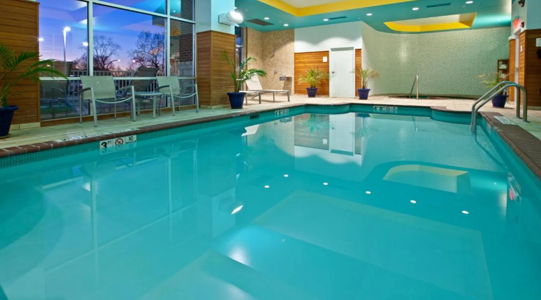Comfortable Accommodations: Hotel Indigo Columbus Architectural Center by IHG in Columbus offers air-conditioned rooms with private bathrooms, tea and coffee makers, and free toiletries. Each room includes a work desk, seating area, and parquet floors. Dining and Leisure: Guests can enjoy a modern restaurant serving American cuisine with vegetarian and gluten-free options. The on-site bar offers cocktails, while the indoor swimming pool and fitness center provide leisure activities. Convenient Location: Located 50 mi from Indianapolis International Airport, the hotel is highly rated for its convenient location and excellent staff support. Free on-site parking and a paid shuttle service enhance guest convenience. This room features a balcony with patio furniture and views of the city.