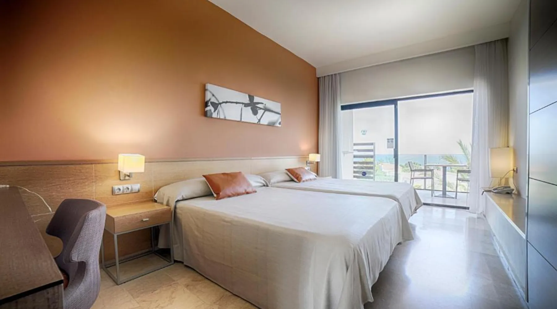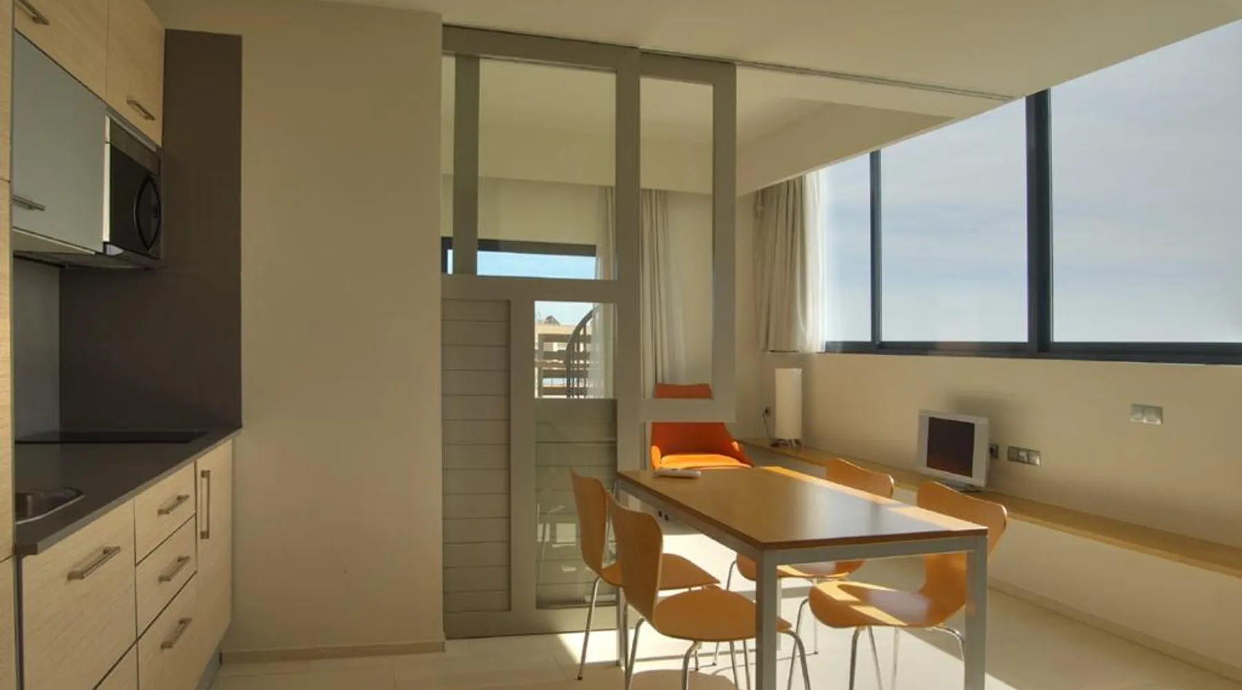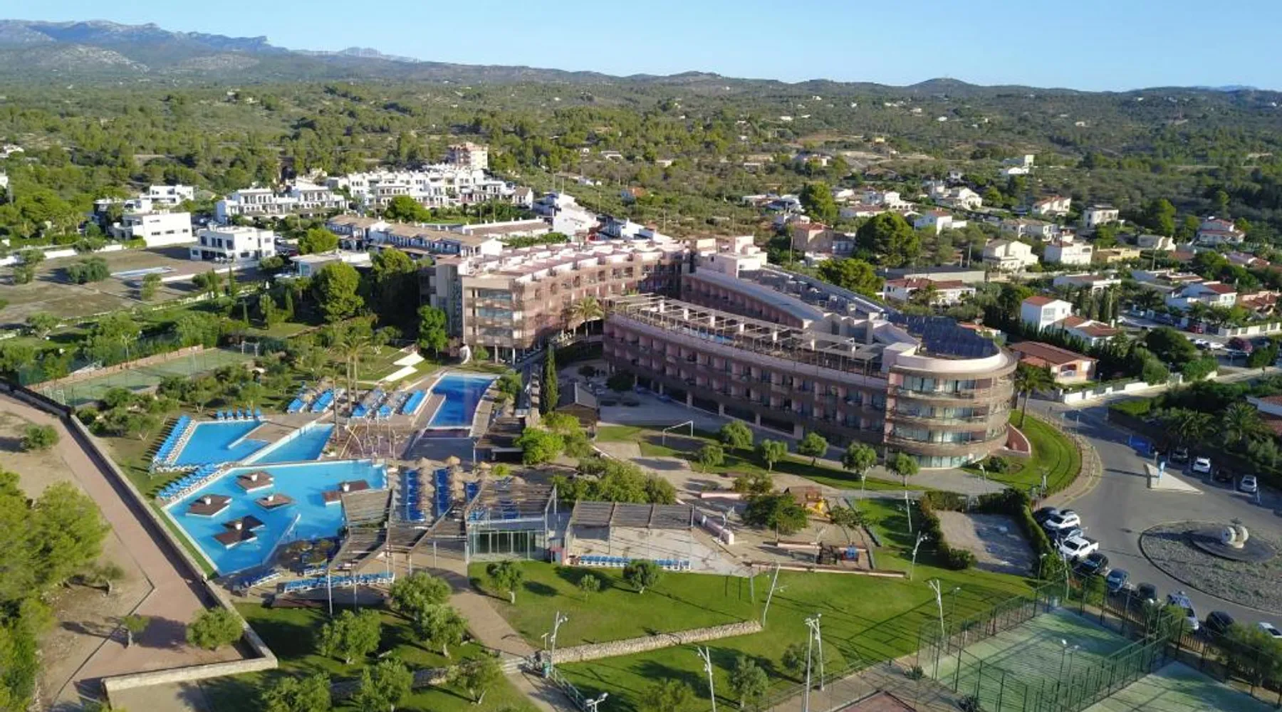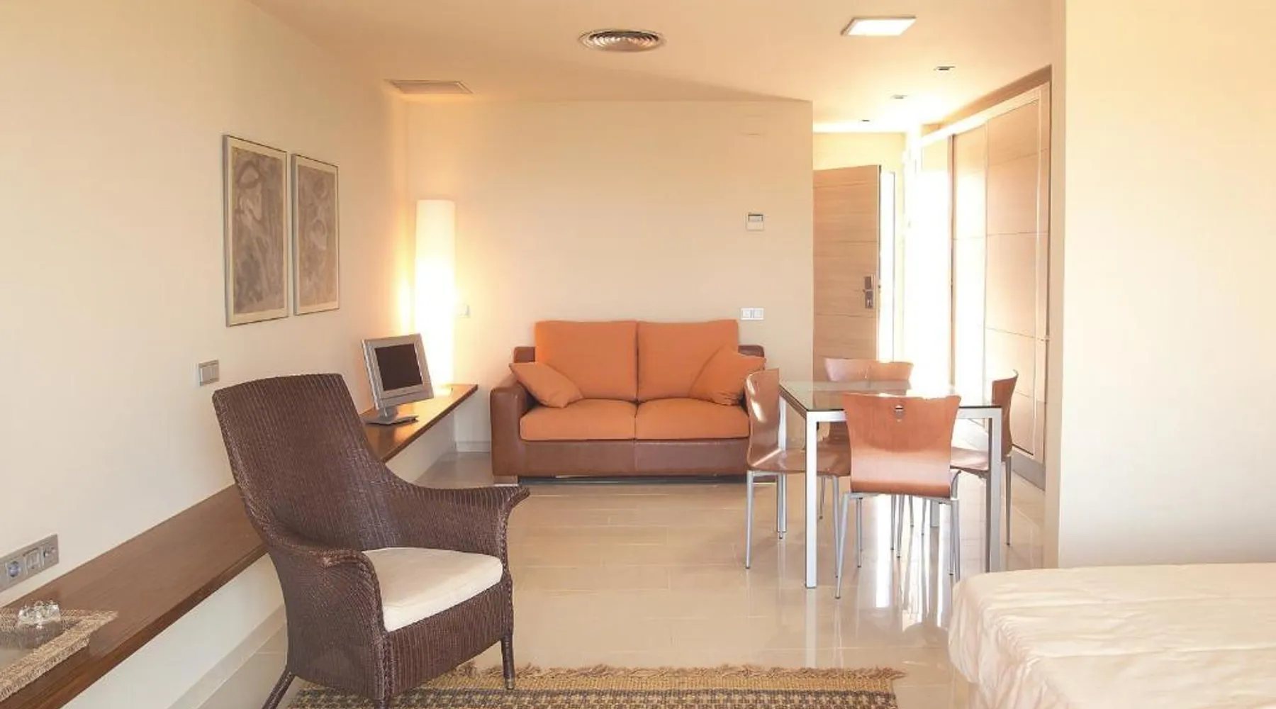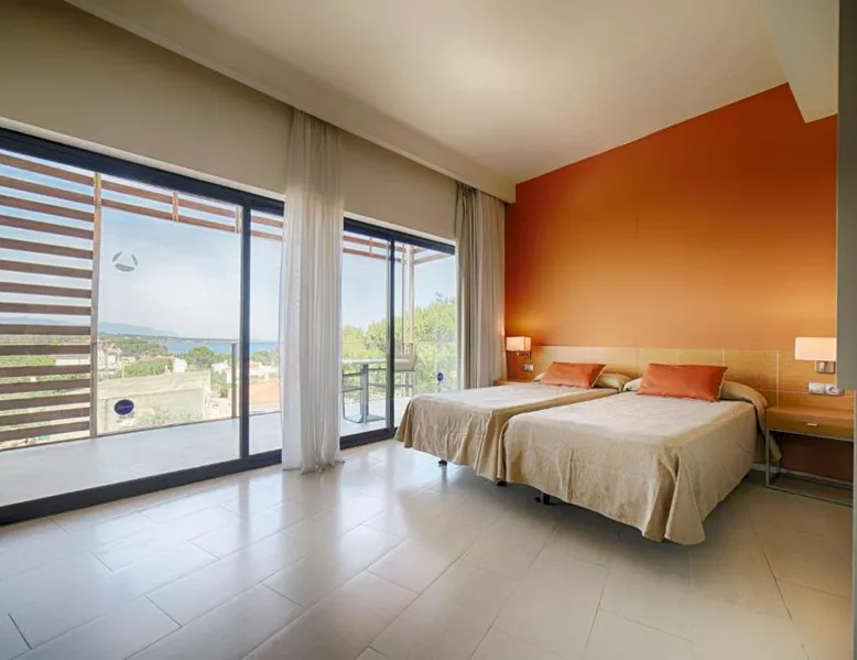 Ohtels Les Oliveres is located 656 feet from L'Ampolla Beach in the Baix Ebre region of Catalonia. It offers 2 indoor and 6 outdoor swimming pools, a restaurant and various leisure facilities. The elegant rooms and apartments at Ohtels Les Oliveres are air conditioned and feature a flat-screen satellite TV and a private bathroom with a hairdryer. The Ohtels Les Oliveres hotel also offers tennis and paddle tennis courts and a spa with massage services. There is also a buffet restaurant offering show cooking, as well as a poolside bar. Ohtels Les Oliveres is well connected to the AP-7 motorway, which runs along the Mediterranean coast. Port Aventura theme park is a 1-hour drive from the hotel. This bright and modern apartment with air conditioning features minimal décor. It has a seating area, a sleeping area and a private bathroom. The apartment is equipped with flat-screen TV, and has a furnished balcony.