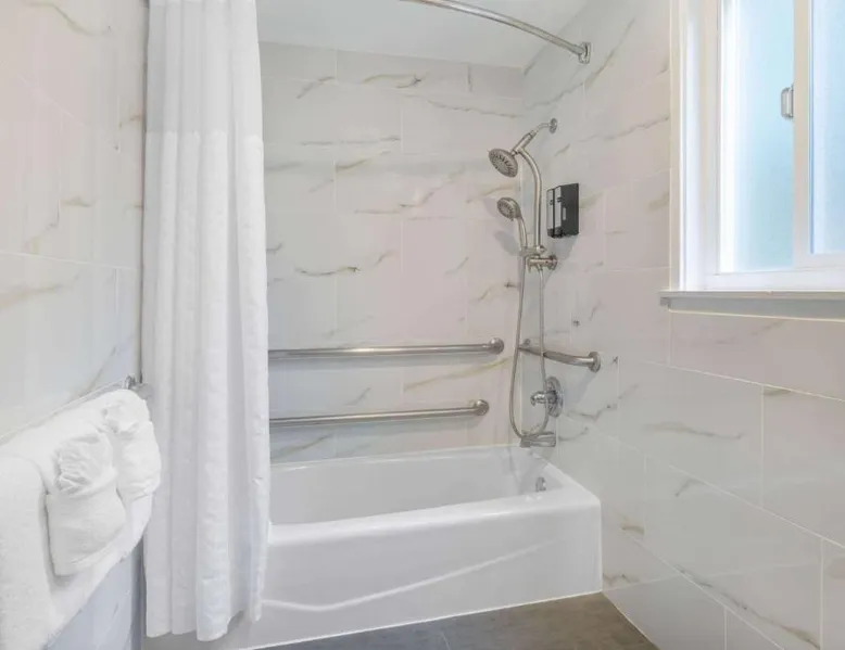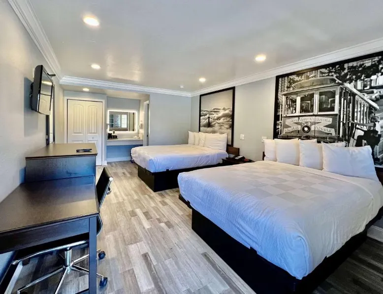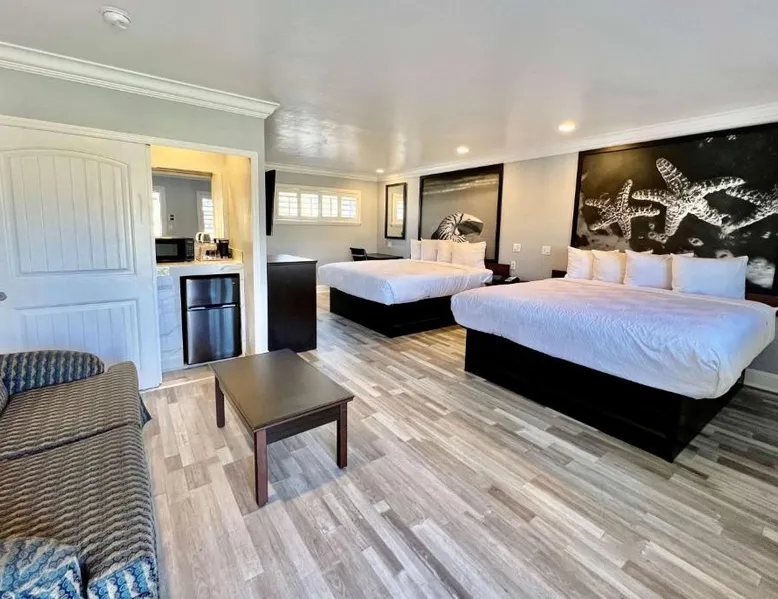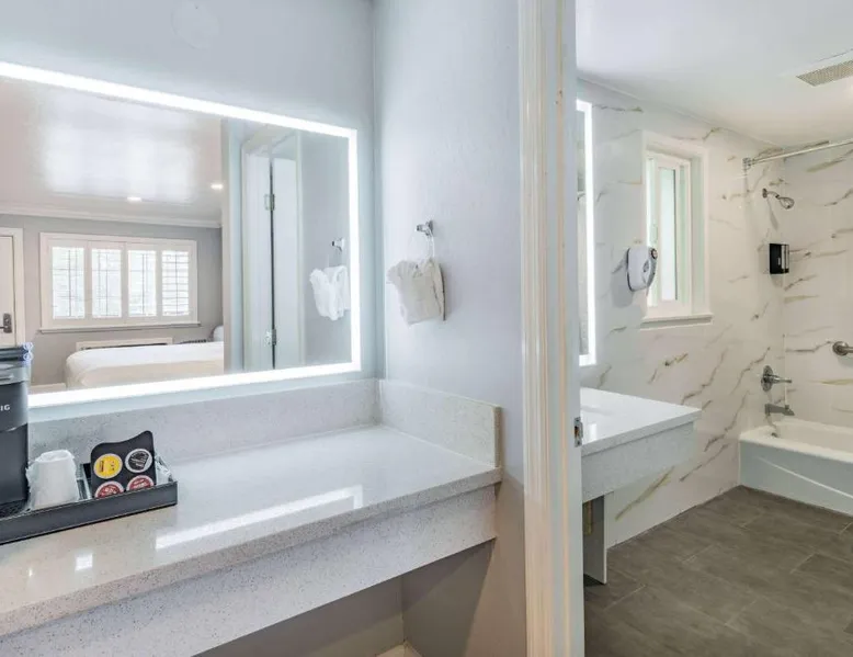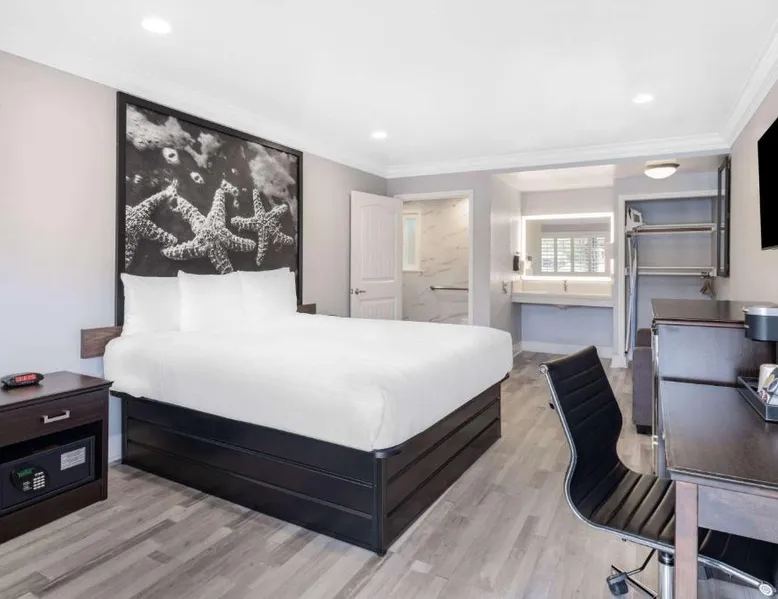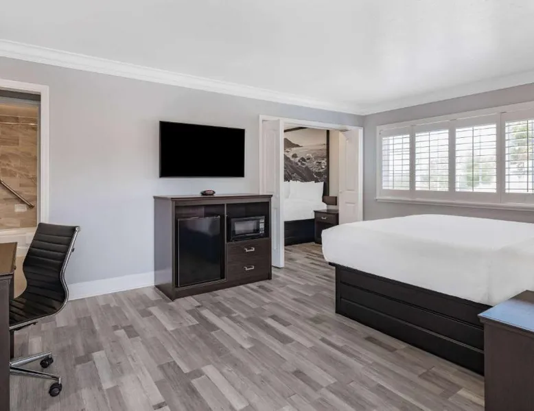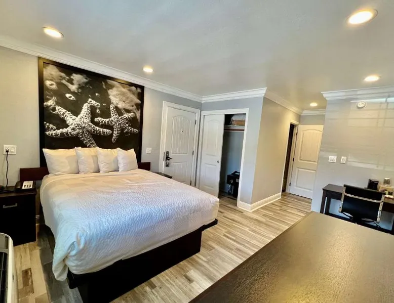 The Aura Inn Monterey is located in the Munras Avenue area of Monterey, 1.4 miles from Seaside Beach, 1.8 miles from San Carlos State Beach, and 1.6 miles from the Presidio of Monterey Museum. This 2-star motel features free WiFi and a 24-hour front desk. We also have EV charging at this location at cost. Family rooms are available at the motel. Wine Trolley Tours, the Monterey Museum of Art, and Dennis the Menace Park are all popular attractions near the motel. The closest airport to Aura Inn Monterey is Monterey Peninsula Airport, which is 3 miles away. Includes a flat-screen TV, microwave and refrigerator. Offers views of the Del Monte Shopping Center. Please note that the room rate is based on 2 guests. Maximum occupancy is 4 guests (see Hotel Policies).