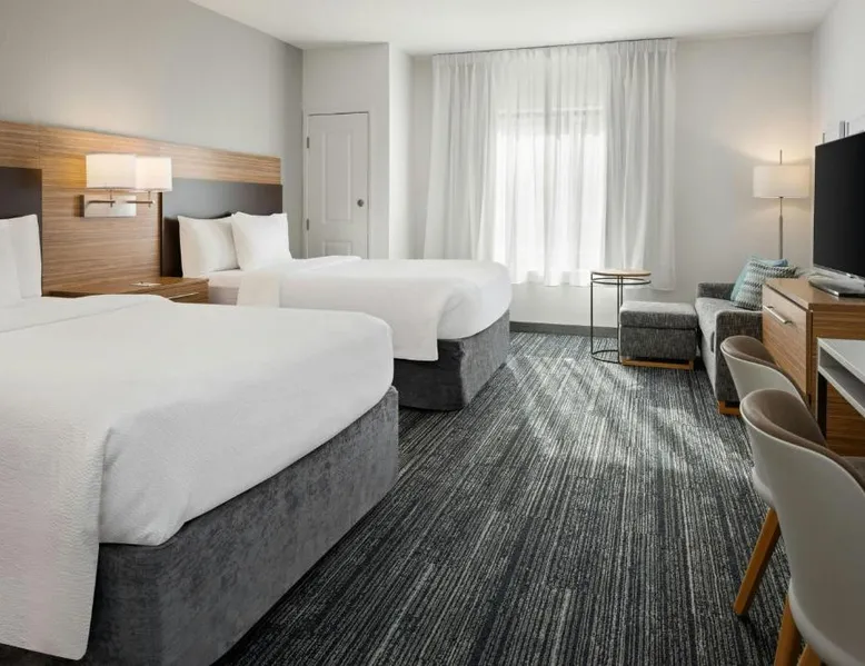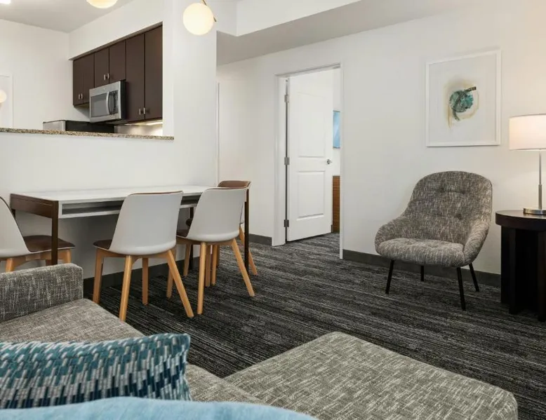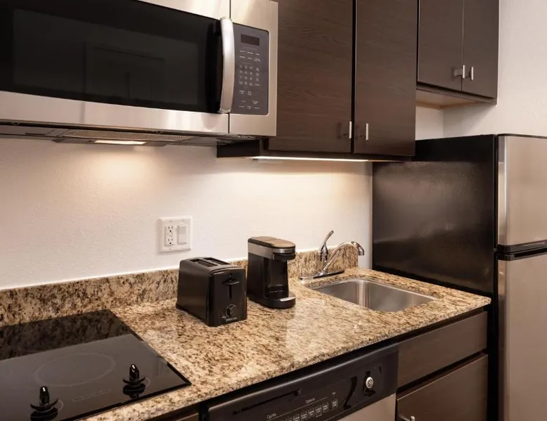 Comfortable Accommodations: TownePlace Suites by Marriott Minneapolis near Mall of America in Bloomington offers comfortable rooms with air-conditioning, private bathrooms, and fully equipped kitchens. Each room includes a work desk, sofa bed, and free WiFi. Leisure Facilities: Guests can enjoy a sun terrace, indoor swimming pool, and outdoor fireplace. Additional amenities include a lounge, outdoor seating area, and barbecue facilities. Convenient Location: Located 0.6 mi from Minneapolis-Saint Paul International Airport and a 9-minute walk to Mall of America, the hotel is near attractions such as Nickelodeon Universe and Minnesota Valley National Wildlife Refuge. Guest Services: The hotel provides a 24-hour front desk, express check-in and check-out, and paid on-site private parking. Guests appreciate the convenient location, attentive staff, and room cleanliness. Featuring a full-size oven, this two-bedroom suite offers a fully-equipped kitchen.