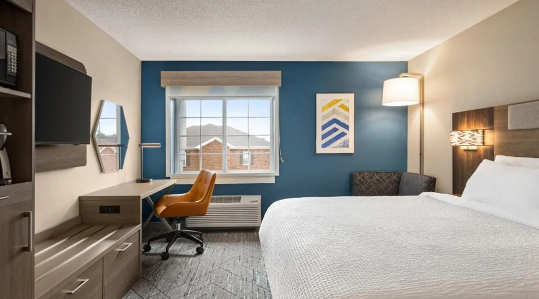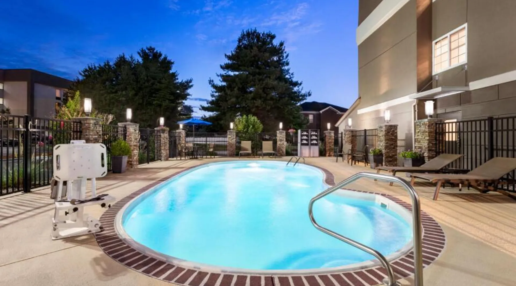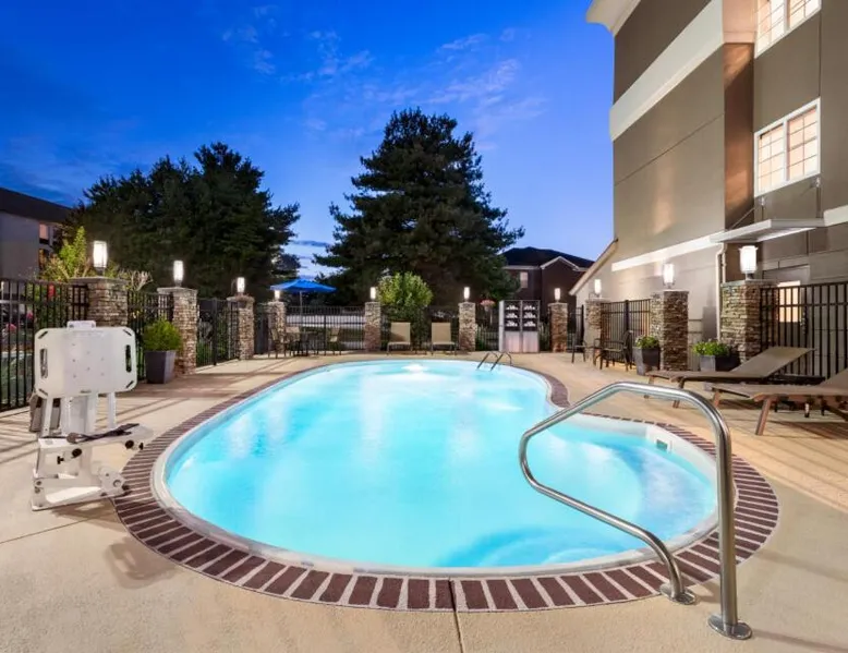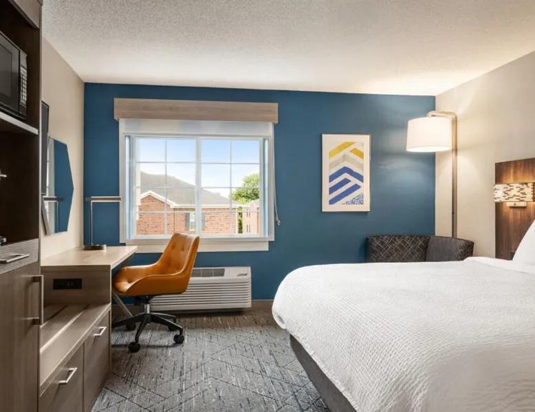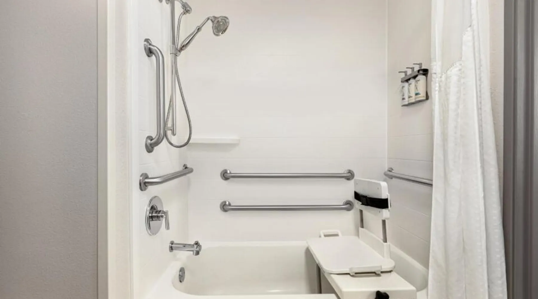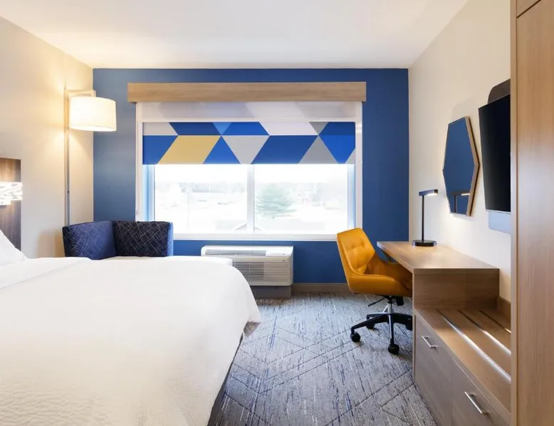 Comfortable Accommodations: Holiday Inn Express - Bowling Green by IHG in Bowling Green offers rooms with air-conditioning, private bathrooms, and city views. Each room includes a work desk, sofa bed, and free WiFi. Leisure Facilities: Guests can enjoy a saltwater swimming pool, fitness center, sun terrace, and outdoor seating area. Additional amenities include a lounge, fitness room, and free on-site parking. Dining Options: A complimentary American buffet breakfast is served daily, featuring fresh pastries, pancakes, juice, fruits, and cheese. Location and Attractions: Located 66 mi from Nashville International Airport, the hotel is near attractions such as Sloan Convention Center (2.4 mi) and Aviation Heritage Park (1.7 mi). Guests appreciate the breakfast, room cleanliness, and attentive staff. This room features a roll in shower and hearing accessible amenities.
