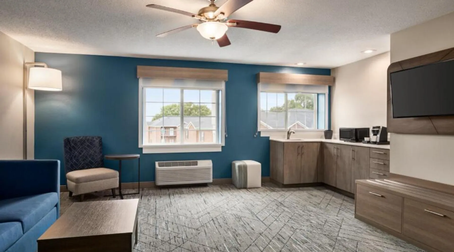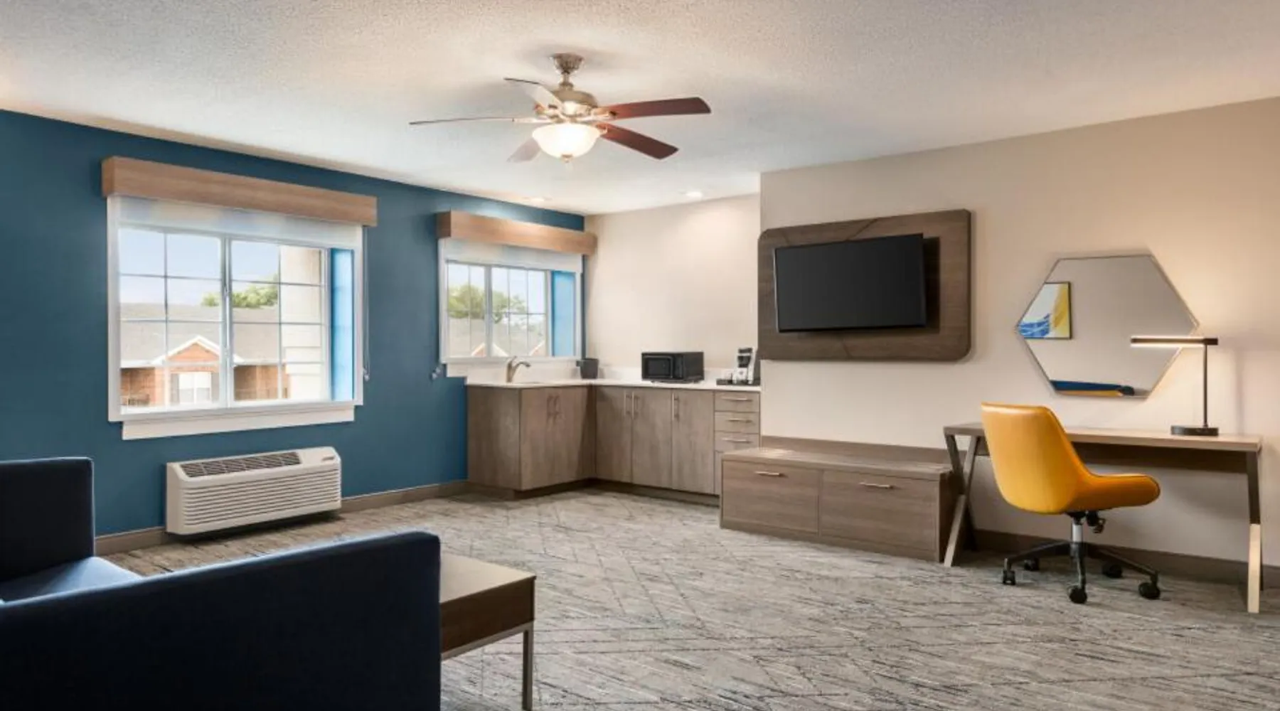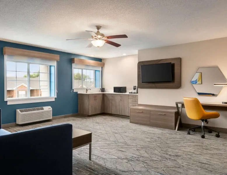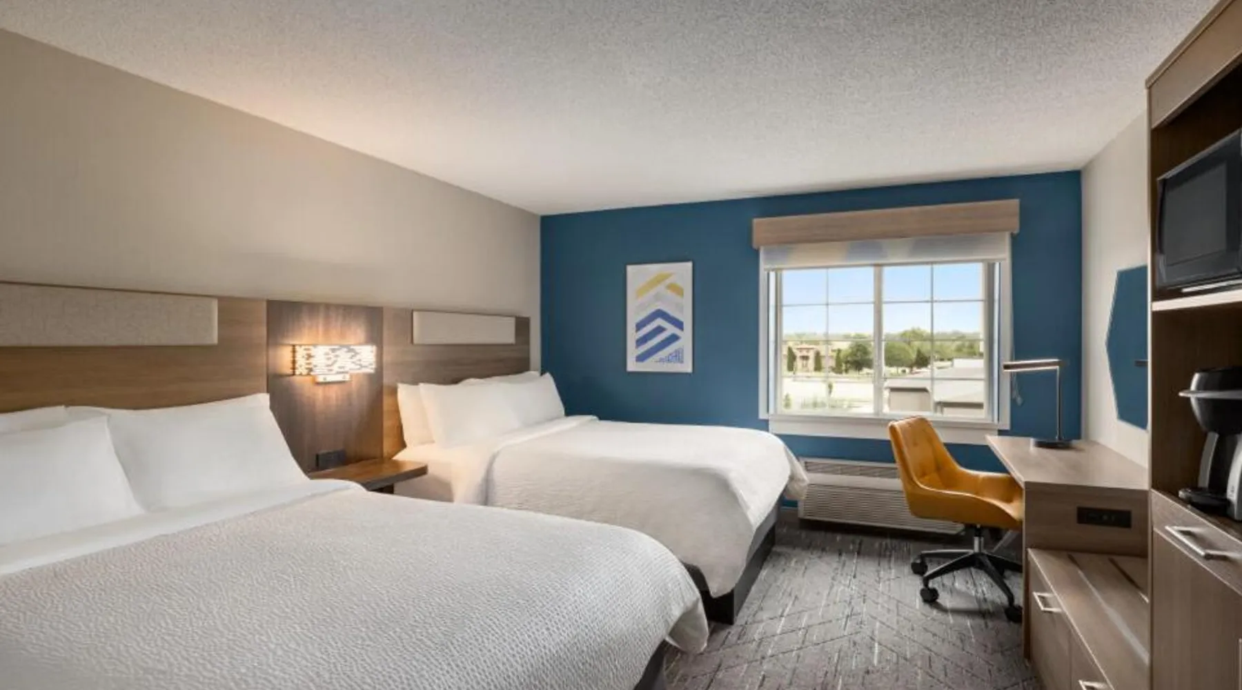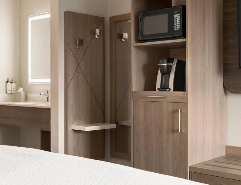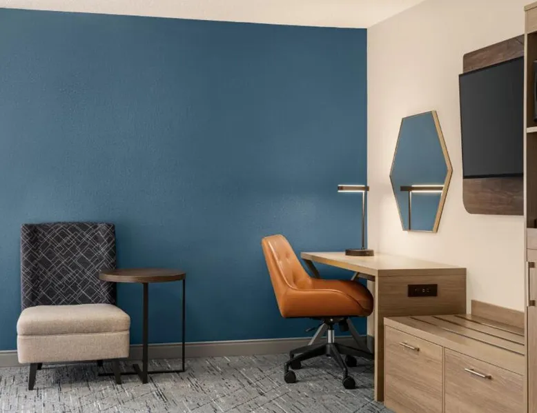 Comfortable Accommodations: Holiday Inn Express - Bowling Green by IHG in Bowling Green offers rooms with air-conditioning, private bathrooms, and city views. Each room includes a work desk, sofa bed, and free WiFi. Leisure Facilities: Guests can enjoy a saltwater swimming pool, fitness center, sun terrace, and outdoor seating area. Additional amenities include a lounge, fitness room, and free on-site parking. Dining Options: A complimentary American buffet breakfast is served daily, featuring fresh pastries, pancakes, juice, fruits, and cheese. Location and Attractions: Located 66 mi from Nashville International Airport, the hotel is near attractions such as Sloan Convention Center (2.4 mi) and Aviation Heritage Park (1.7 mi). Guests appreciate the breakfast, room cleanliness, and attentive staff. This room features a roll in shower and hearing accessible amenities.