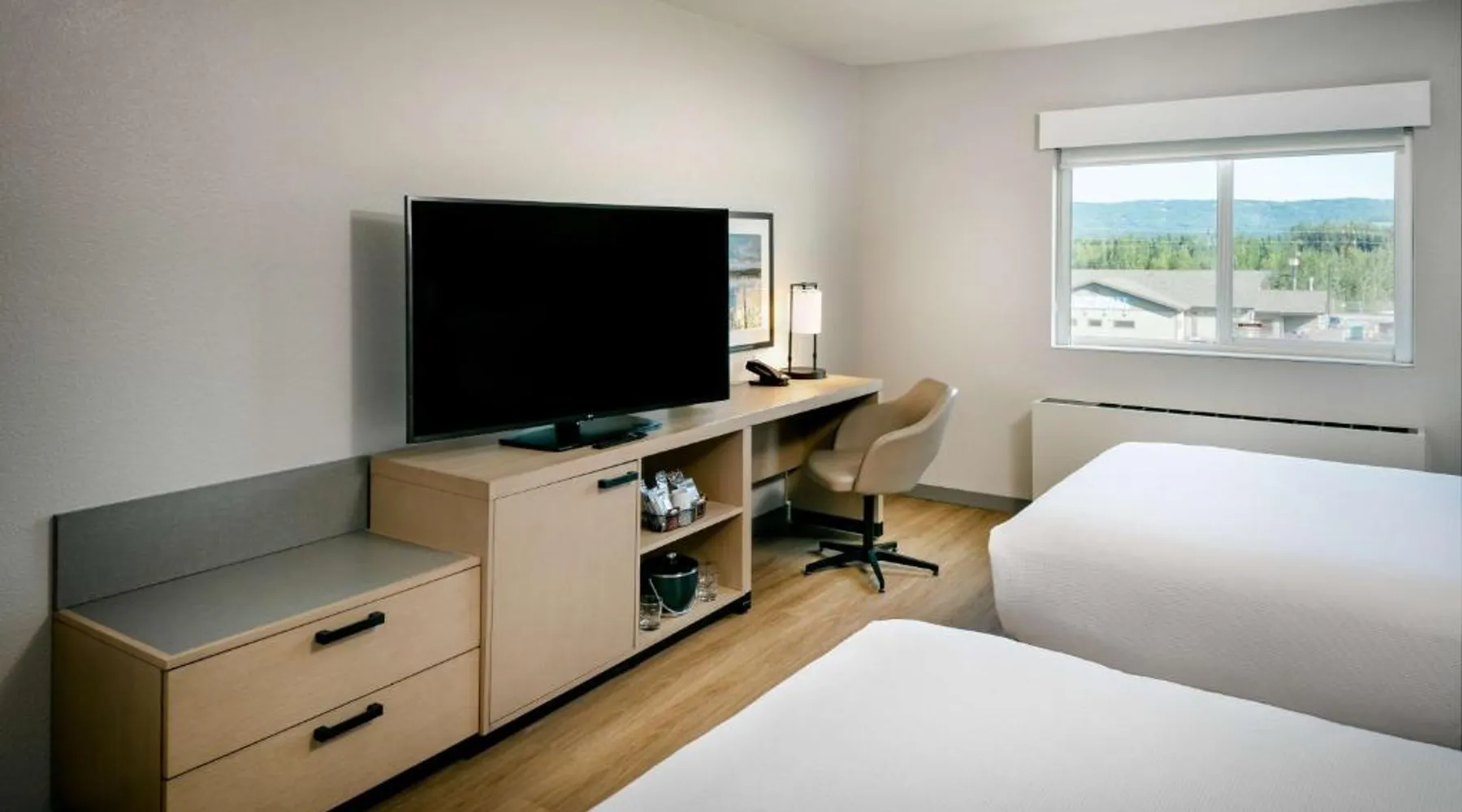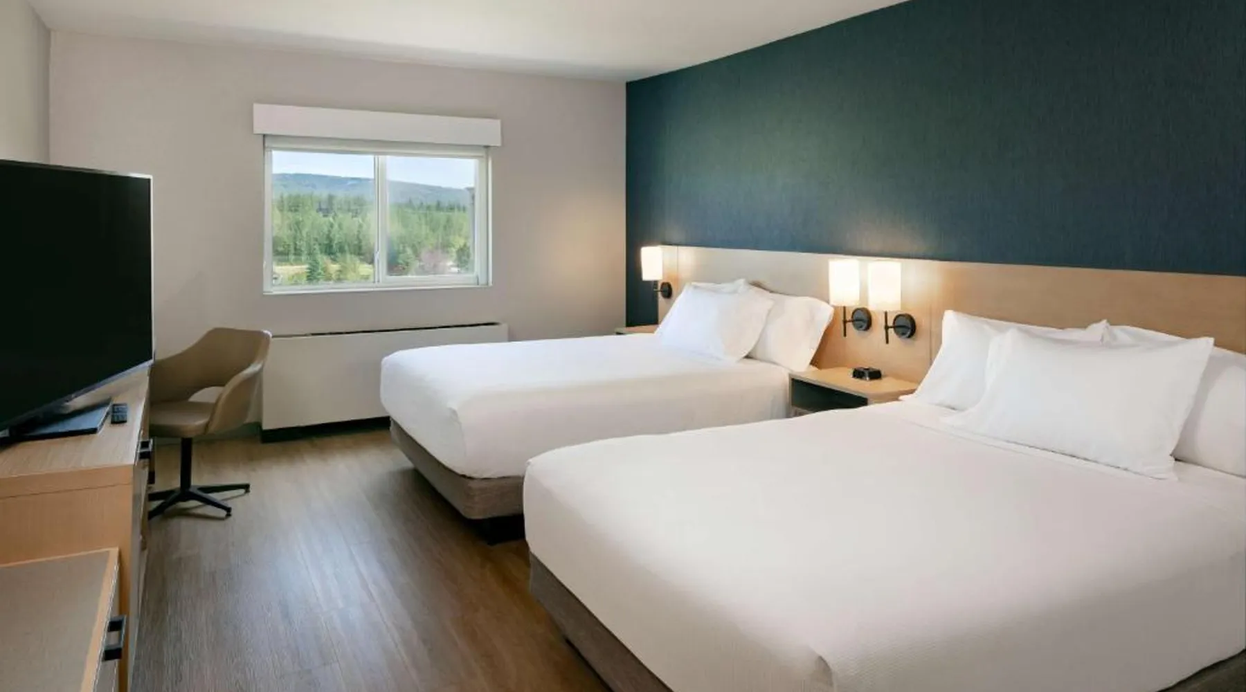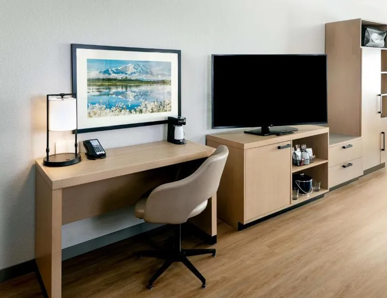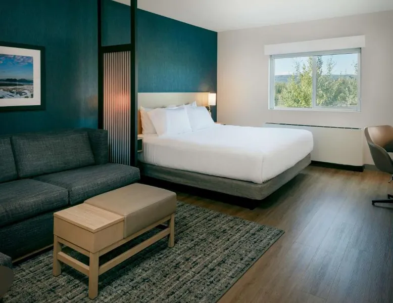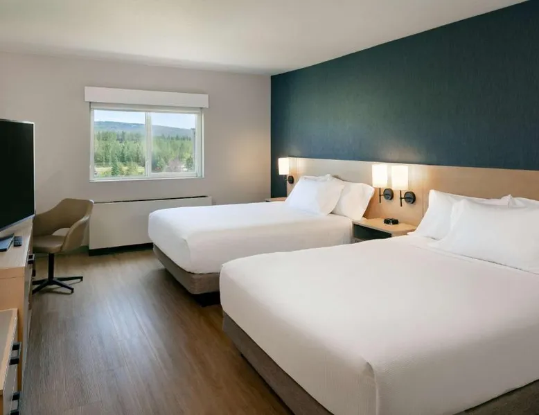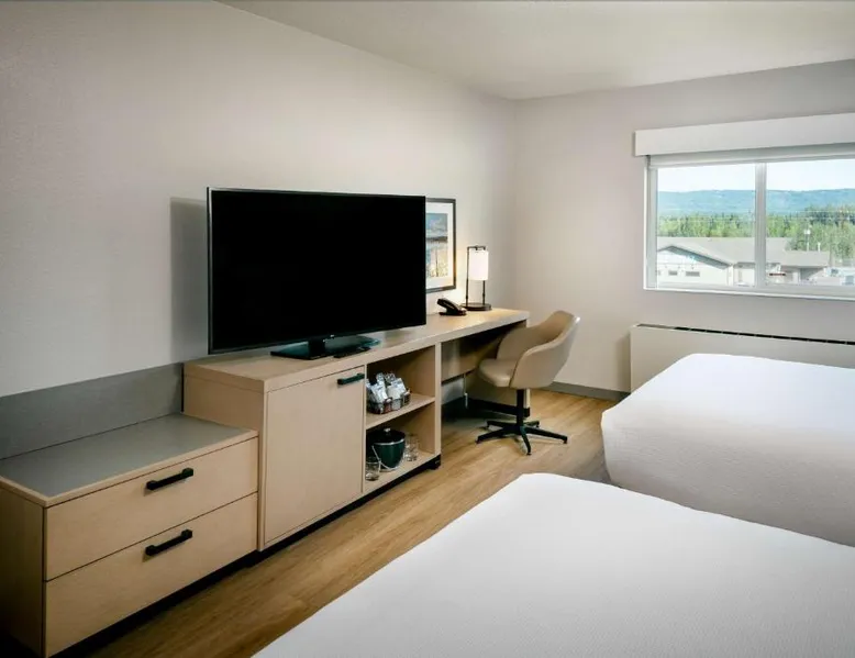 Comfortable Accommodations: Hyatt Place Fairbanks in Fairbanks offers air-conditioned rooms with private bathrooms, free WiFi, and modern amenities. Each room includes a work desk, TV, and wardrobe, ensuring a pleasant stay. Dining and Leisure: Guests can enjoy an indoor swimming pool, fitness room, and outdoor seating area. The modern restaurant serves American cuisine with vegetarian, vegan, and gluten-free options. A bar offers cocktails and dinner. Convenient Services: The hotel provides a free airport shuttle service, 24-hour front desk, and free on-site parking. Additional facilities include a minimarket, coffee shop, and public bath. Local Attractions: Located 6.8 mi from Fairbanks International Airport, the hotel is near attractions such as Fairbanks Exploration Historic (17-minute walk), Frameworks Gallery (0.9 mi), and Alaska House Art Gallery (2.2 mi). This air-conditioned quadruple room includes a flat-screen TV with streaming services and a private bathroom. The unit offers 2 beds.