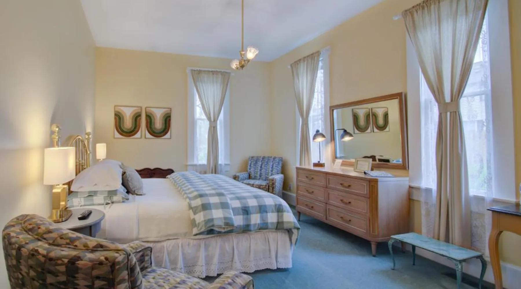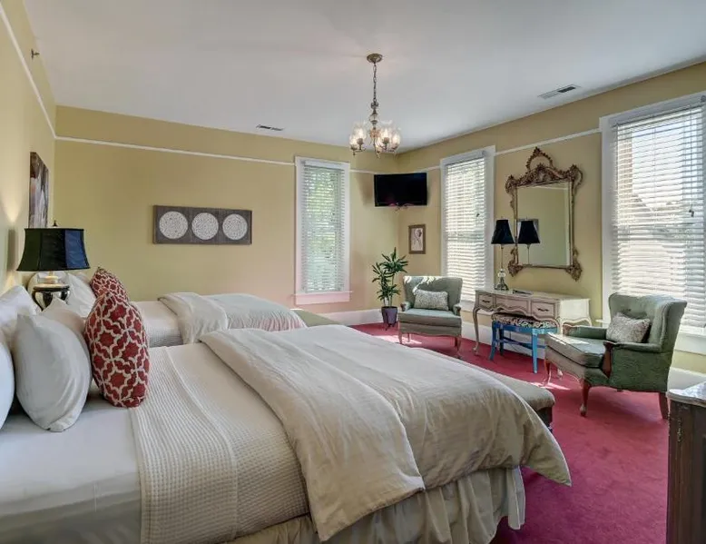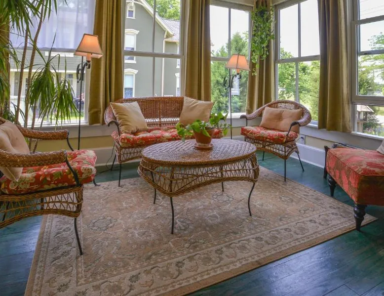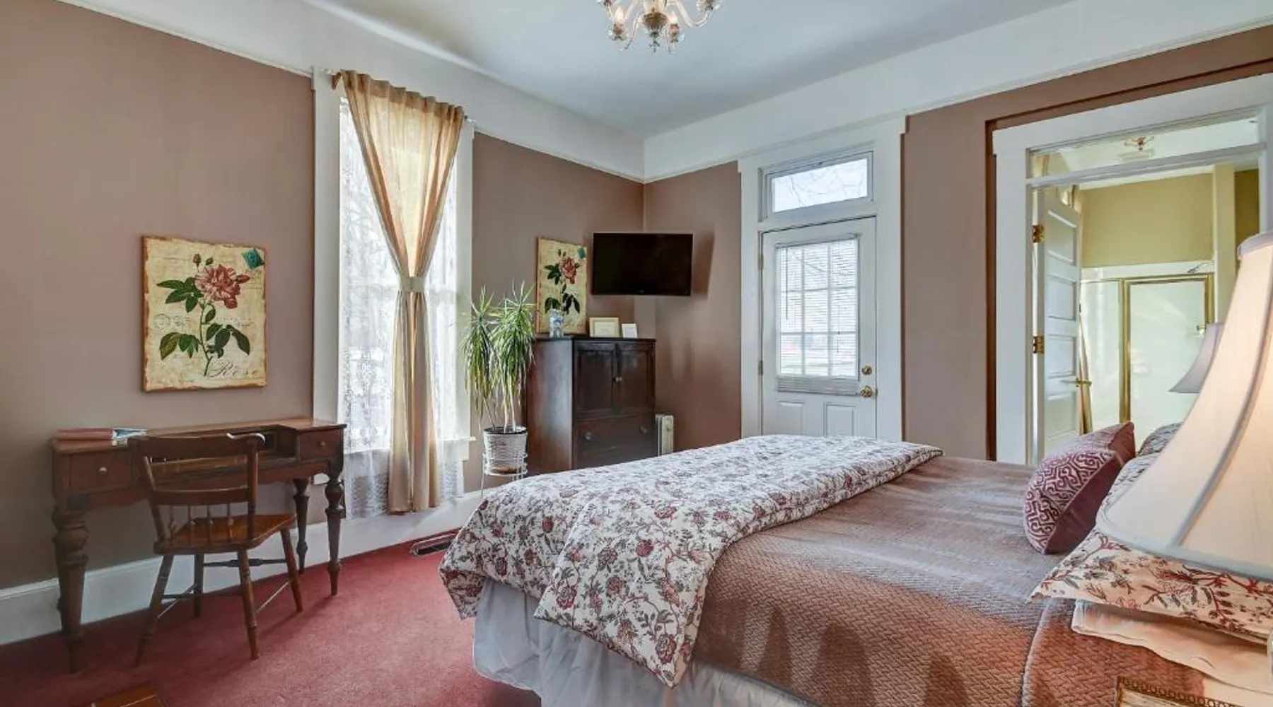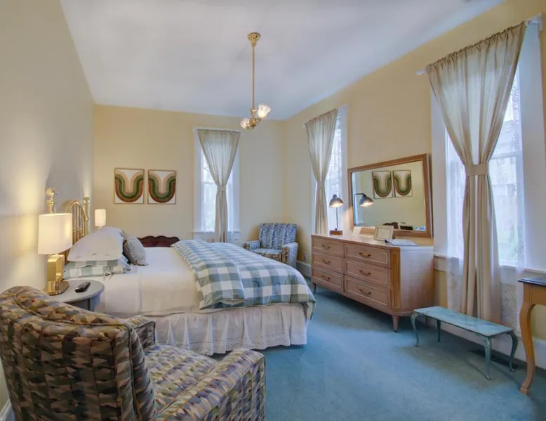 Comfortable Accommodations: Prairie Guest House in Fishers offers family rooms with garden views, private bathrooms, and modern amenities. Each room includes air-conditioning, a work desk, and free WiFi. Outdoor Spaces: Guests can relax on the sun terrace or in the garden, enjoying the outdoor fireplace and seating areas. The property also features a picnic area and barbecue facilities. Delicious Breakfast: A variety of breakfast options are available, including American, vegetarian, vegan, and gluten-free. Fresh pastries, fruits, and warm dishes are served daily. Convenient Location: Located 21 mi from Lucas Oil Stadium and 23 mi from Indianapolis Motor Speedway, the bed and breakfast is near attractions such as the Children's Museum of Indianapolis and Indianapolis Museum of Art. Offering free Wi-Fi, this room is located on the second floor of the guest house. Guests can enjoy a view of the sunset from the large picture windows.