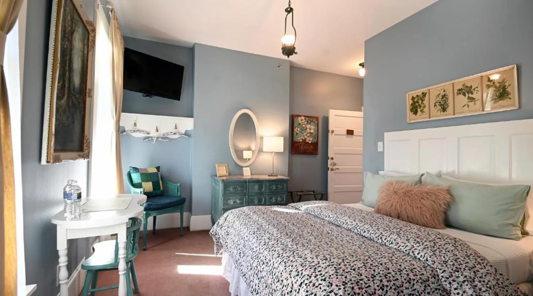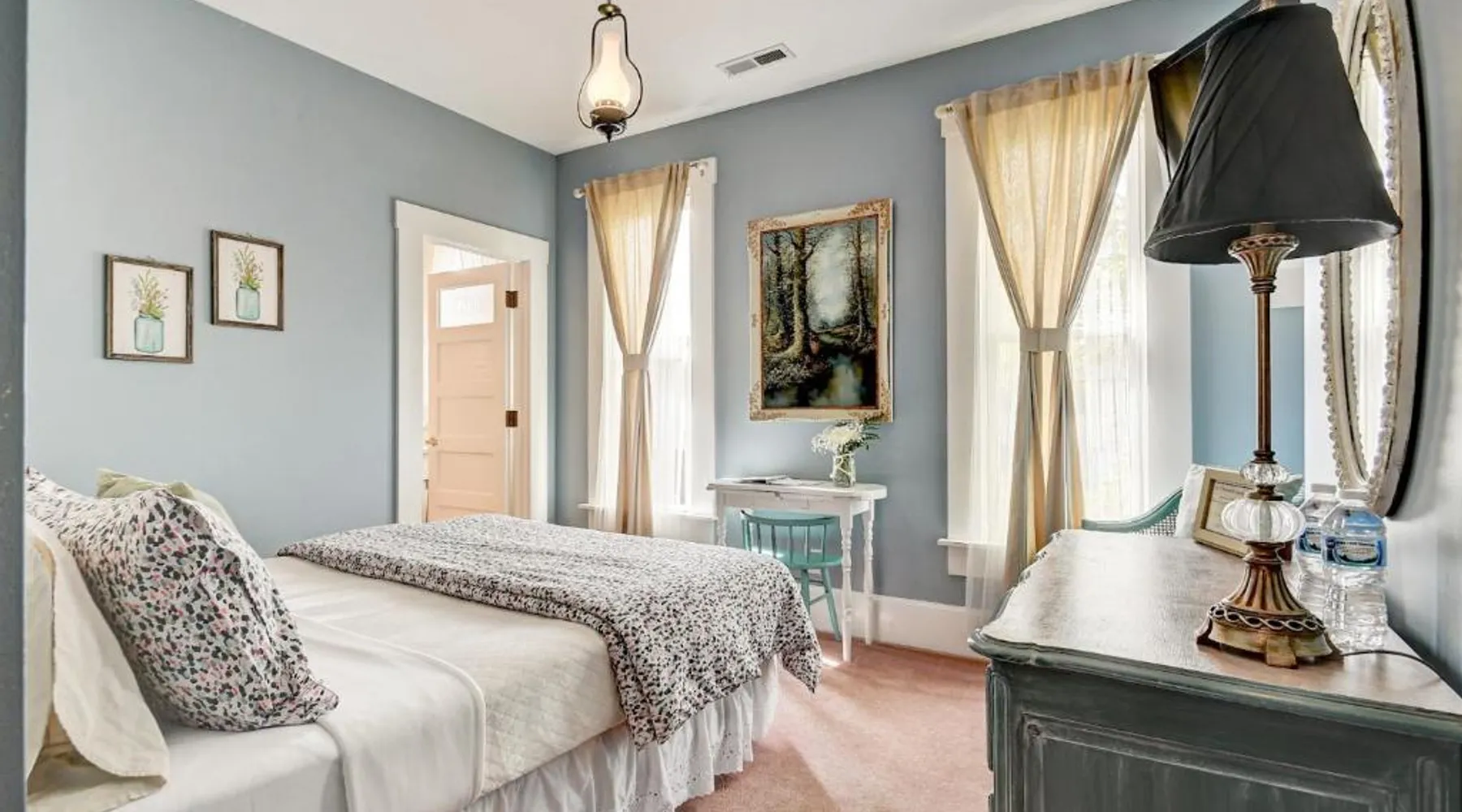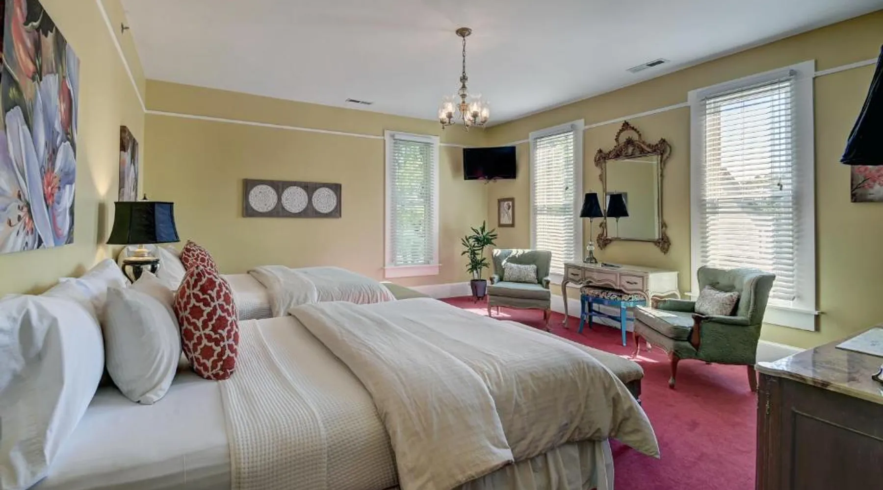 Comfortable Accommodations: Prairie Guest House in Fishers offers family rooms with garden views, private bathrooms, and modern amenities. Each room includes air-conditioning, a work desk, and free WiFi. Outdoor Spaces: Guests can relax on the sun terrace or in the garden, enjoying the outdoor fireplace and seating areas. The property also features a picnic area and barbecue facilities. Delicious Breakfast: A variety of breakfast options are available, including American, vegetarian, vegan, and gluten-free. Fresh pastries, fruits, and warm dishes are served daily. Convenient Location: Located 21 mi from Lucas Oil Stadium and 23 mi from Indianapolis Motor Speedway, the bed and breakfast is near attractions such as the Children's Museum of Indianapolis and Indianapolis Museum of Art. Offering free Wi-Fi, this room is located on the second floor of the guest house. Guests can enjoy a view of the sunset from the large picture windows.
