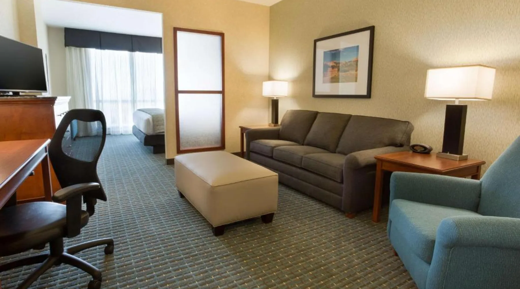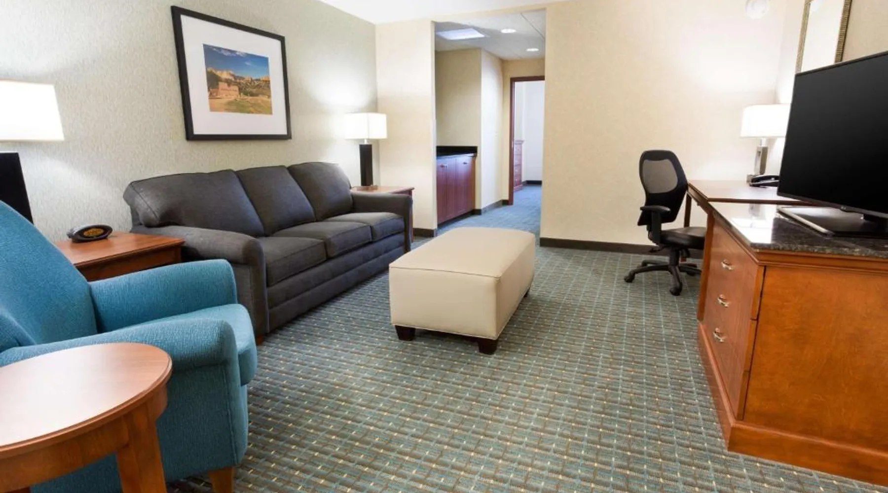 Offering an outdoor pool and an indoor pool, Drury Inn & Suites Colorado Springs is 15 minutes’ drive from Garden of The Gods. Free WiFi is available. A hot tub is available for guest relaxation. A work desk, a flat-screen cable TV and air conditioning are included in each room at Drury Inn & Suites Colorado Springs. A microwave and a small refrigerator are also offered. Featuring a bath or shower, private bathrooms also come with a hairdryer and free toiletries. At Colorado Springs Drury Inn & Suites a fitness center is available. Other facilities offered at the property include luggage storage and a vending machine. The property provides free parking. United States Air Force Academy is 5 minutes’ drive from the hotel. Pikes Peak Cog Railway is 16 mi from Drury Inn & Suites Colorado Springs. This upper floor suite features air conditioning, microwave and seating area.