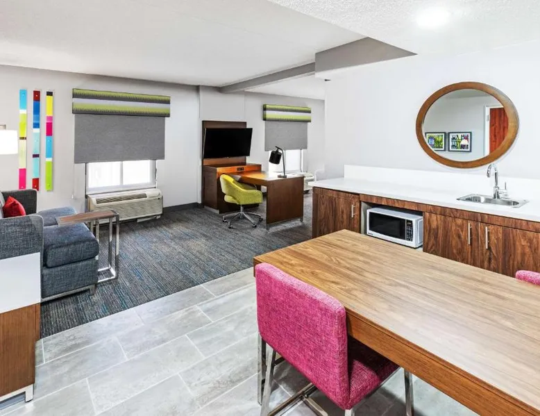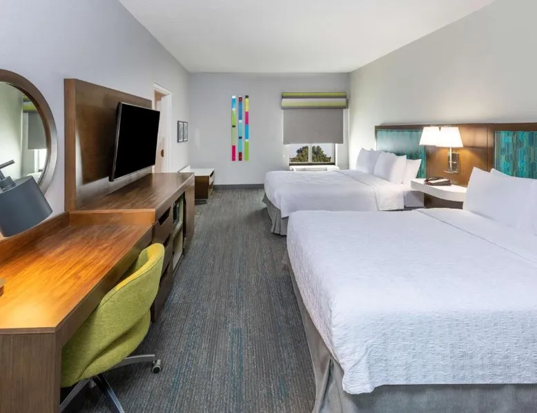 Comfortable Accommodations: Hampton Inn & Suites Tulsa-Woodland Hills in Tulsa offers clean rooms with air-conditioning, free WiFi, and modern amenities. Each room includes a tea and coffee maker, hairdryer, refrigerator, free toiletries, microwave, shower, and TV. Leisure Facilities: Guests can enjoy a fitness center, seasonal outdoor swimming pool, and a lounge. Additional facilities include a minimarket, electric vehicle charging station, business area, and luggage storage. Dining Options: A variety of breakfast options are available, including continental, American, buffet, vegetarian, and gluten-free. Convenient Location: Located 11 mi from Tulsa International Airport, the hotel is near attractions such as Rhema Bible College (4.3 mi), Broken Arrow Performing Arts Center (6.2 mi), and Philbrook Museum (9.3 mi). Free on-site parking is provided. This suite features air conditioning, a tea and coffee maker and a flat-screen TV with cable channels. The unit offers 3 beds.