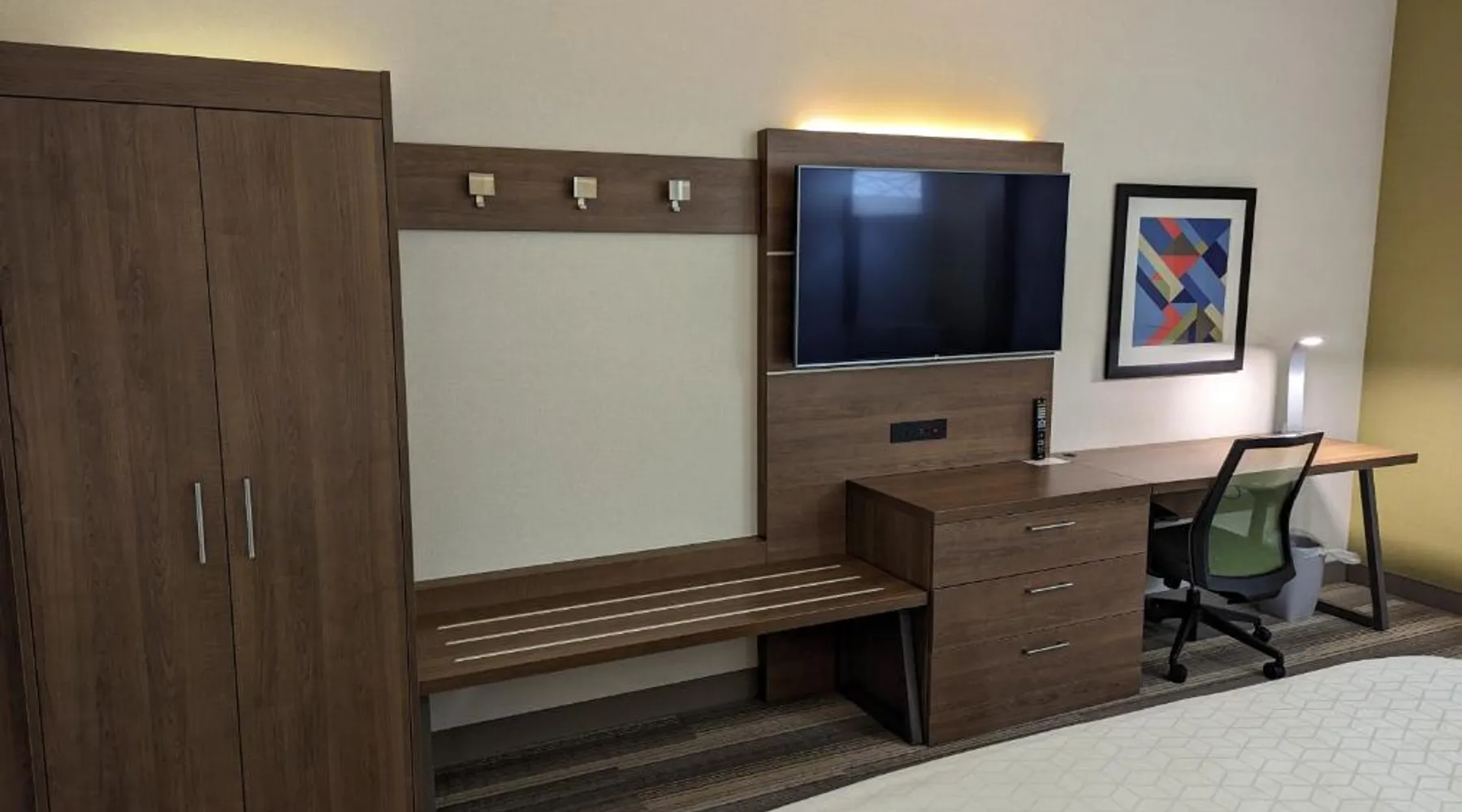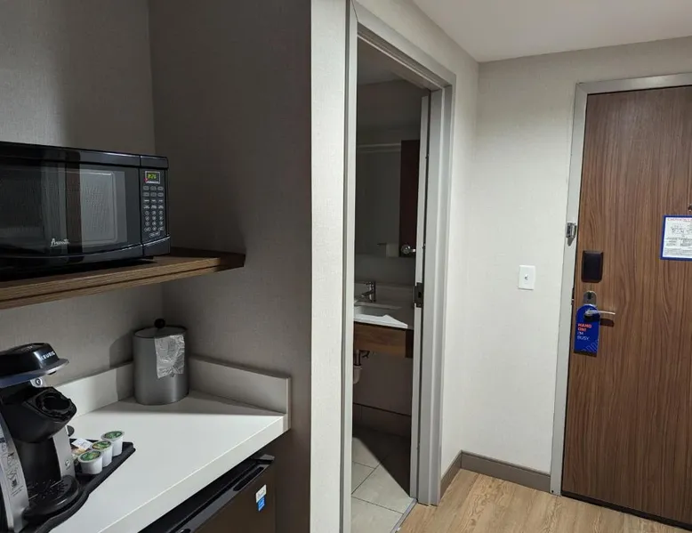 Comfortable Accommodations: Holiday Inn Express - Lexington East - Winchester by IHG in Winchester offers rooms with air-conditioning, private bathrooms, and free WiFi. Each room includes a tea and coffee maker, hypoallergenic bedding, and a work desk. Facilities and Services: Guests can enjoy a fitness center, indoor swimming pool, and a lounge. Additional amenities include a minimarket, 24-hour front desk, housekeeping service, and express check-in and check-out. Free on-site parking is available. Dining and Location: A buffet breakfast is served daily. The hotel is 25 mi from Blue Grass Airport and near attractions such as Fort Boonesborough State Park (9.9 mi) and Lexington Convention Center (19 mi). Guests appreciate the room cleanliness, attentive staff, and quality breakfast. The spacious double room provides air conditioning, a tea and coffee maker, as well as a private bathroom featuring a walk-in shower and a hairdryer. The double room features carpeted floors, a seating area with a flat-screen TV with cable channels, a wardrobe, a safe deposit box, as well as heating. The unit offers 1 bed.