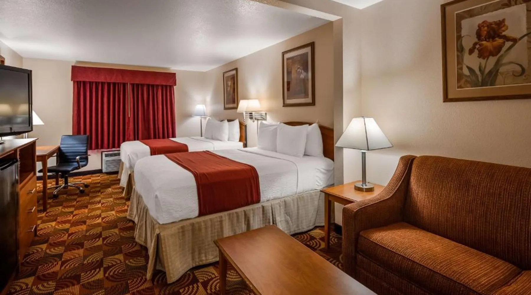 The University of Wyoming is 2.4 miles from this Best Western in Laramie, Wyoming. The hotel offers an indoor pool and a hot tub, a full American breakfast and spacious rooms with free Wi-Fi. Rooms are warmly decorated and include a microwave and small fridge. A hairdryer and cable TV with HBO movie channels are also provided. Guests can use the on-site gym or laundry facilities. Laramie Best Western Inn has a public computer station with print services, located in the lobby. La Bonte Park is 5 minutes’ drive from the Best Western Laramie Inn and Suites. War Memorial Stadium is 4 miles from the hotel and the Jacoby Golf Course is 10 minutes’ drive away. The unit has 1 bed.
