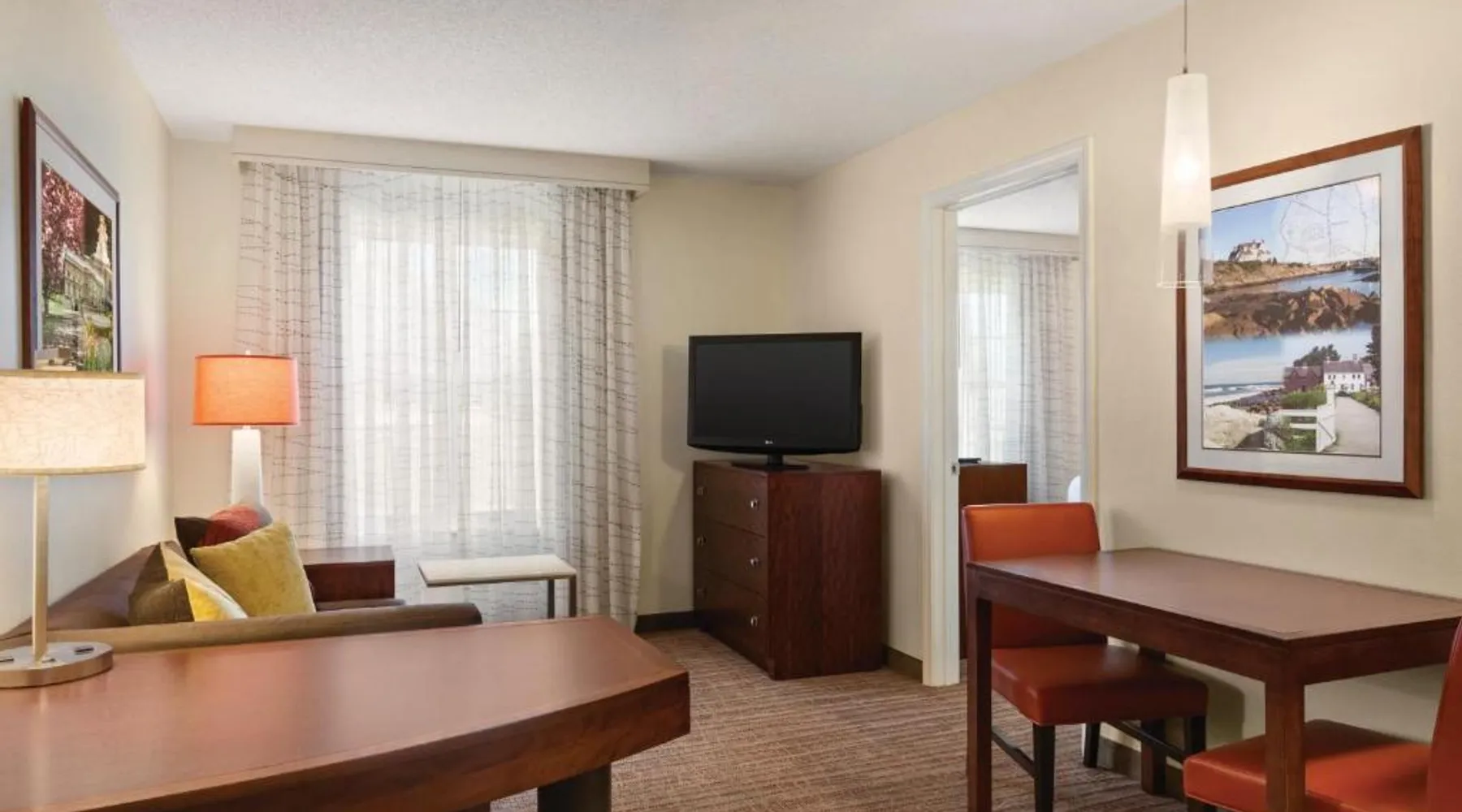 Comfortable Accommodations: Residence Inn by Marriott Newport Middletown in Middletown offers family rooms with air-conditioning, private bathrooms, and fully equipped kitchens. Each room includes a work desk, TV, and free WiFi. Exceptional Facilities: Guests can enjoy a fitness center, sun terrace, indoor swimming pool, and free use of bicycles. Additional amenities include a hot tub, lounge, and business area. Convenient Location: Located 27 mi from T.F. Green Airport, the hotel is near attractions such as the International Tennis Hall of Fame (2.5 mi) and The Breakers (3.7 mi). Free on-site parking is available. Guest Satisfaction: Highly rated for its attentive staff and excellent service support. This suite offers a separate living room with a sofa bed and a fully equipped kitchen.