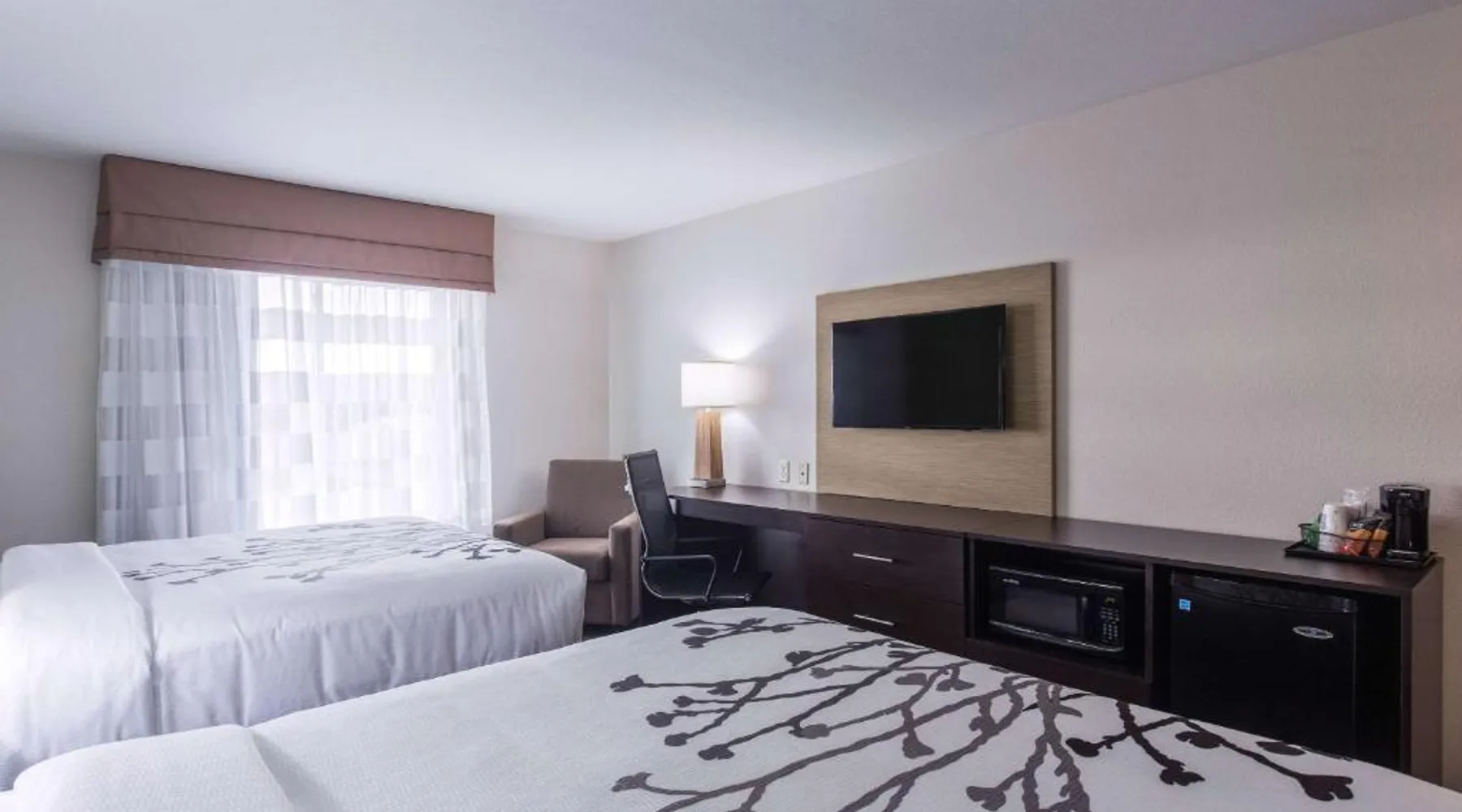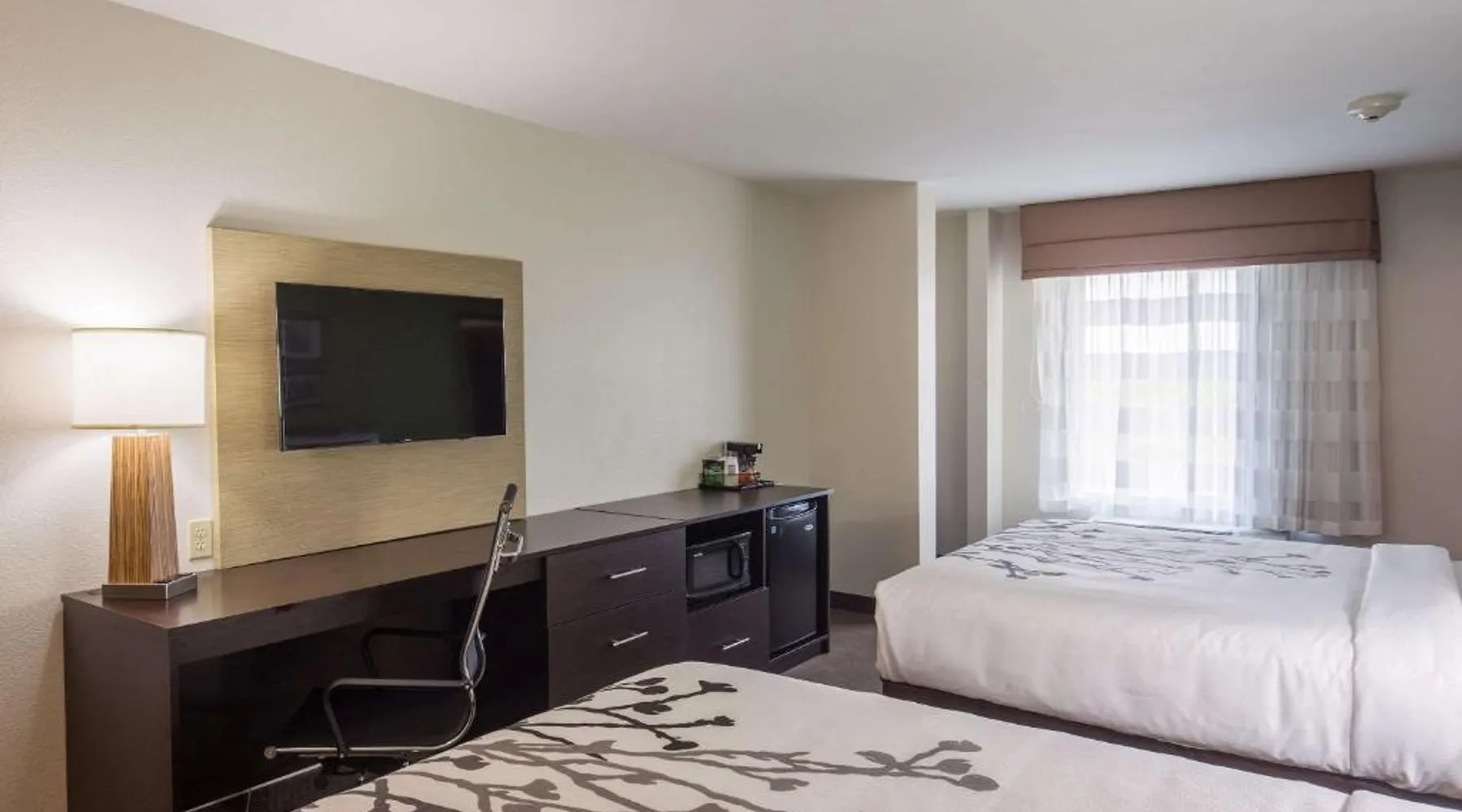 Comfortable Accommodations: Sleep Inn & Suites Ingleside in Ingleside offers comfortable rooms with air-conditioning, free WiFi, and modern amenities. Each room includes a work desk, refrigerator, microwave, TV, and a seating area. Leisure Facilities: Guests can enjoy a fitness center, sun terrace, and a year-round outdoor swimming pool. Additional facilities include a business area, outdoor seating, picnic area, and barbecue facilities. Dining Options: A continental buffet breakfast is served daily, featuring fresh pastries, fruits, and juices. The property also offers a 24-hour front desk, housekeeping service, and free on-site parking. Location and Attractions: Located 24 mi from Corpus Christi International Airport and 17 mi from the American Bank Center Convention Center. Highly rated for its attentive staff, excellent breakfast, and clean rooms. The family room offers air conditioning, a tea and coffee maker, a seating area, tumble dryer and a TV with cable channels. The unit has 2 beds.