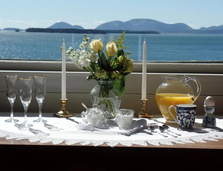 Beachfront Location: Acadia Bay Inn in Sullivan offers direct beachfront access, a sun terrace, and a lush garden. Guests can enjoy sea views and relax on the sandy shore. Comfortable Accommodations: The bed and breakfast features family rooms with private balconies, air-conditioning, and free WiFi. Each room includes a private bathroom with a walk-in shower, bath, and free toiletries. Leisure Facilities: Guests can play tennis on the court, enjoy the outdoor seating and picnic areas, and participate in activities such as fishing, hiking, and cycling. Nearby Attractions: Located 15 mi from Hancock County-Bar Harbor Airport, the inn is close to Agamont Park (29 mi), Frenchman Bay (27 mi), and Acadia National Park Visitor Center Hulls Cove (25 mi). Highly rated by guests. This room features a queen bed, a seating area, bath and an in-room sink. Guests of this room will have access to a deck that overlooks the grounds and the garden.