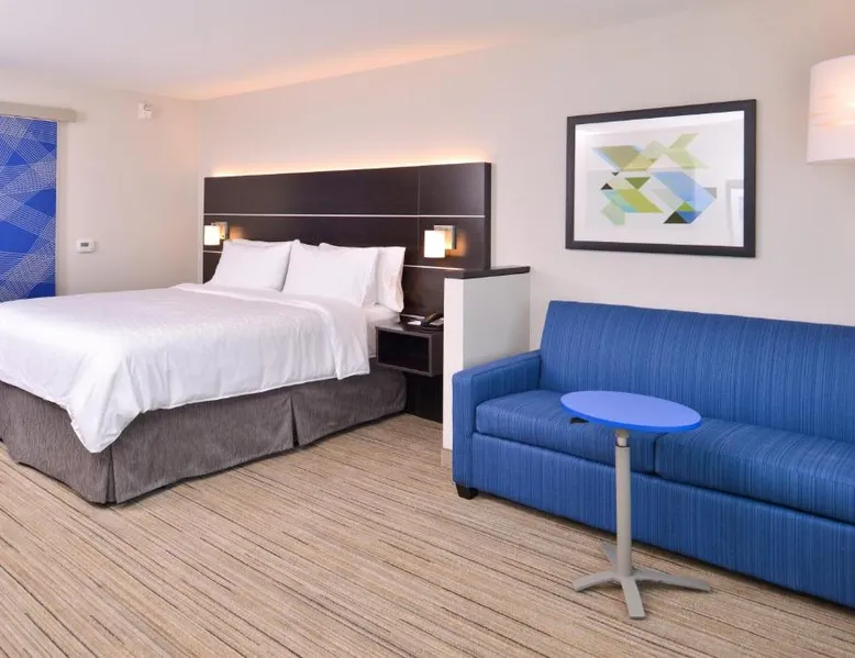 Comfortable Accommodations: Holiday Inn Express & Suites - Olathe West by IHG in Olathe offers family rooms with air-conditioning, private bathrooms, showers, TVs, and sofas. Free WiFi is available throughout the property. Facilities and Services: Guests can enjoy an indoor swimming pool, fitness center, and a 24-hour front desk. Free on-site parking is provided, along with a breakfast served daily. Location and Attractions: Located 29 mi from Kansas City International Airport, the hotel is near attractions such as the National World War I Museum at Liberty Memorial (18 mi) and Union Station Kansas City (19 mi). Guest Satisfaction: Highly rated for its breakfast, room cleanliness, and attentive staff. This double room features a private bathroom and air conditioning. The unit offers 3 beds.