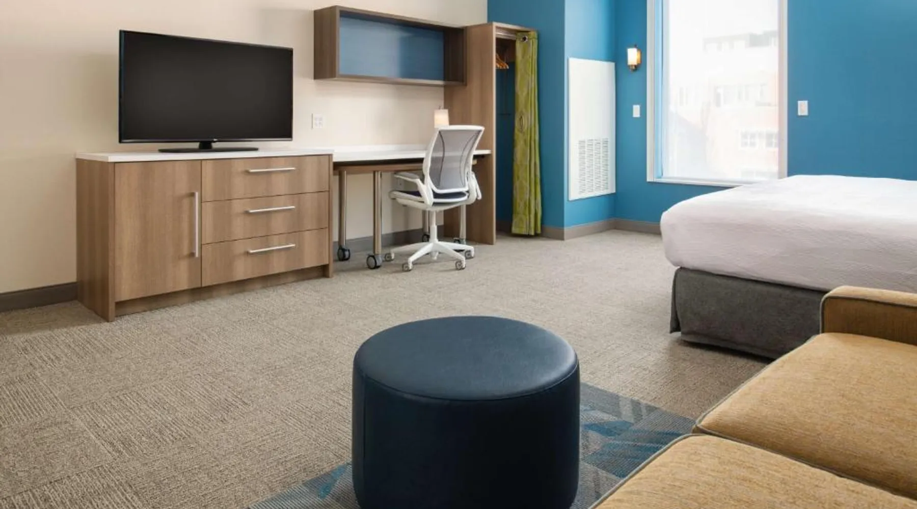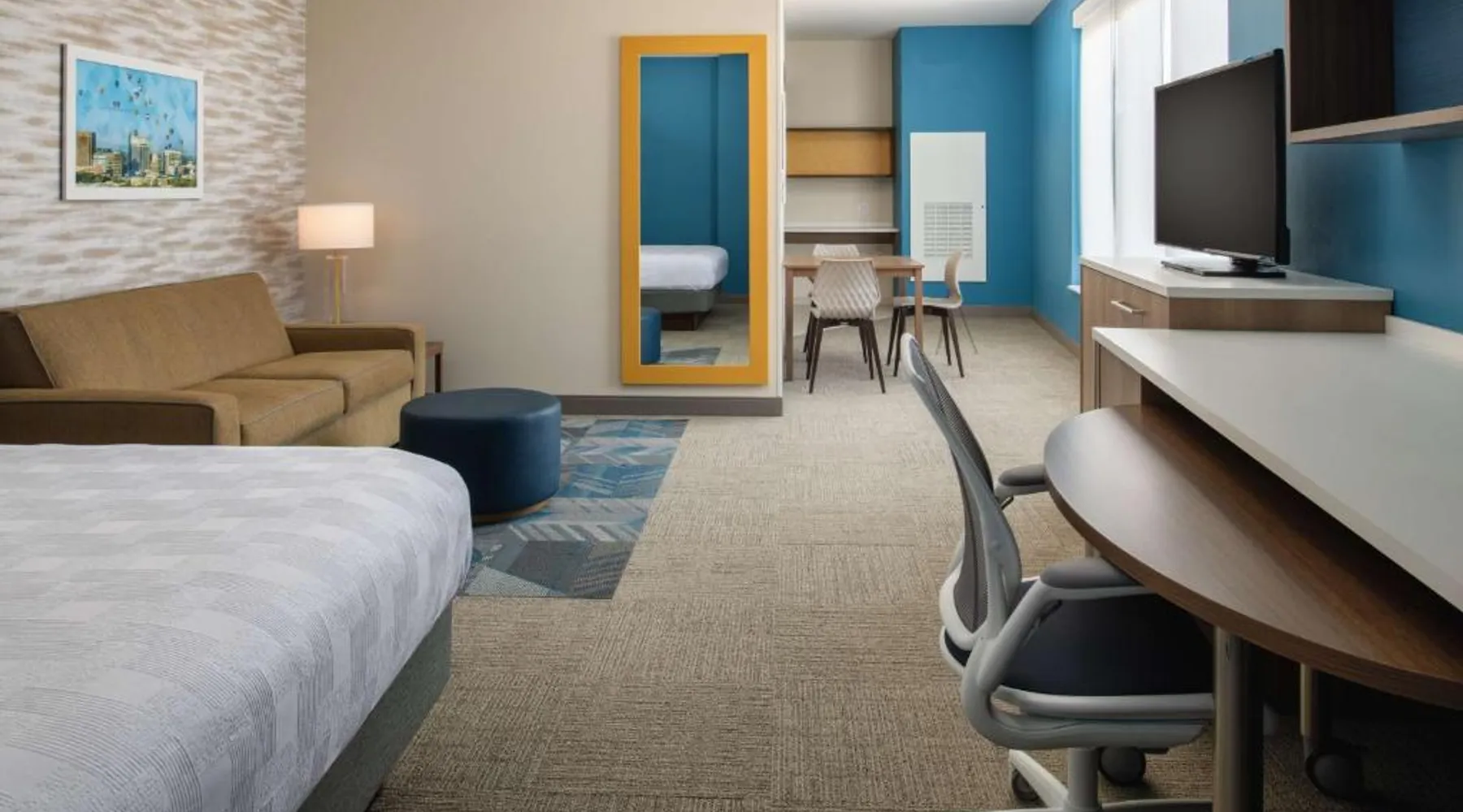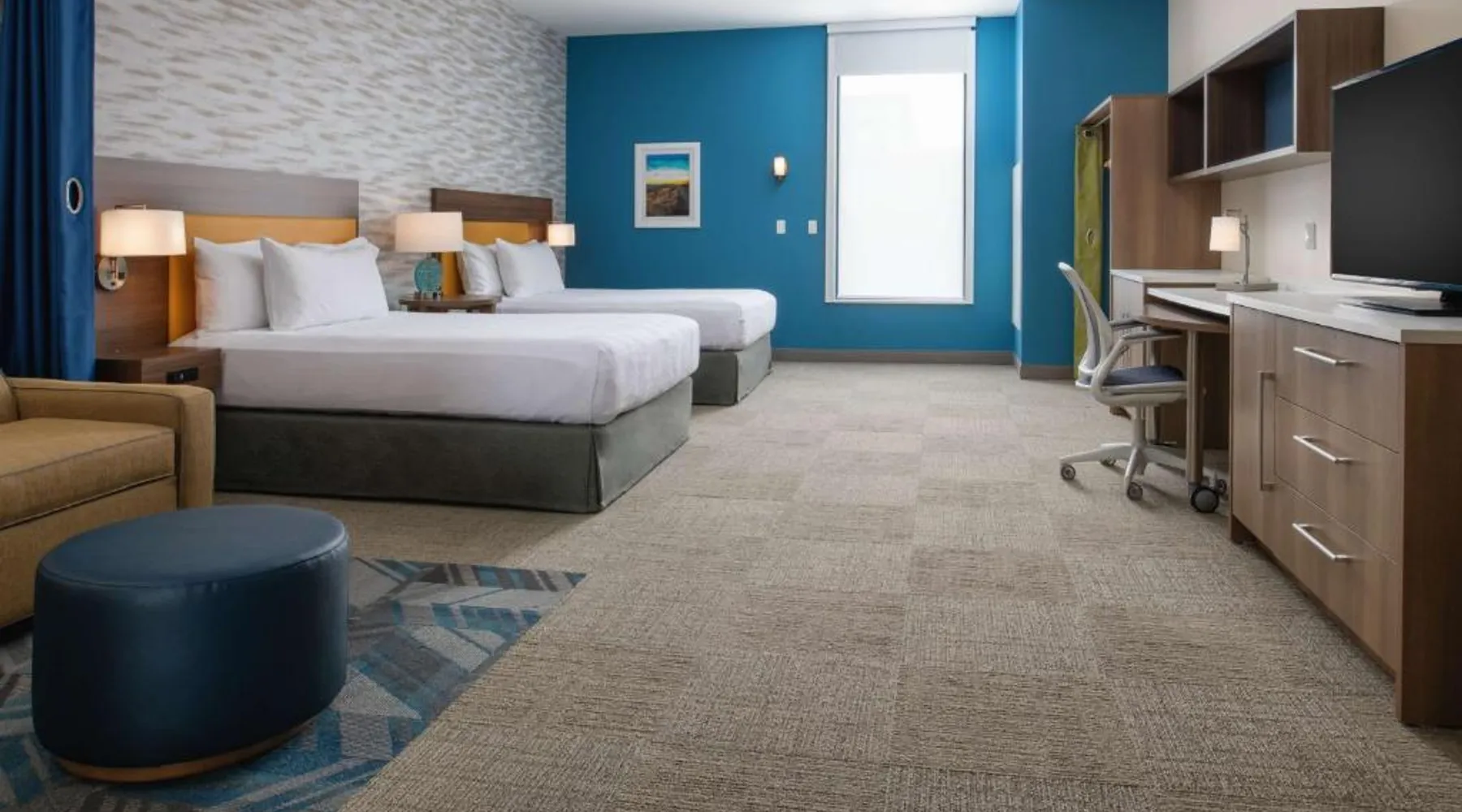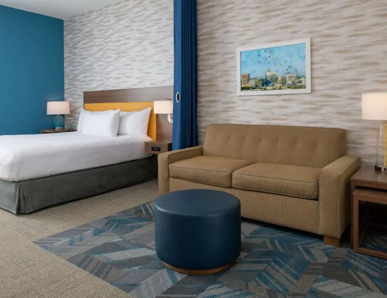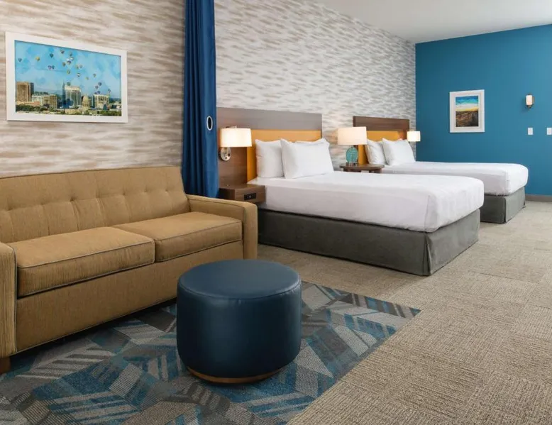 Comfortable Accommodations: Home2 Suites By Hilton Boise Downtown in Boise offers family rooms with air-conditioning, kitchen facilities, and free WiFi. Each room includes a work desk, sofa bed, and free toiletries. Exceptional Facilities: Guests can enjoy an indoor swimming pool, fitness room, and outdoor seating area. Additional amenities include a business area, laundry service, and bicycle parking. Delicious Breakfast: A continental, American, buffet, or gluten-free breakfast is served daily, featuring warm dishes, fresh pastries, pancakes, cheese, fruits, and juice. Prime Location: Located 3.7 mi from Boise Airport, the hotel is near attractions such as Extramile Arena (1.1 mi) and Boise Art Museum (1969 feet). Guests appreciate the convenient location, room cleanliness, and attentive staff. In the fully equipped kitchen, guests will find a refrigerator, a dishwasher, kitchenware and a microwave. The air-conditioned studio offers a flat-screen TV with cable channels, a tea and coffee maker, a seating area and heating. The unit has 2 beds.
