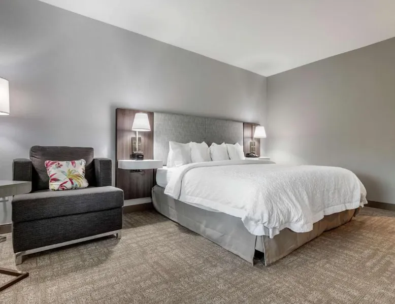 Comfortable Accommodations: Hampton Inn Camden, SC in Camden offers family rooms with air-conditioning, spa baths, and free WiFi. Each room includes a refrigerator, microwave, tea and coffee maker, and free toiletries. Leisure Facilities: Guests can enjoy a saltwater swimming pool, indoor pool, sun terrace, and fitness center. Additional amenities include a lounge, fitness room, and outdoor seating area. Dining Options: A variety of breakfast options are available, including continental, American, buffet, and vegetarian. Breakfast includes warm dishes, fresh pastries, fruits, and juice. Convenient Location: Located 42 mi from Columbia Metropolitan Airport and 22 mi from Shaw Air Force Base, the hotel provides free on-site parking and full-day security. Highly rated for breakfast, room cleanliness, and staff support. The unit offers 1 bed.