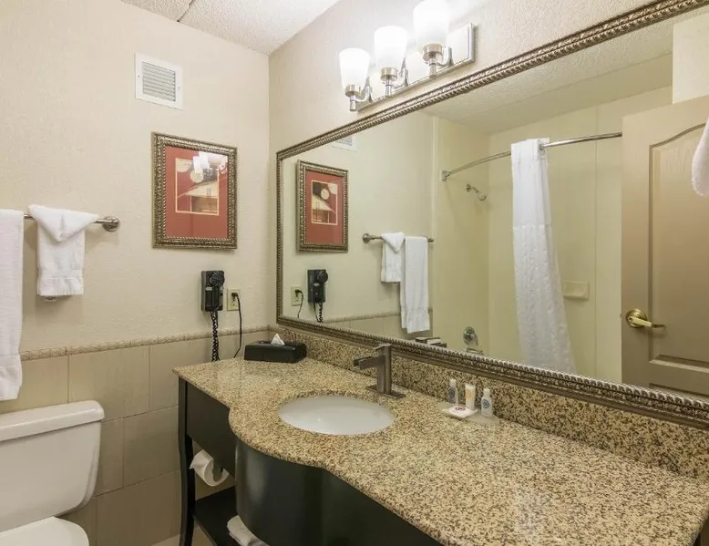 Comfortable Accommodations: Comfort Inn Plymouth-Minneapolis in Plymouth offers rooms with air-conditioning, private bathrooms, and modern amenities. Each room includes a tea and coffee maker, mini-bar, and free toiletries. Dining and Leisure: Guests can enjoy an on-site restaurant serving American cuisine and a bar. The inn features an indoor swimming pool, hot tub, and outdoor seating area. Additional facilities include a business area, child-friendly buffet, and picnic area. Convenient Location: Located 21 mi from Minneapolis-Saint Paul International Airport, the inn is near attractions such as Target Field (12 mi) and Mall of America (21 mi). Guests appreciate the convenient location and room comfort. The family room offers air conditioning, a tea and coffee maker, as well as a private bathroom featuring a bath and a hairdryer. The family room features a flat-screen TV with cable channels, a safe deposit box, a carpeted floor and heating. The unit offers 2 beds.