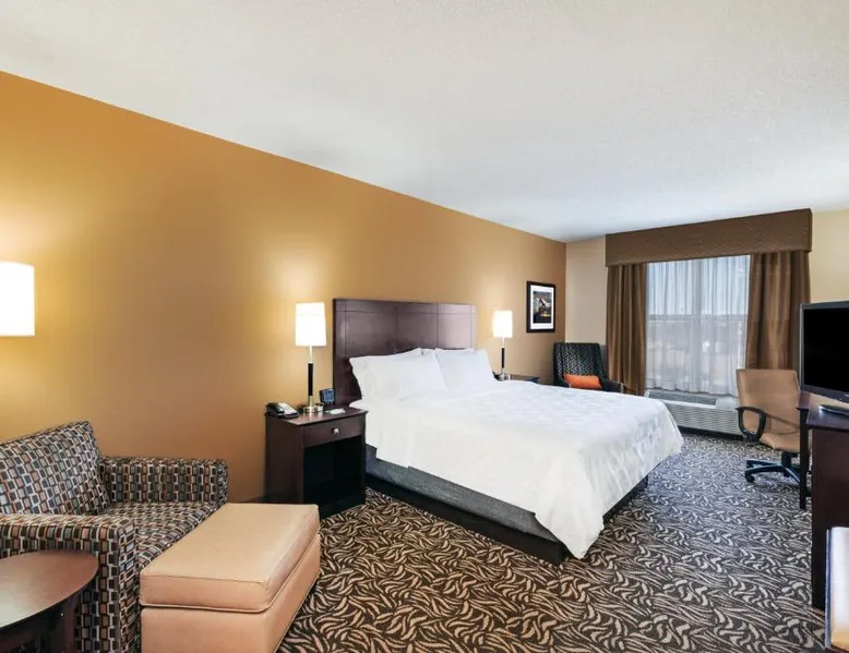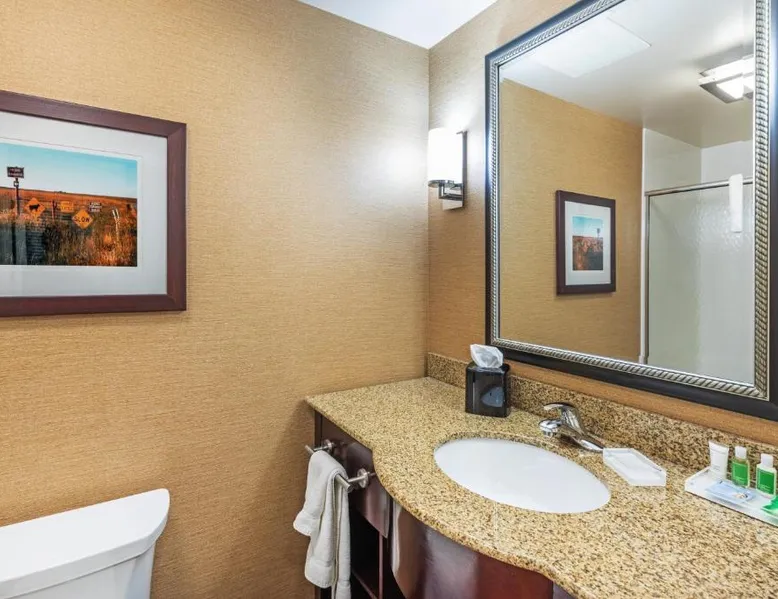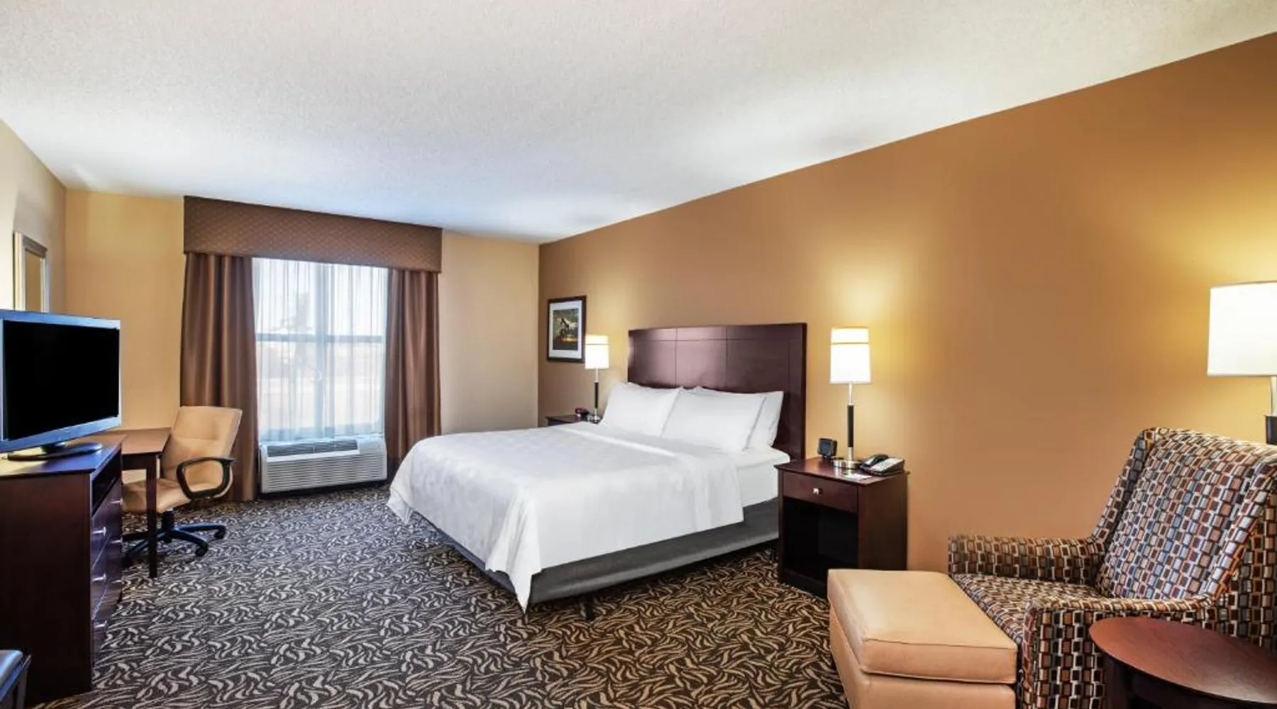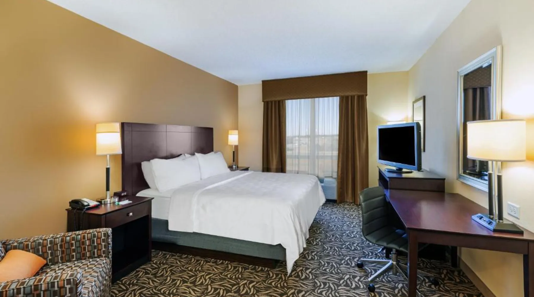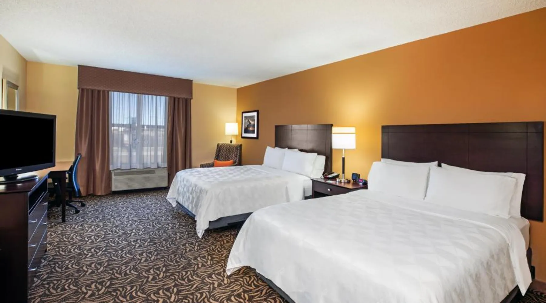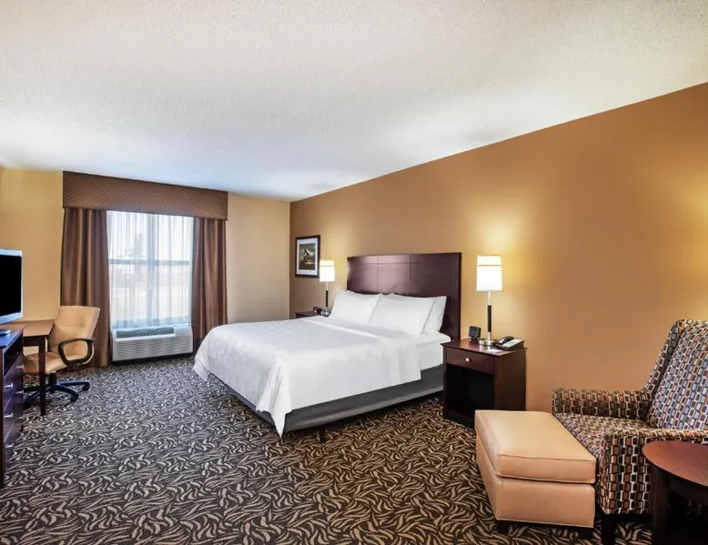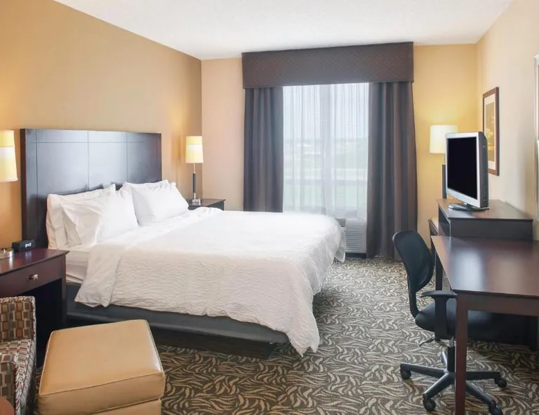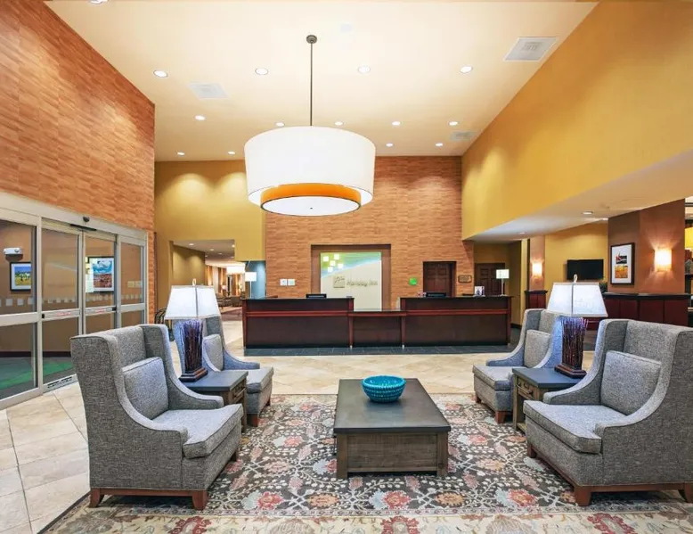 Comfortable Accommodations: Holiday Inn Ardmore by IHG in Ardmore offers comfortable rooms with air-conditioning, private bathrooms, and modern amenities. Each room includes a tea and coffee maker, refrigerator, and free WiFi. Dining and Leisure: Guests can enjoy a traditional restaurant serving American cuisine, a bar, and a seasonal outdoor swimming pool. The hotel features a fitness center, lounge, and outdoor seating area. Convenient Services: The property provides free on-site parking, a 24-hour front desk, and express check-in and check-out services. Additional amenities include a minimarket, business area, and laundry service. Guest Satisfaction: Highly rated by guests for its attentive staff and excellent service support. Features a separate living area with dining table, sofa bed and 2 flat-screen TVs.