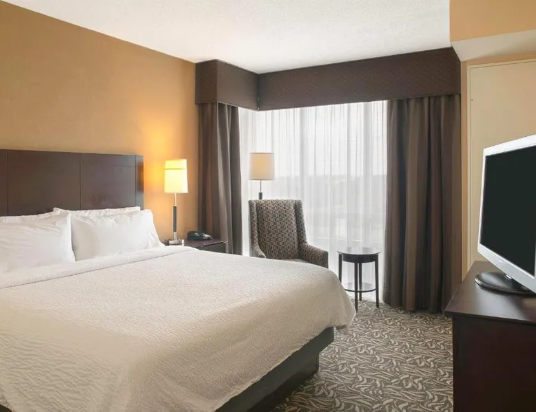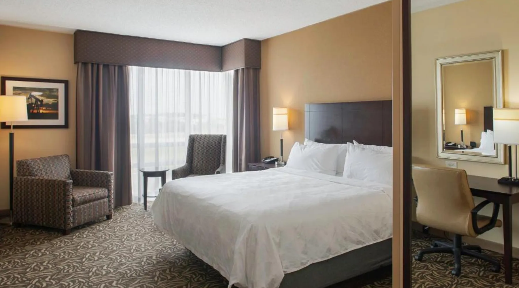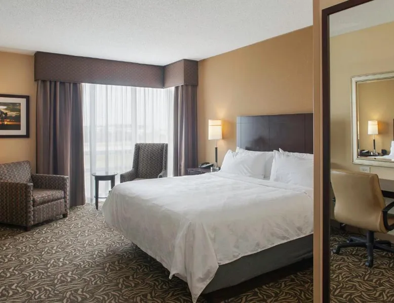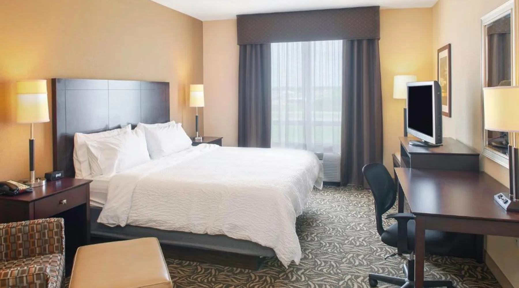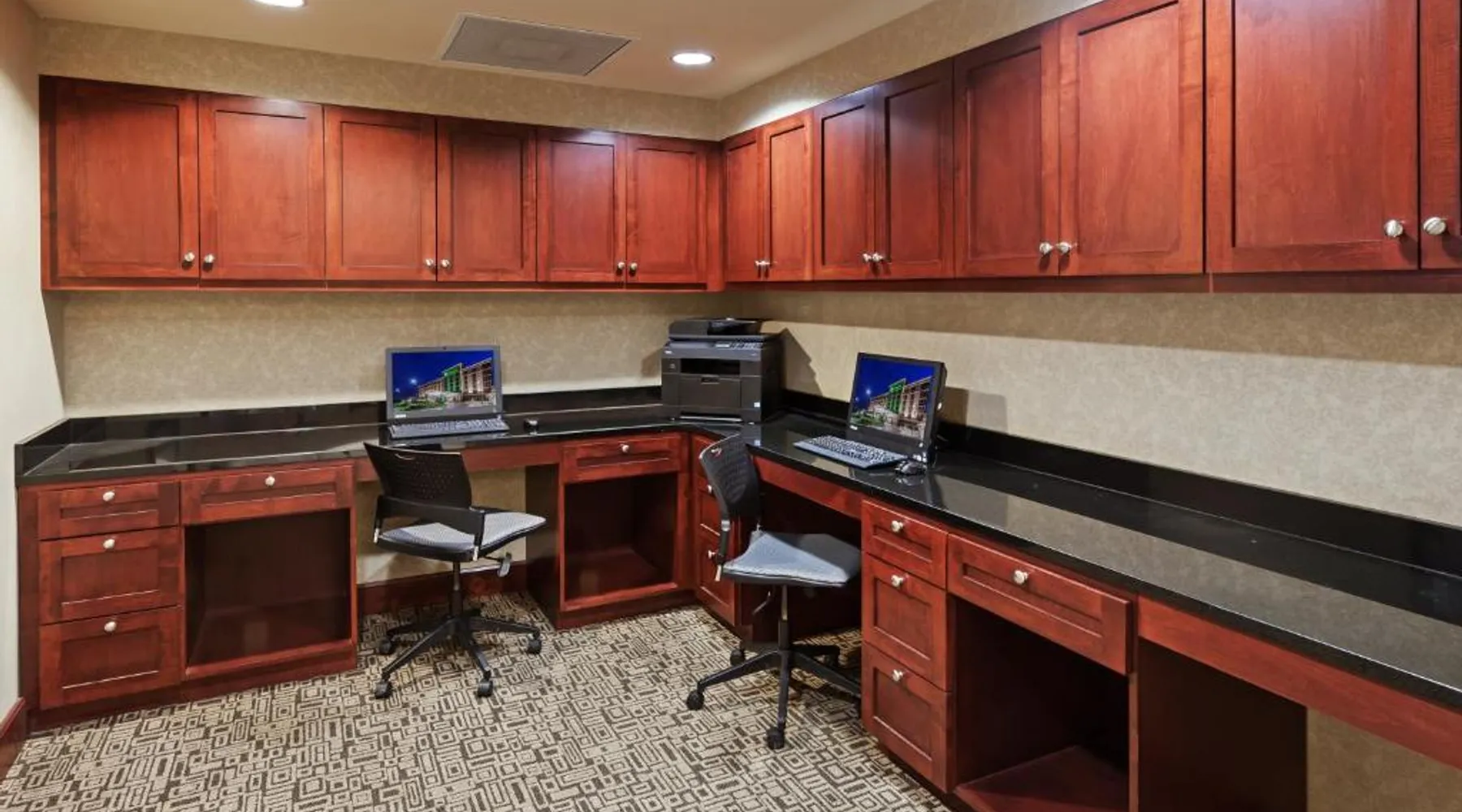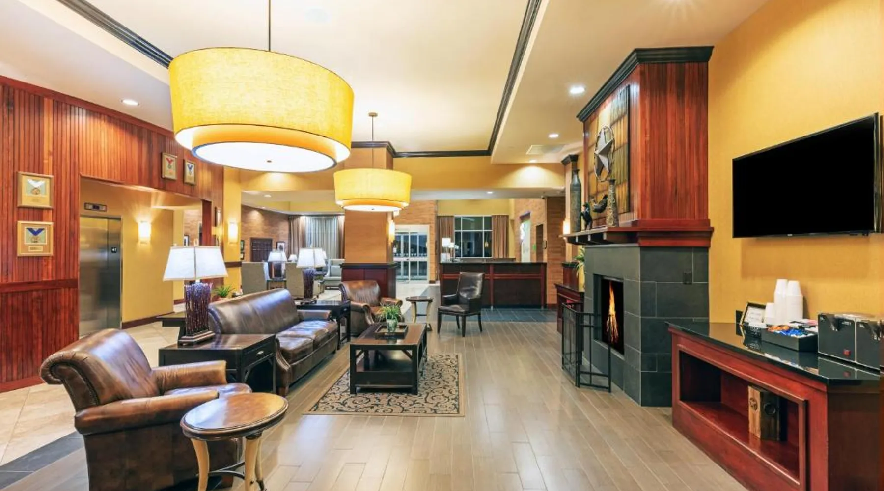 Comfortable Accommodations: Holiday Inn Ardmore by IHG in Ardmore offers comfortable rooms with air-conditioning, private bathrooms, and modern amenities. Each room includes a tea and coffee maker, refrigerator, and free WiFi. Dining and Leisure: Guests can enjoy a traditional restaurant serving American cuisine, a bar, and a seasonal outdoor swimming pool. The hotel features a fitness center, lounge, and outdoor seating area. Convenient Services: The property provides free on-site parking, a 24-hour front desk, and express check-in and check-out services. Additional amenities include a minimarket, business area, and laundry service. Guest Satisfaction: Highly rated by guests for its attentive staff and excellent service support. Features a separate living area with dining table, sofa bed and 2 flat-screen TVs.