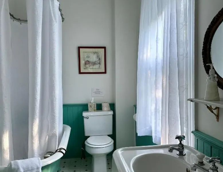 Historic Setting: Inn at the Oaks in Eastham offers a 3-star bed and breakfast experience within a historic building. Guests enjoy garden views and a sun terrace, complemented by free WiFi throughout the property. Comfortable Accommodations: Rooms feature air-conditioning, private bathrooms, and parquet floors. Additional amenities include a fireplace, outdoor furniture, and free toiletries, ensuring a relaxing stay. Dining Options: A continental breakfast is served daily, while an à la carte breakfast is available upon request. Outdoor dining areas provide ample space for meals and gatherings. Local Attractions: Great Pond Beach is a 15-minute walk away, while Nauset Lighthouse lies 2.7 mi from the property. Cape Cod Gateway Airport is 22 mi distant, offering convenient travel connections. This room has a gas stove and private bathroom with a claw-footed tub. Pets are not allowed in this room.